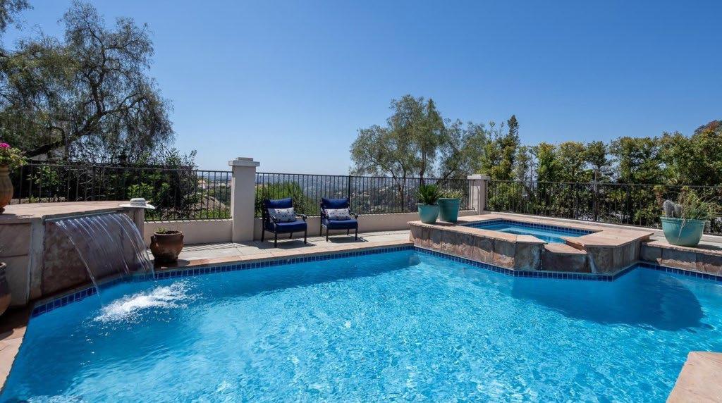 Situated on an 20,120 ESF lot with magnificent views, this updated beauty has paid solar, a movie theater, gated courtyard, and an abundance of custom details including 4 fireplaces, 3 fountains, a curved wrought-iron staircase, and arched wooden doors. The kitchen features a large center island, upgraded appliances, chef’s range, built-in coffee machine, and a large pantry. 2 bedrooms downstairs and 3 upstairs; 3 of the bedrooms have baths en suite. The primary bedroom has its own covered balcony, walk-in closet, and an expanded bath with walk-in shower and freestanding tub. The formal dining room opens to an exterior covered dining area with nearby fountain. Outdoors, you’ll also find a covered patio with fireplace, a large kitchen area, pool, spa, and a deck overlooking spectacular views. The lot includes fruit trees, grapes, and tall, mature trees for privacy. This one-of-a-kind property is located in Rancho Del Rey, close to all and with no HOA or Mello-Roos.