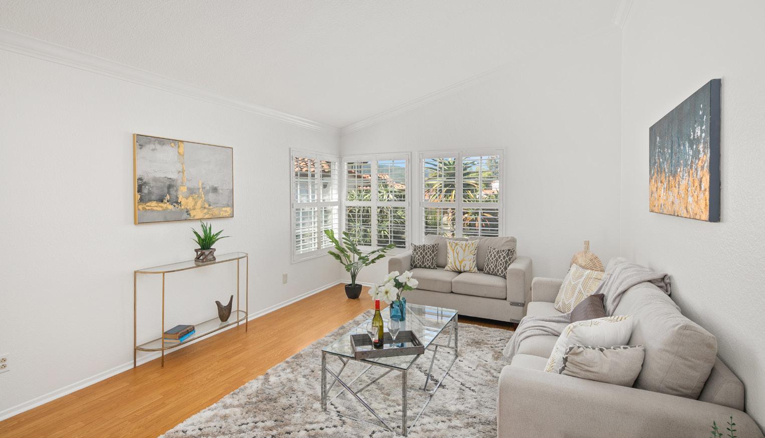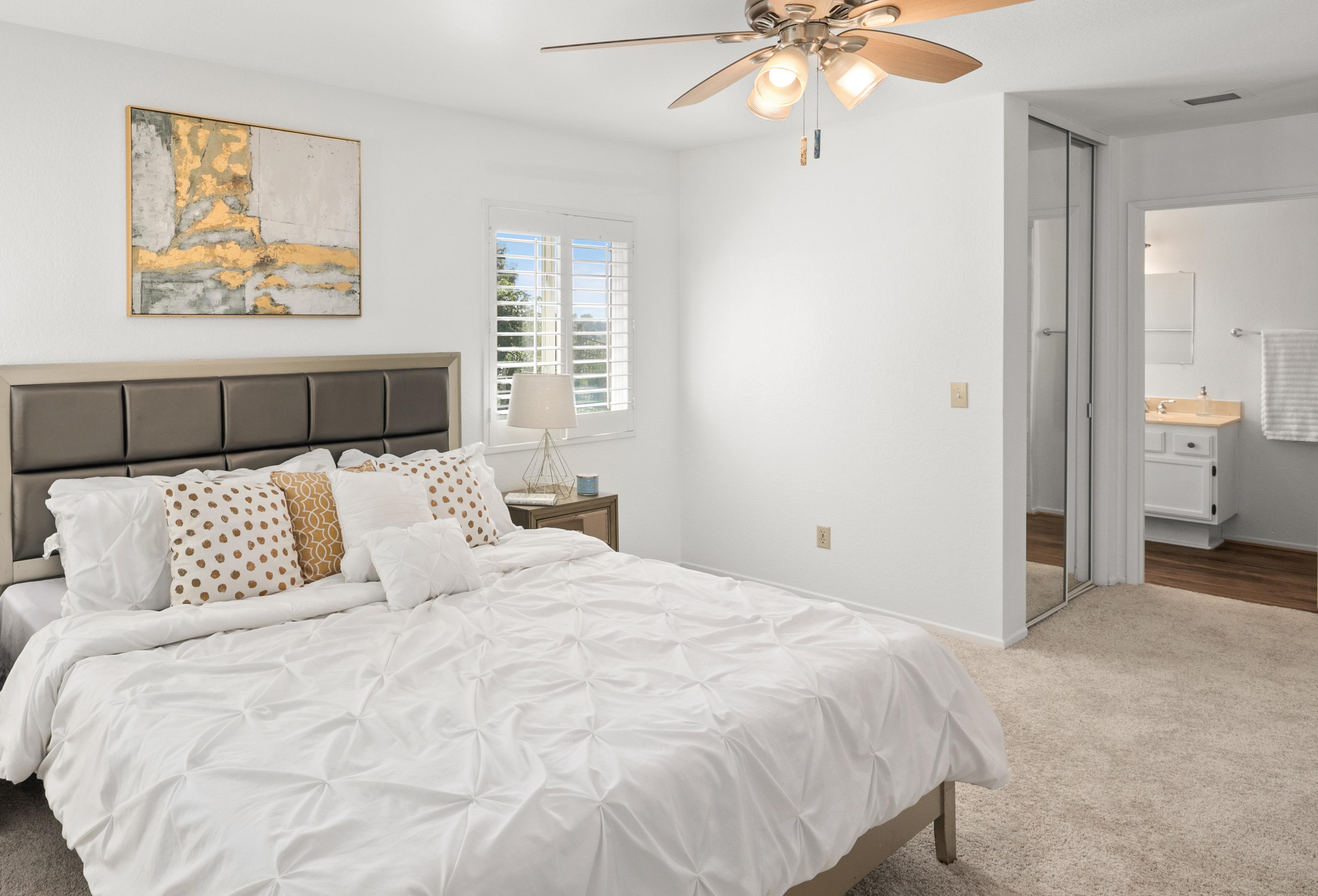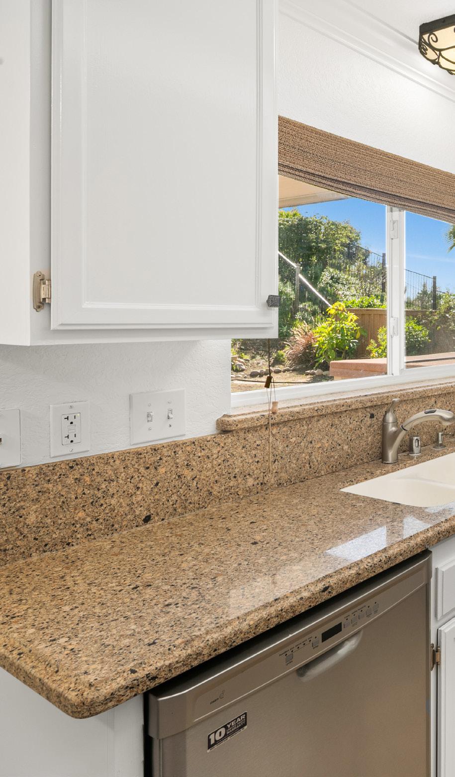 Ideally positioned in the serene hills of Sabre Springs and tucked at the end of a peaceful cul-de-sac within the award-winning Poway Unified School District, this beautifully updated residence rests on an expansive pie-shaped, fully usable 0.22 acre lot. Striking curb appeal begins with a vibrant and mature succulent garden that creates a warm and inviting first impression. Inside, soaring ceilings and an abundance of natural light enhance the spacious living room, which flows effortlessly into the adjacent dining area—perfect for both elegant entertaining and everyday living. The designer kitchen has been thoughtfully updated with custom cabinetry, sleek countertops, stainless-steel appliances, gas cooking, and a sunny breakfast nook, all opening seamlessly to a welcoming family room centered around a contemporary brick fireplace. Upstairs, the generous primary suite offers a tranquil retreat with two spacious wardrobe closets and a beautifully refreshed ensuite bath. Two additional bedrooms and a well-appointed secondary bathroom complete the upper level, while a convenient fourth bedroom and full bath on the main floor provide exceptional flexibility for guests, a home office, or private fitness space. Outside, the thoughtfully curated, waterwise backyard unfolds like a private garden sanctuary, with whimsical meandering pathways leading to a variety of charming outdoor vignettes. Entertain beneath the pergola or covered patio, relax in the covered spa, or enjoy the multiple garden areas designed for peaceful moments outdoors. Additional highlights include OWNED solar, central air conditioning, dual-pane windows, fresh interior paint, new carpeting, and generous storage plus attached two-car garage. Ideally located near Sabre Springs Park, scenic open-space trails for hiking and biking, and just minutes from shopping, dining, and freeway access, this exceptional home offers the perfect balance of privacy, beauty, and everyday convenience.