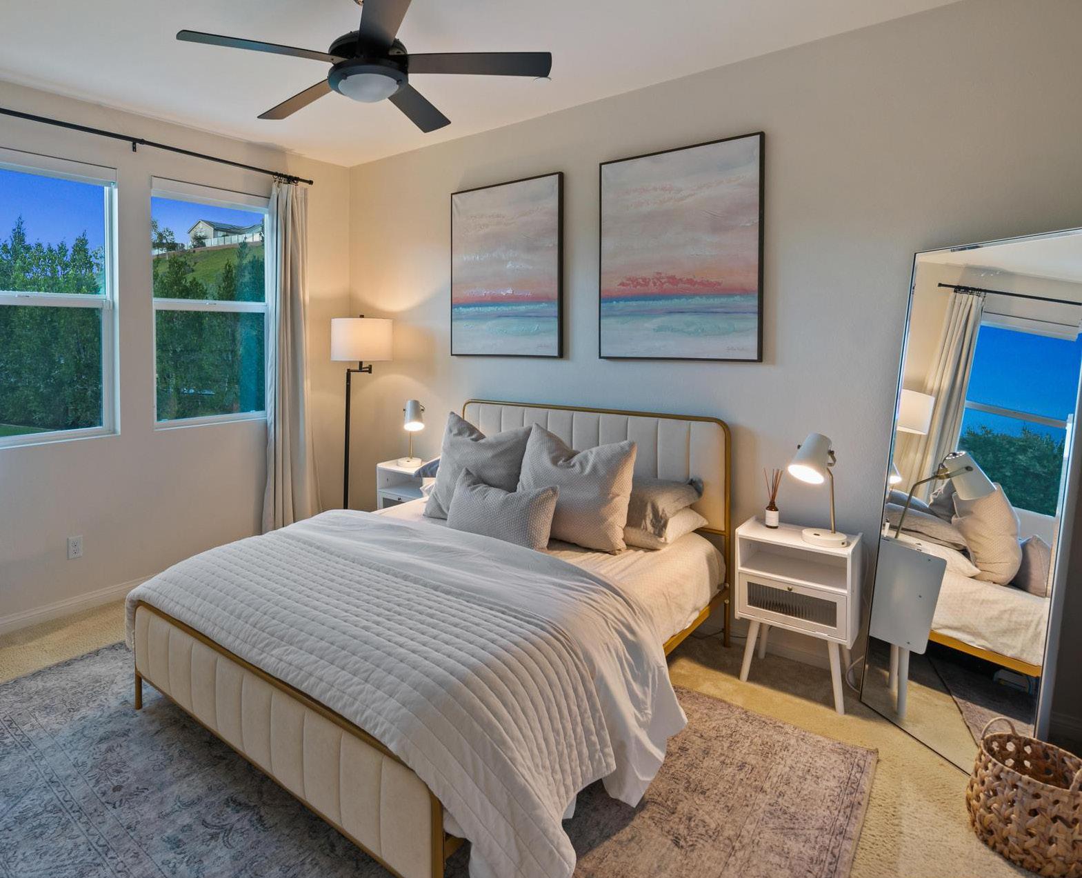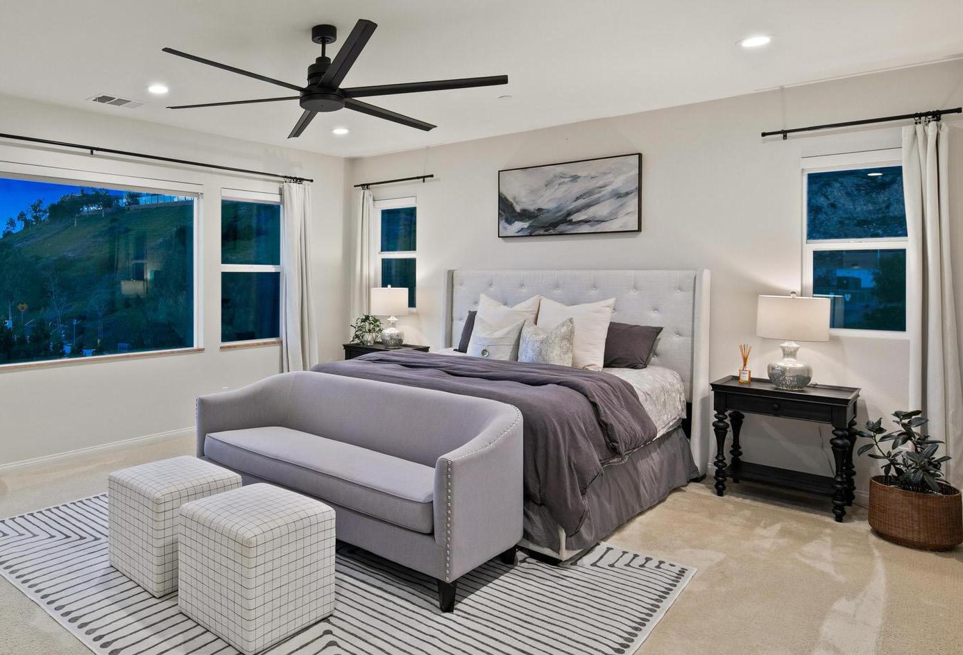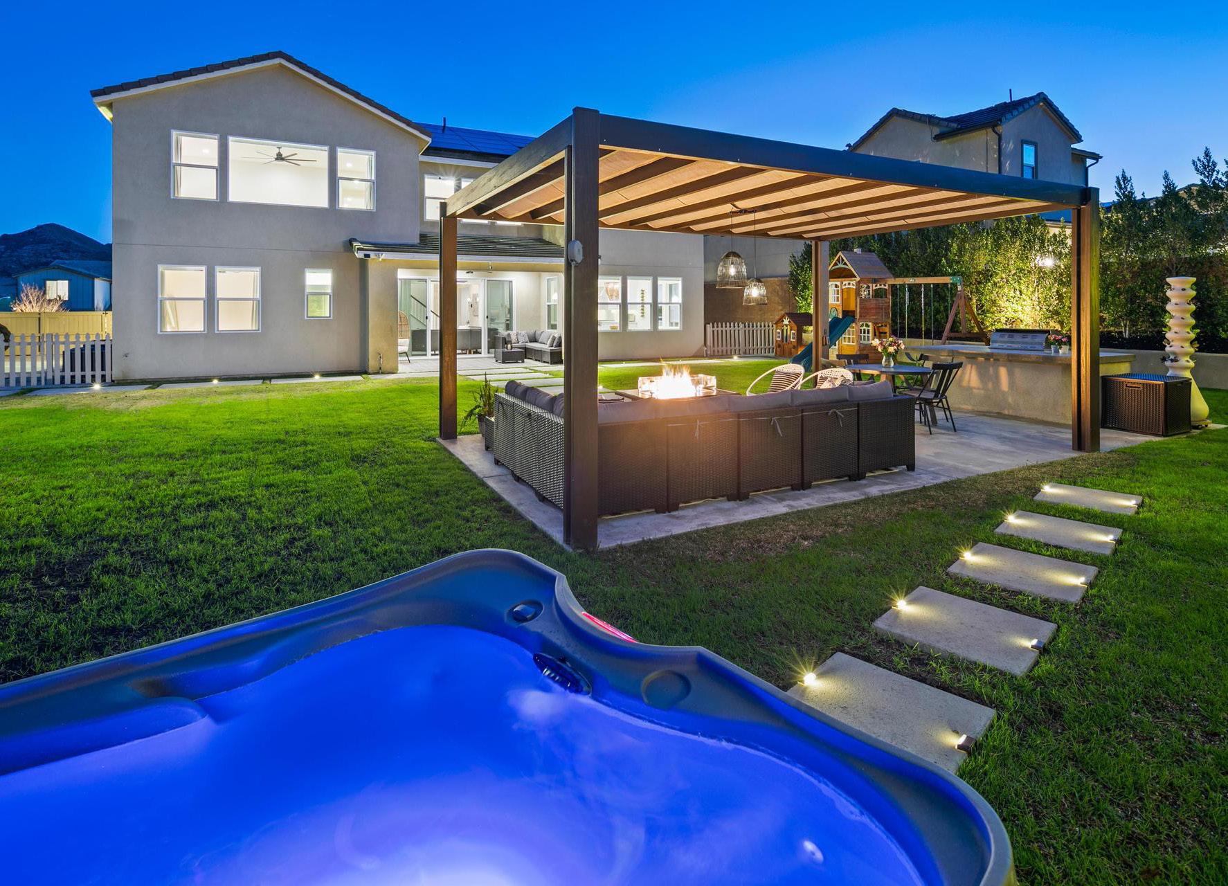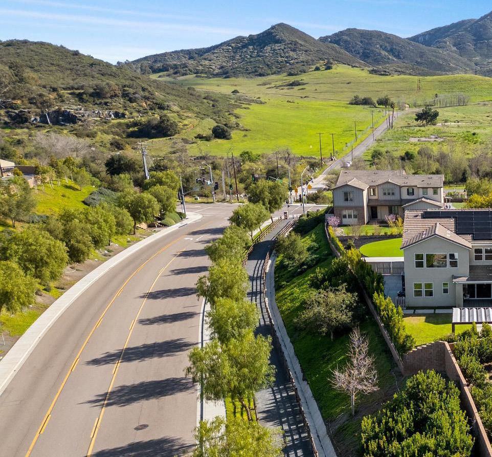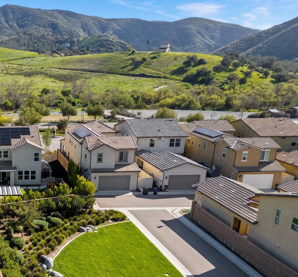 Impeccably maintained and move-in ready, this stunning 5-bedroom, 4.5-bathroom home boasts a convenient 3-car attached garage on a serene cul-de-sac lot spanning over ½ acre. Equipped with OWNED 32-panel solar, 2 powerwall batteries, and charging stations, this property offers both elegance and efficiency. Nestled in the highly coveted Harmony Grove Village, this home enjoys access to a wealth of community amenities. Positioned on a prime lot with just one neighbor, it offers breathtaking, unobstructed mountain views. Highlights of this residence include a main-level bedroom with full bath, an airy and luminous floor plan complemented by indoor/outdoor sliding doors leading to a secluded backyard enveloped by privacy trees. Outdoor features include a California room, patio, jacuzzi, BBQ grill island, and newly seeded grass. The chef’s kitchen is a culinary masterpiece, featuring a center island, Wolf range, Subzero refrigerator, and upscale Restoration Hardware finishes. The primary retreat boasts a spacious walkin closet, dual sinks, and shower/tub, while additional amenities include an upstairs loft area, large laundry room with an abundance of storage, designer cabinetry, wood flooring, quartz countertops, ceiling fans, dual central air and heat, and an epoxied garage with a dedicated gym area. Outside, drought-tolerant landscaping and fruit trees grace the property, with a side yard designated for RV/boat parking and extra storage. This meticulously maintained home is a true gem and a haven for entertainers.