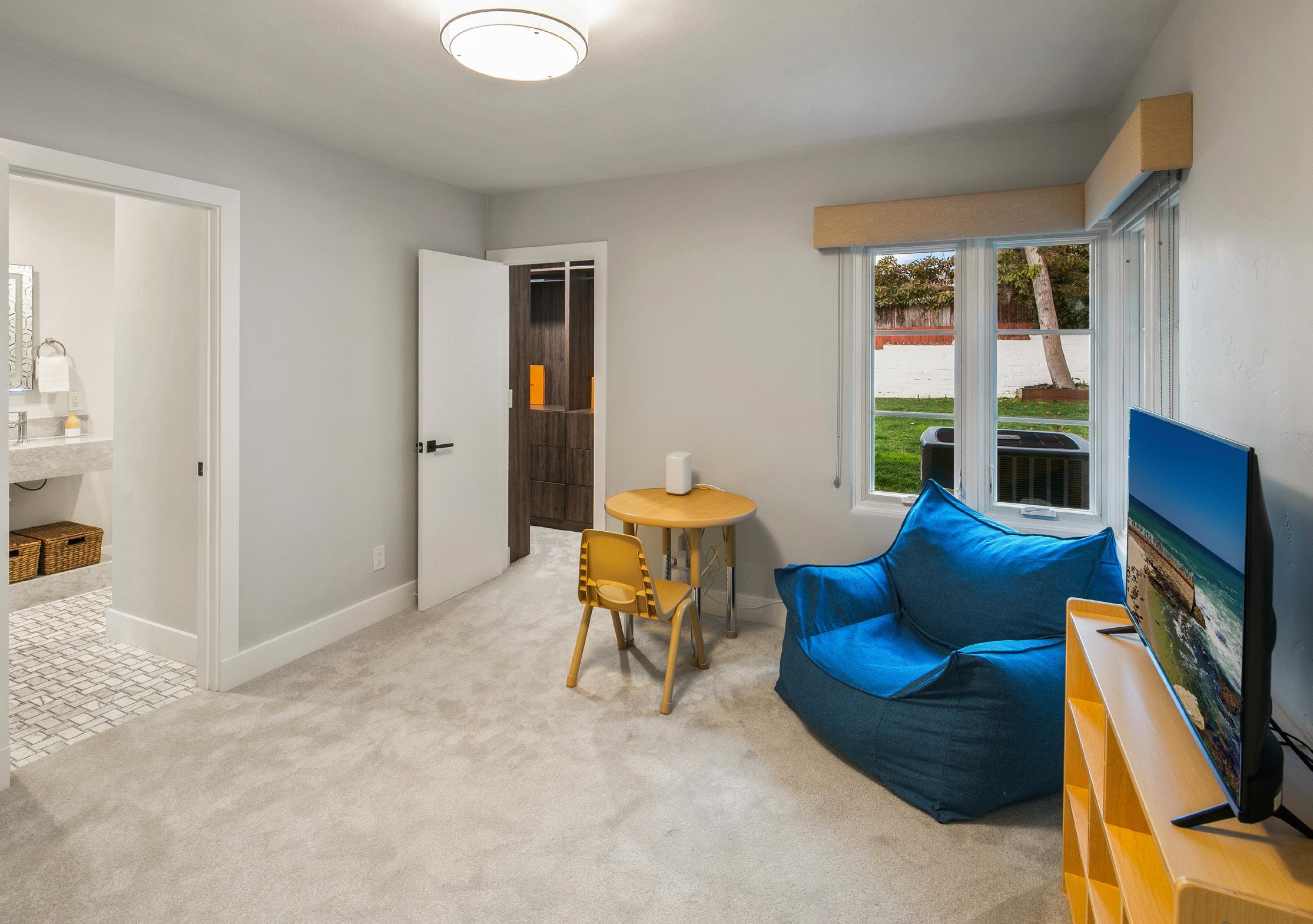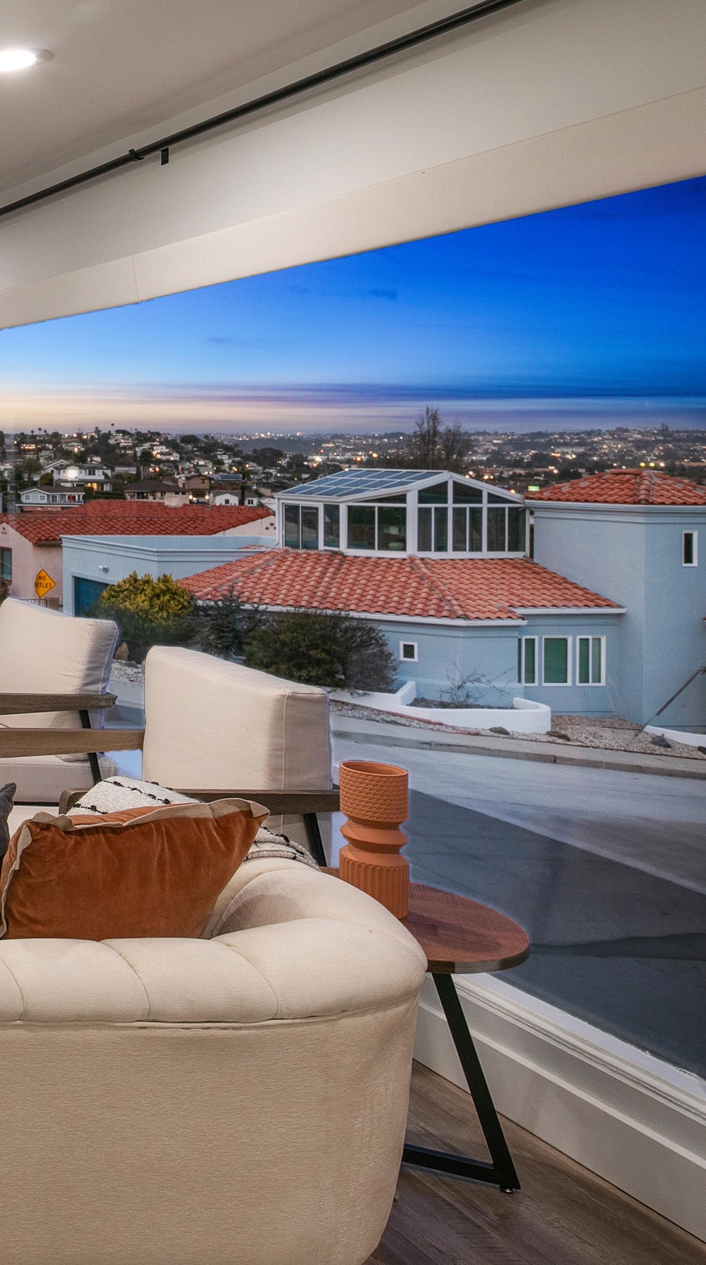 Elegantly situated on the scenic hills of Point Loma, this radiant mid-century corner lot home captures the essence of sophisticated living with oversized windows that artfully frame sweeping cityscapes, shimmering water views and distant mountain vistas. The interiors are adorned with luxurious modern finishes, featuring a spacious chef’s kitchen equipped with professional-grade appliances, gas cooking, a wall-mounted pot filler, double oven and an expansive island—perfectly designed for hosting gatherings and entertaining with ease. Thoughtfully appointed with central air and heating, an impressive wine cellar, a convenient laundry room with a sink and a Tesla charging station within the impeccably finished epoxy-coated 3-car garage, every detail has been meticulously crafted for elevated living. Seamlessly blending indoor and outdoor living, this home offers a low-maintenance, drought-tolerant front and backyard, beautifully complemented by an over-the-garage rooftop deck that invites relaxation and endless enjoyment of the breathtaking views. The elegantly remodeled bathrooms showcase designer finishes and timeless tilework, exuding a sense of understated luxury. While the primary living areas reside on the second floor, the lower level presents a cozy family room or private guest suite, complete with its own entrance, kitchenette, fireplace and bedroom—perfect for multi-generational living or hosting guests. With the potential for an ADU over the garage, the possibilities are truly endless.