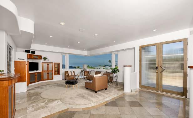 This architectural masterpiece is rich in high-end custom finishes, including a repurposed bronze channel marker buoy transformed into a dramatic light fixture above the main stairwell, along with accents of copper, brass, bronze, stainless steel, and teak. Highlights include a custom bar in the downstairs living room, exceptional outdoor living spaces, and a rooftop deck with a jacuzzi offering breathtaking 360-degree ocean-to-mountain views. Upstairs, the open and airy floor plan is filled with natural light and features an unforgettable gourmet kitchen with a repurposed copper smokestack from a decommissioned naval ship as the stovetop hood, custom solid teak cabinetry, repurposed teak yachtdeck flooring, a new 24-bottle wine cooler, and a dining and family room with mesmerizing ocean views.