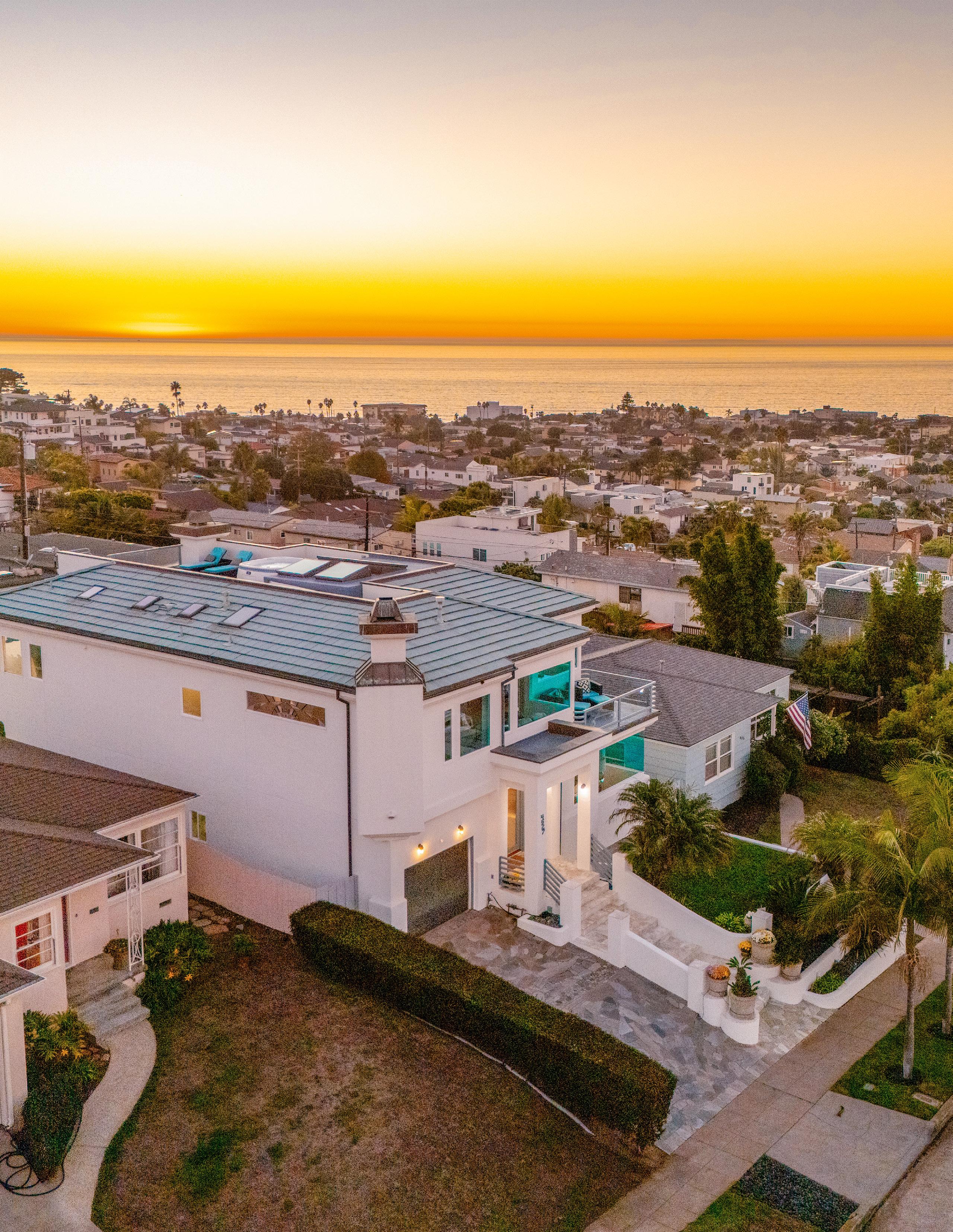 This architectural masterpiece is rich in high-end custom finishes, including a repurposed bronze channel marker buoy transformed into a dramatic light fixture above the main stairwell, along with accents of copper, brass, bronze, stainless steel, and teak. Highlights include a custom bar in the downstairs living room, exceptional outdoor living spaces, and a rooftop deck with a jacuzzi offering breathtaking 360-degree ocean-to-mountain views. Upstairs, the open and airy floor plan is filled with natural light and features an unforgettable gourmet kitchen with a repurposed copper smokestack from a decommissioned naval ship as the stovetop hood, custom solid teak cabinetry, repurposed teak yachtdeck flooring, a new 24-bottle wine cooler, and a dining and family room with mesmerizing ocean views.