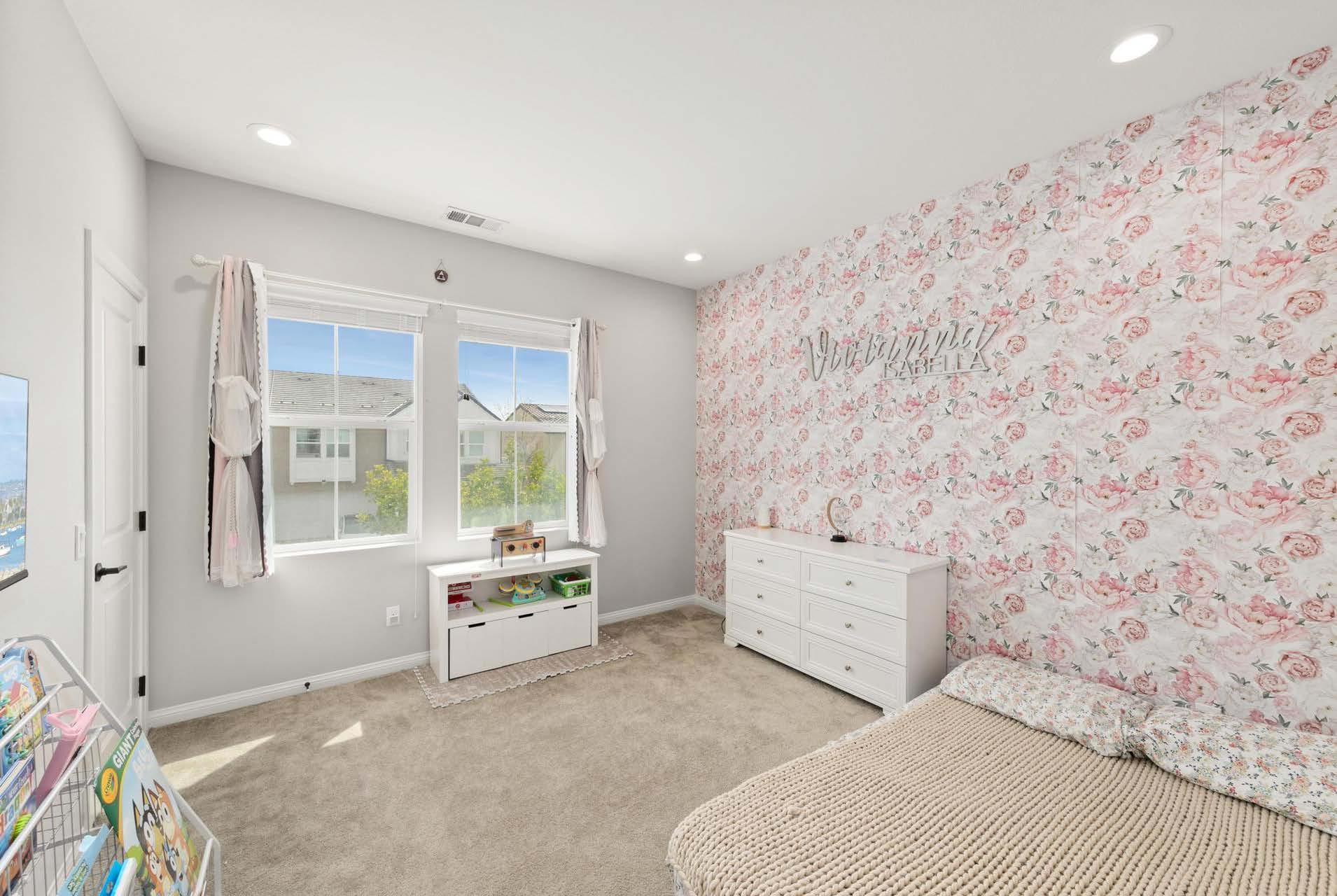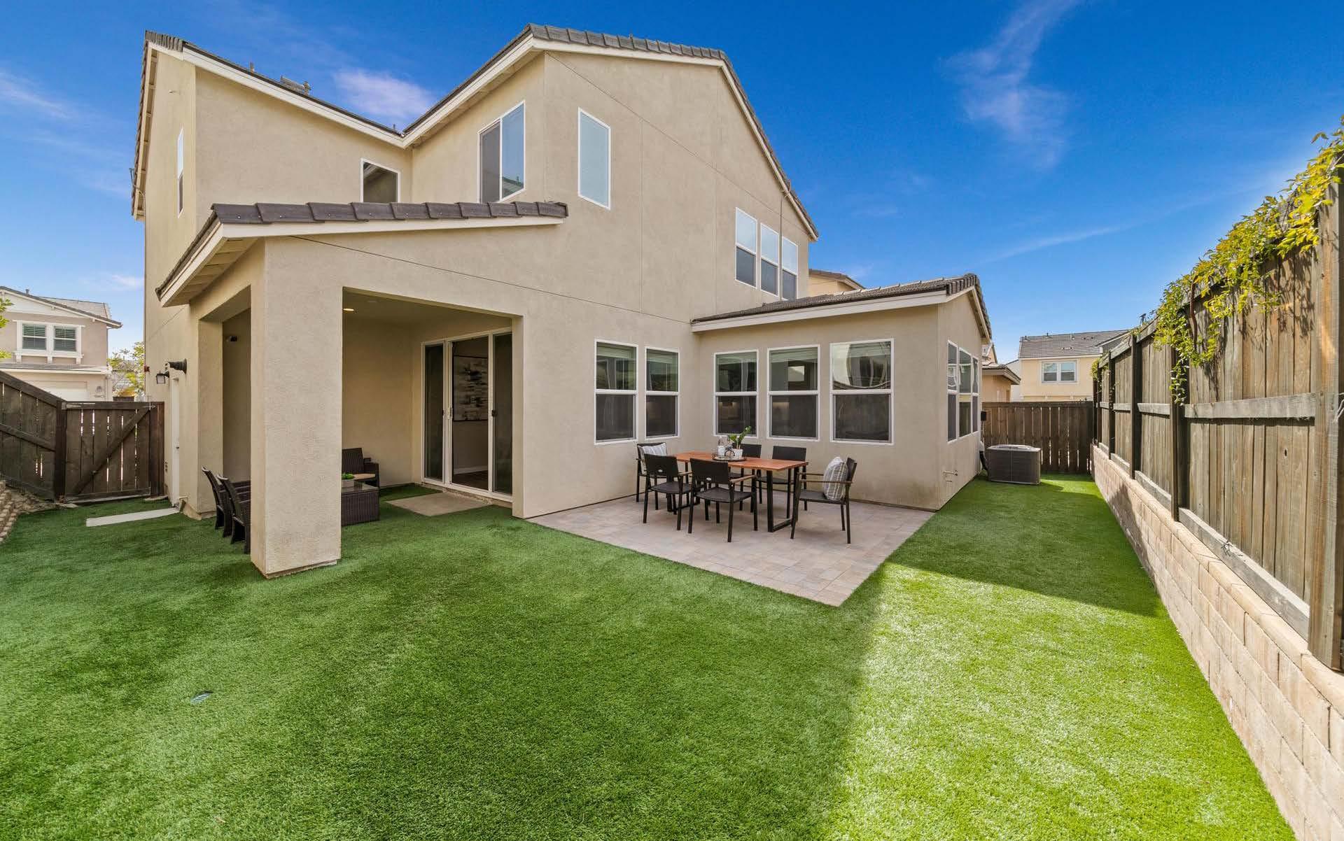 Located steps away from the Harvest Wellness Center in the beautiful community of Escaya, this 4BR, 3BA home is turn-key and awaiting its next owner! This home boasts a 5.55kWh solar system and car charging capabilities, an alkaline whole house water filtration system, artificial turf both front and back for easy maintenance, and beautiful cosmetic enhancements inside including upgraded luxe vinyl plank flooring downstairs and a subway tile backsplash in the kitchen. Soft close warm toned shaker-style cabinets are prominently featured in the open kitchen with large center island and breakfast bar. Gleaming white quartz counters, stainless steel appliances, and a large walk-in pantry provide a beautiful and functional backdrop for the great room that flows right into the backyard via a double slider. With both a covered patio, and a separate paver patio ideal for dining, there is plenty of space to stretch out without the hassle of maintenance. While the downstairs features a convenient full bedroom and bathroom, the upstairs offers the master-suite and two guest suites, along with a full sized laundry room. The primary suite offers a large walk-in closet and huge en-suite bath with dual vanities, a walkin shower and a large soaker tub. The village of Escaya offers a full suite of amenities including a mixed-use Village Center, resort style swimming pool with cabanas, Harvest wellness center / gym, large park with multiple sports courts and playground equipment, and a local commercial center with various eateries and cafés. Fahari Jeffers elementary school is a 9/10 school offering TK-6 and is just a block away. This is truly an opportunity not to be missed! The prime location can’t be beat—just a block from the Pier South Hotel & Resort and a variety of restaurants and bars along Seacoast Blvd. Whether you’re seeking a vacation getaway or a full-time beachside home is ready to welcome you.