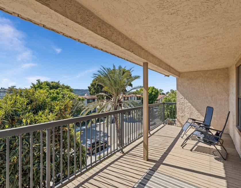 Tucked behind the Omni La Costa Resort and Golf Course, this beautifully redesigned townhome presents a rare opportunity to own a distinctive property with oversized balconies and peak views of the golf course and beyond. The open-concept layout has been completely remodeled with coastal-inspired design elements, featuring shaker-style soft-close cabinetry, stainless steel appliances, a spacious center island with an under mounted microwave and slide-out drawers, stunning quartzite countertops, and a cool glass tile backsplash. Additional storage can be found in the step-in pantry and laundry room, with side-by-side units. With over 800 sq. ft. of exclusive-use patio space and one of the largest balconies in the complex, you’ll love the seamless indoor/ outdoor flow. Enjoy abundant south-facing natural light while maintaining comfort with newer windows, slider doors, and a forced heating and air conditioning system. Upstairs, discover dual suites, each with convenient en-suite bath access. The primary bathroom has been fully reimagined, featuring a stunning walk-in shower with a glass surround, dual vanity, and a spacious walk-in closet. Step out to your private upstairs balcony and enjoy views of the July 4th fireworks right from your home! Located in the best spot in the complex, this unit is just steps from the pool and has direct access to covered garage parking. It includes one dedicated parking space with additional storage, plus plentiful guest parking for visitors. All this and you’re only 10 minutes from world-class Carlsbad beaches at an unbeatable price. Don’t miss out on this exceptional property