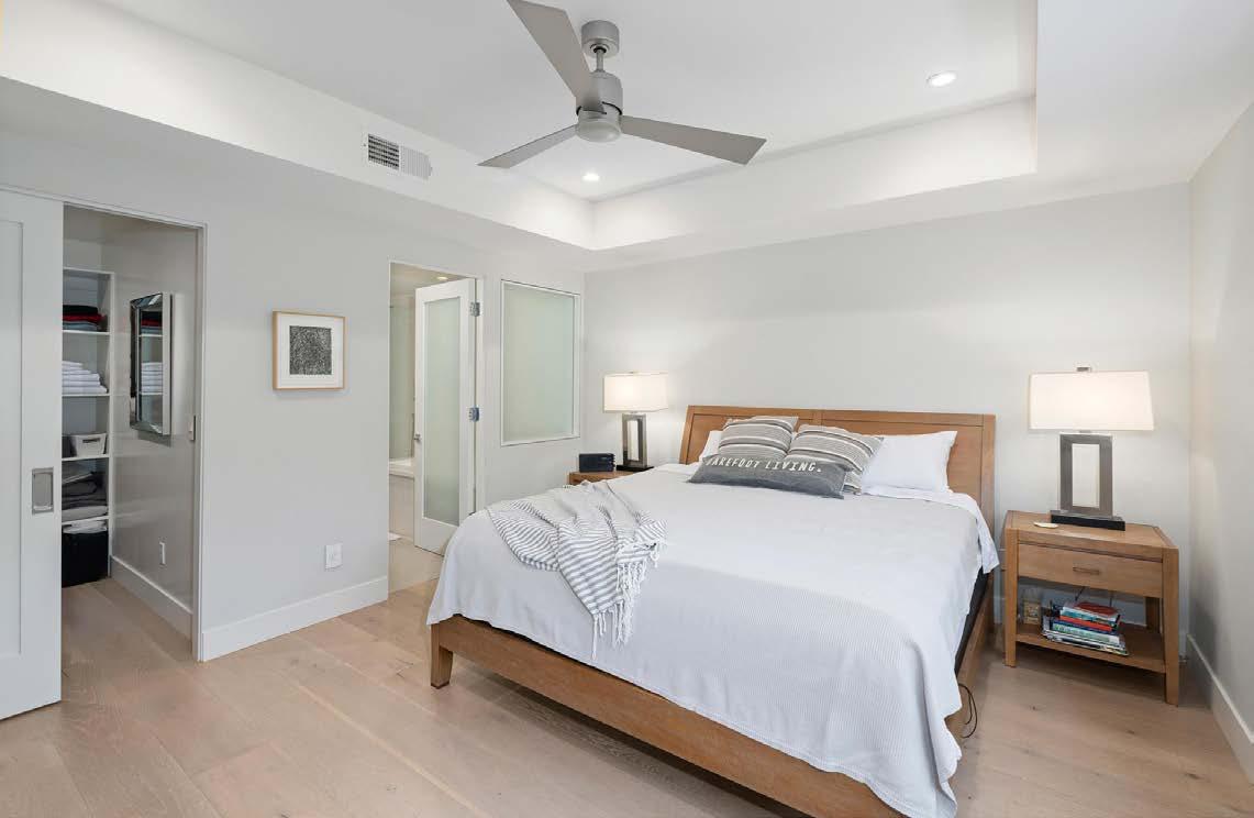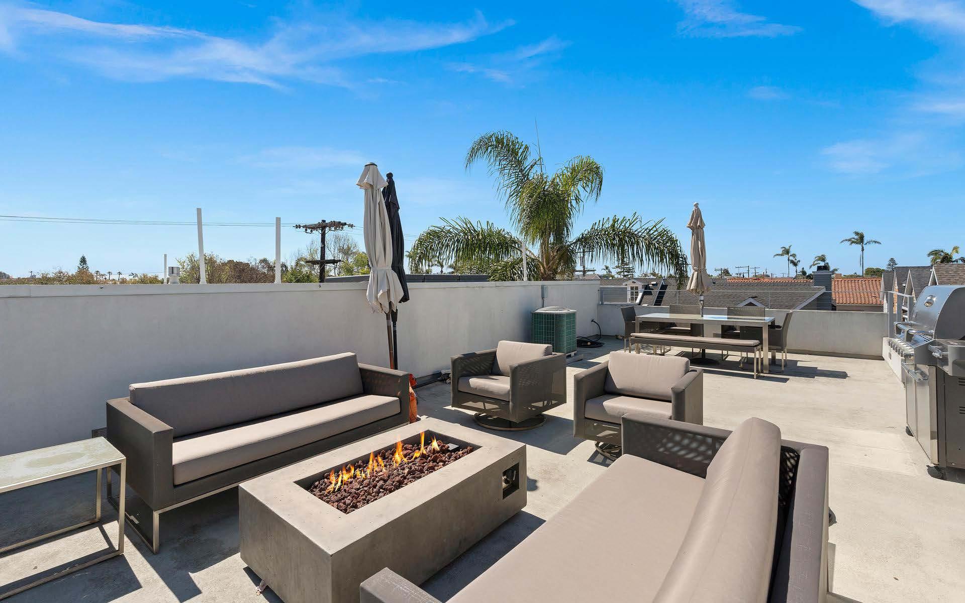 Bring the outdoors in with this stunning modern townhouse designed by Christian Rice in 2015. Welcome to the Terraces of Coronado, a collection of four beautiful townhomes in the heart of the popular beach community of Coronado. This residence showcases modern elegance with three levels of inviting open space flooded with natural light. Fully pocketing Fleetwood sliding glass door system in the elevated living area transforms the space into a covered outdoor terrace and generates a seamless indoor/ outdoor experience with views to downtown San Diego. Designer kitchen with Viking appliances and a waterfall peninsula boasts an airy and sophisticated use of space and storage. Refinished hardwood floors and a gas fireplace add a touch of warmth to this cool beachside retreat. The ground floor features a luxurious master suite alongside an additional en-suite bedroom, side by side laundry, and easy access to the 2-car garage with EV charging. Downstairs accommodations feature two generously sized bedrooms and a well-appointed, shared bath with double vanity. An abundance of closet and storage space throughout and an office nook awaits at the bottom of the staircase. Enjoy panoramic vistas of Coronado and the San Diego skyline from the rooftop deck, adorned with a cozy fire pit and space for a hot tub. Stroll to nearby shops, restaurants, tennis courts, parks and the white-sand Coronado beaches. Whether seeking a year-round residence or an exceptional family vacation retreat, this property offers a lifestyle to relish.
