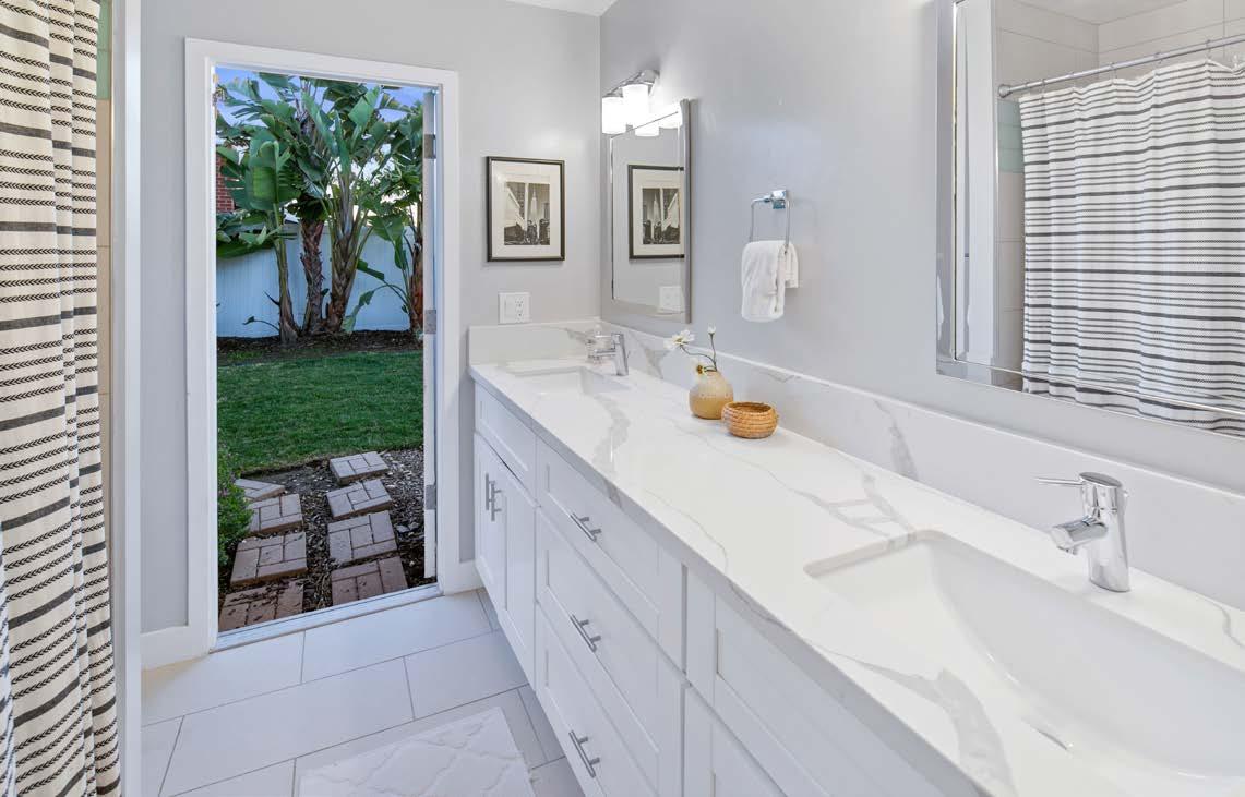 Completely reimagined in 2019, improvements include a 16’ sliding door leading to the backyard, newer kitchen with quartz countertops, JennAir stainless-steel appliances including 4-burner range with floating hood, Frenchdoor refrigerator, undercounter 50-bottle wine refrigerator, shaker-style soft-close cabinetry with stainless hardware, and an impressive peninsula with bar seating. Other improvements include wood flooring, interior doors, designer paint selection, and plush bedroom carpet. The large primary suite features vaulted ceilings, expansive walk-in closet, and an en-suite bath with glass enclosed walk-in shower and dual vanity. Two extra guest bathrooms and an optional bedroom or den complete the generous 2,321sf floor plan. Other features include 2016 HVAC replacement, whole-house water filtration, tankless H20 heater, leased house solar, owned pool solar heating, 2-car garage plus additional off-street parking. If you desire to live close to all the action but not buried by it, this is the one for you!