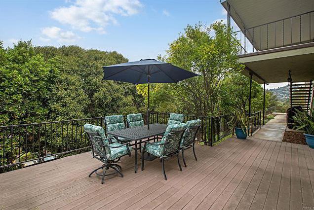 VIEWS! One-of-a-kind EXTREMELY private ranch home in La Mesa Highlands. Fabulous views of Cowles mountain to Mt Helix, La Mesa and surrounding neighborhoods. Views are to die for! This home has the amazing potential for multi use family home, in laws, rentals, or just enjoy the expansive and spaious floor plan. lst Level Huge LR/DR combo with massive floor to ceiling fireplace. Large kitchen with builtin Kitchen Aid refridge, gas stove top w/down draft, double convection oven, granite, pantry. Primary bedroom suite with plantation shutters, ceiling fan. Lovely updated primary bathroom. The bedrooms are oversize with lovely mirrored closet doors all with plantation shutters. Great dinette and family room with access to huge outdoor patio to enjoy the great backyard. Upstairs has loads of storage and cupboards. Beautiful engineered wood floors, tile and carpeting in bedrooms. 2nd Level has huge family room with fabulous wall to ceiling unique fireplace, awesome decor, lovely luxury vinyl flooring throughout.