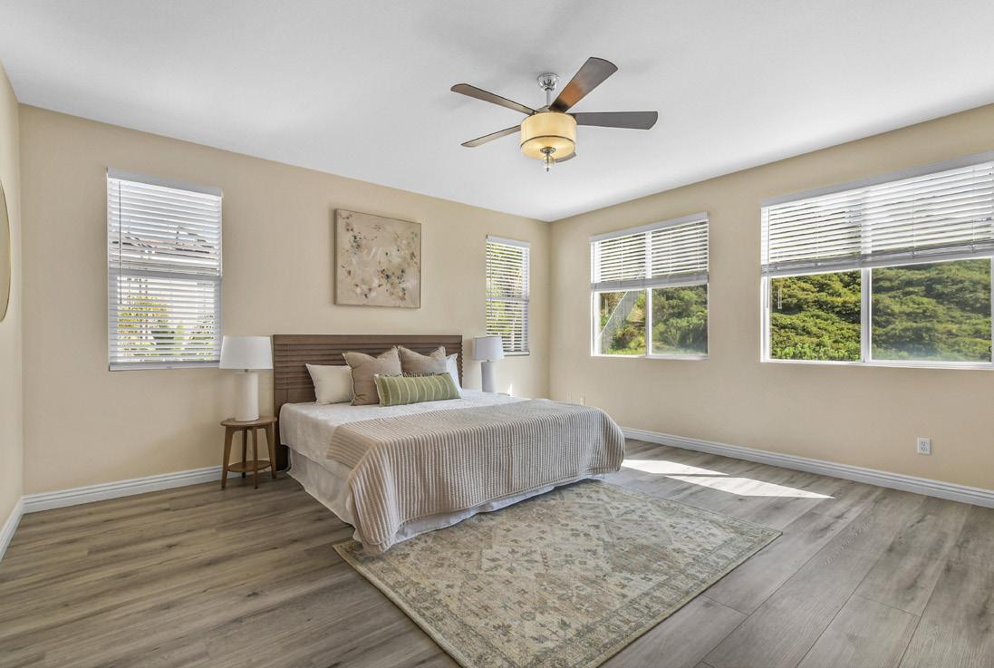 Dual sliding glass doors lead to the backyard oasis, featuring stamped concrete, a lattice patio cover, built-in barbecue, and a lava rock fire pit. Take advantage of one of Otay Ranch’s largest backyards—with great potential for a pool or ADU (subject to City of Chula Vista approval). Upstairs, the home boasts floor-to-ceiling library shelving, a large laundry room, and four additional bedrooms. The spacious primary suite includes a huge walk-in closet, a luxurious soaking tub, separate shower, and dual vanities. The oversized two-car garage features an air-conditioned bonus room—ideal for a gym, workshop, or office. Located in a prime area, this home is close to a grocery store, community pool, schools, shopping, and restaurants. Beaches and all the amenities of downtown San Diego are just a 20–30 minute drive away.
