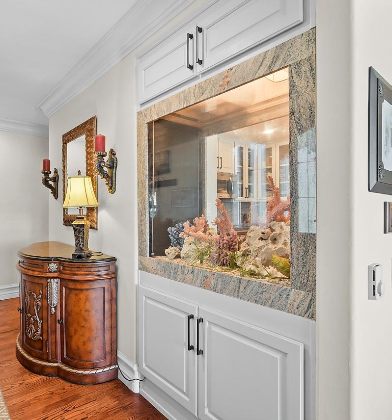 Step into the epitome of waterfront living with this remarkable home, featuring a spacious oversized patio and a half-inch glass-enclosed deck that offers uninterrupted, panoramic views. Located on the East side, this prime spot is perfectly sheltered from the wind, allowing you to enjoy the peaceful serenity of one of the most sought-after locations, complete with your own private boat slip. Boat dock measures 37 feet 4 inches in length with a 12-foot 5-inch beam, offers unparalleled access to the bay. Upon entering, you’ll be captivated by a striking saltwater aquarium that sets the tone for the home’s elegance.