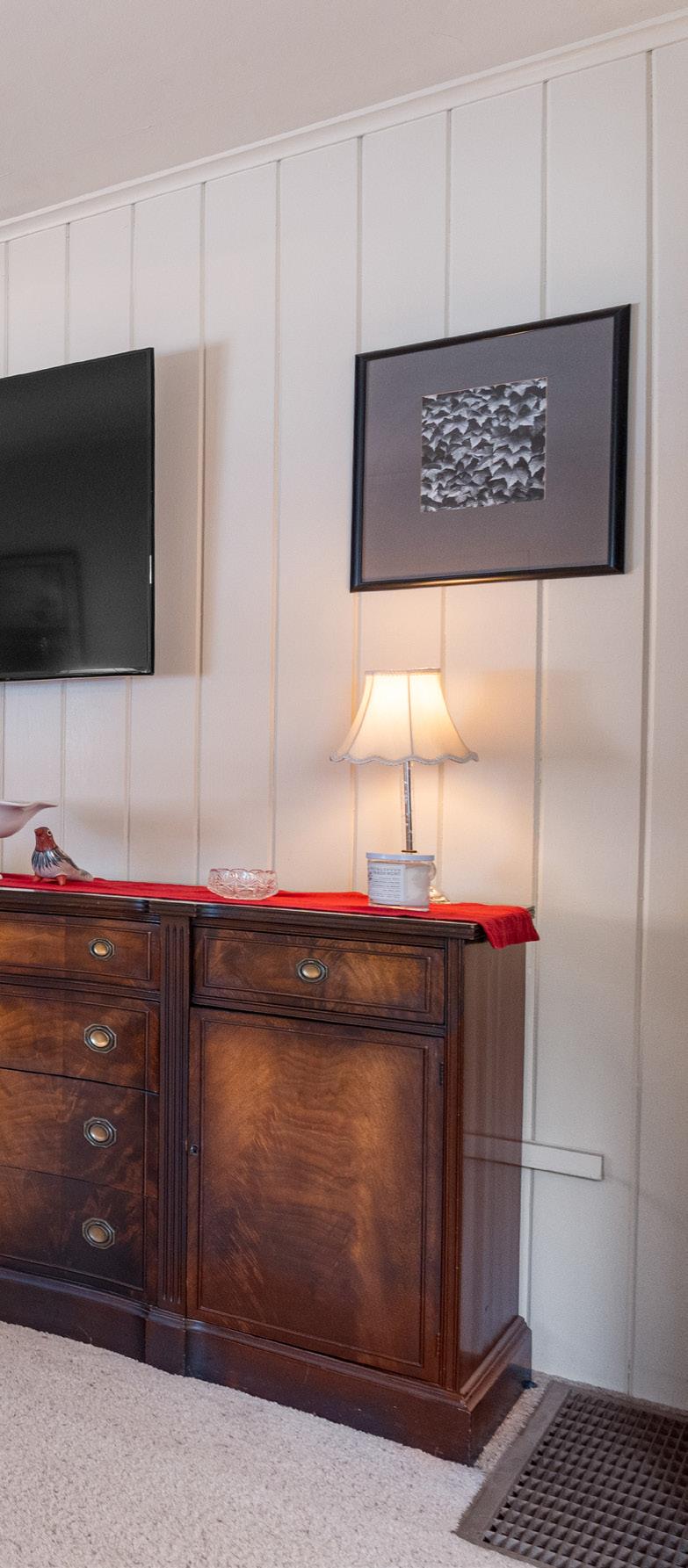 Enjoy outdoor dining in a myriad of locations: the brick paved patio in the front yard with its ocean views complete with outdoor furniture and an oversized umbrella; the custom covered composite deck off the living room with color-matched furniture, lighting and fan; and a lower patio terraced outside the unpermitted walk-out basementlevel.Theunpermittedwalk-outbasementhas7’2”ceilings,anunpermitted bathroom, potential space for an office and a guest area (all unpermitted), and has been plumbed for a mini split A/C and Heat unit.