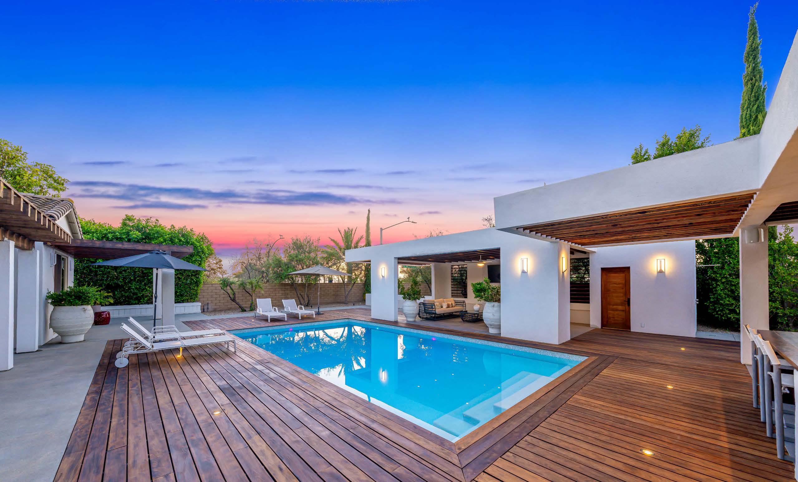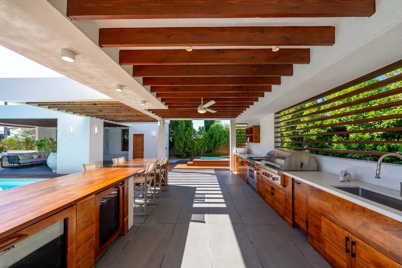 At the heart of the home, two stunning kitchens cater to the culinary enthusiast and entertainer alike—equipped with premium appliances, custom cabinetry, and clean lines that speak to refined taste. The indoor space flows seamlessly to an expansive backyard sanctuary where everyday life feels like a permanent vacation.
