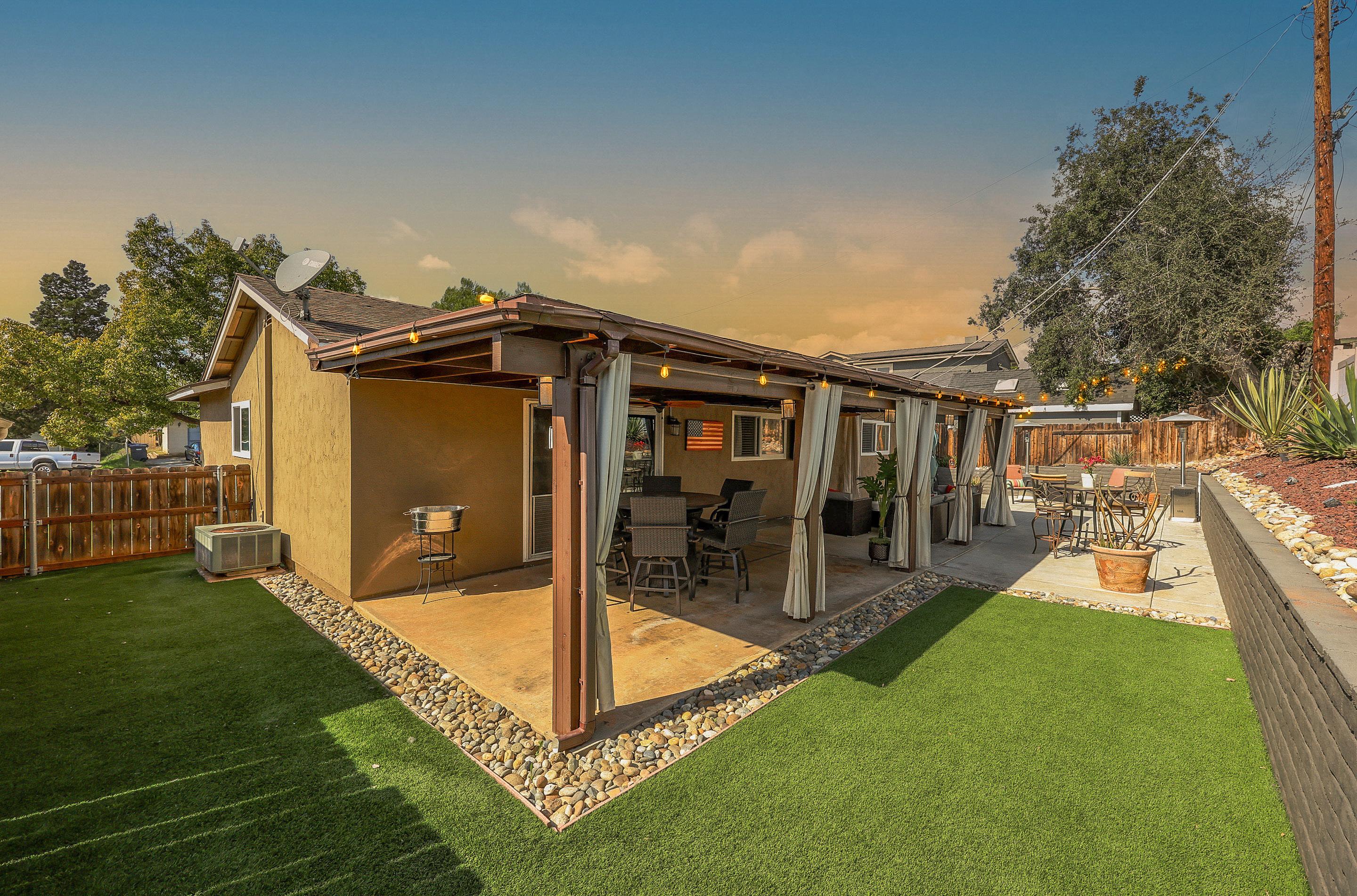 With waterwise landscaping, turf grass areas and room to park the RV and toys, this property has it all! The back yard is ready for entertaining with a large covered patio, mount of a TV and its even pre-plumbed with gas for a BBQ area or firepit! Located at the end of a cul-de-sac, on a quiet street, in the Santana High School district with close freeway access and nearby shopping.