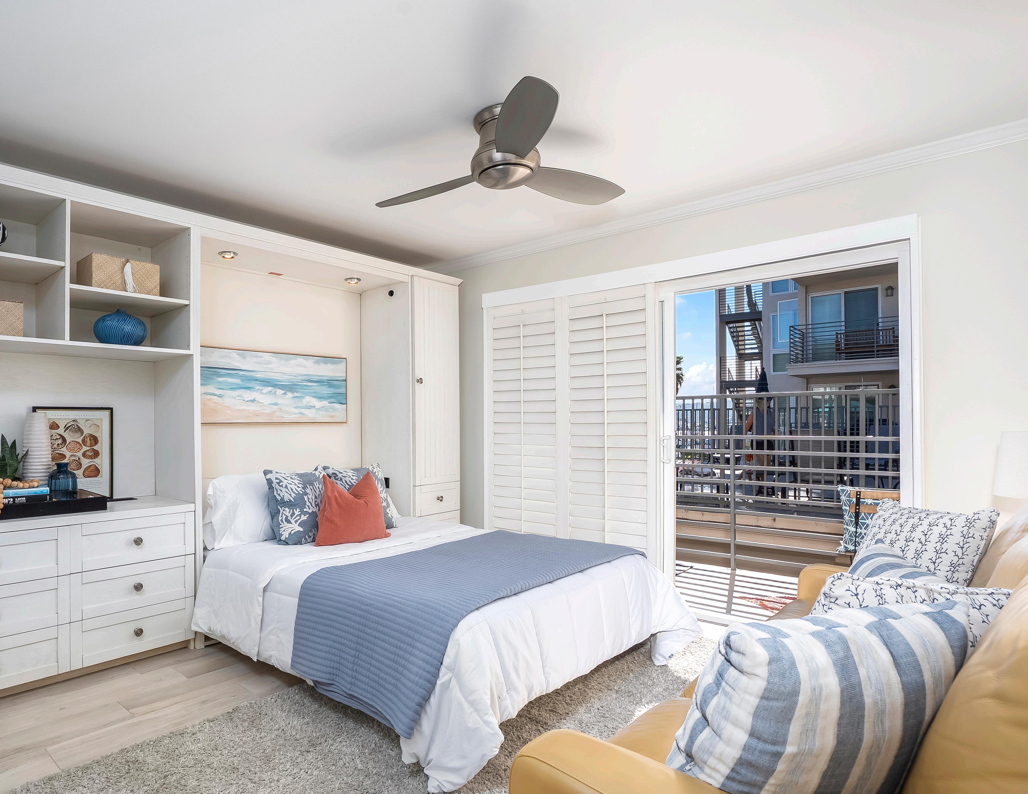 Welcome to 1021 Scott Street, Unit 137 — where compact luxury meets Point Loma’s most scenic setting. This bright, thoughtfully designed, 288 sq.ft. studio offers style, efficiency, and stunning views, perfect for full-time living, a weekend getaway, or an investment opportunity. Perched above the marina, the home features a sliding glass door leading to a private balcony with views of the Point Loma hills, the marina, and the community pool. A space-saving Murphy bed adds flexibility and extra storage, while the kitchen shines with stone countertops and ample white cabinetry. The well-appointed bathroom includes a full-size tub with beautiful finishes. Just steps from the scenic Bessemer Path and La Playa Bayfront Beach, the community offers premium amenities such a pool, fitness center, billiards room, and residents’ lounge. Whether you’re sipping your morning coffee on the balcony or strolling the bay, this upgraded studio delivers big on lifestyle in a premier location.