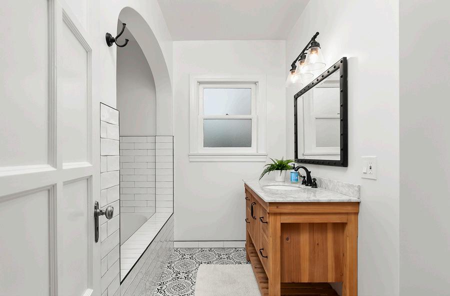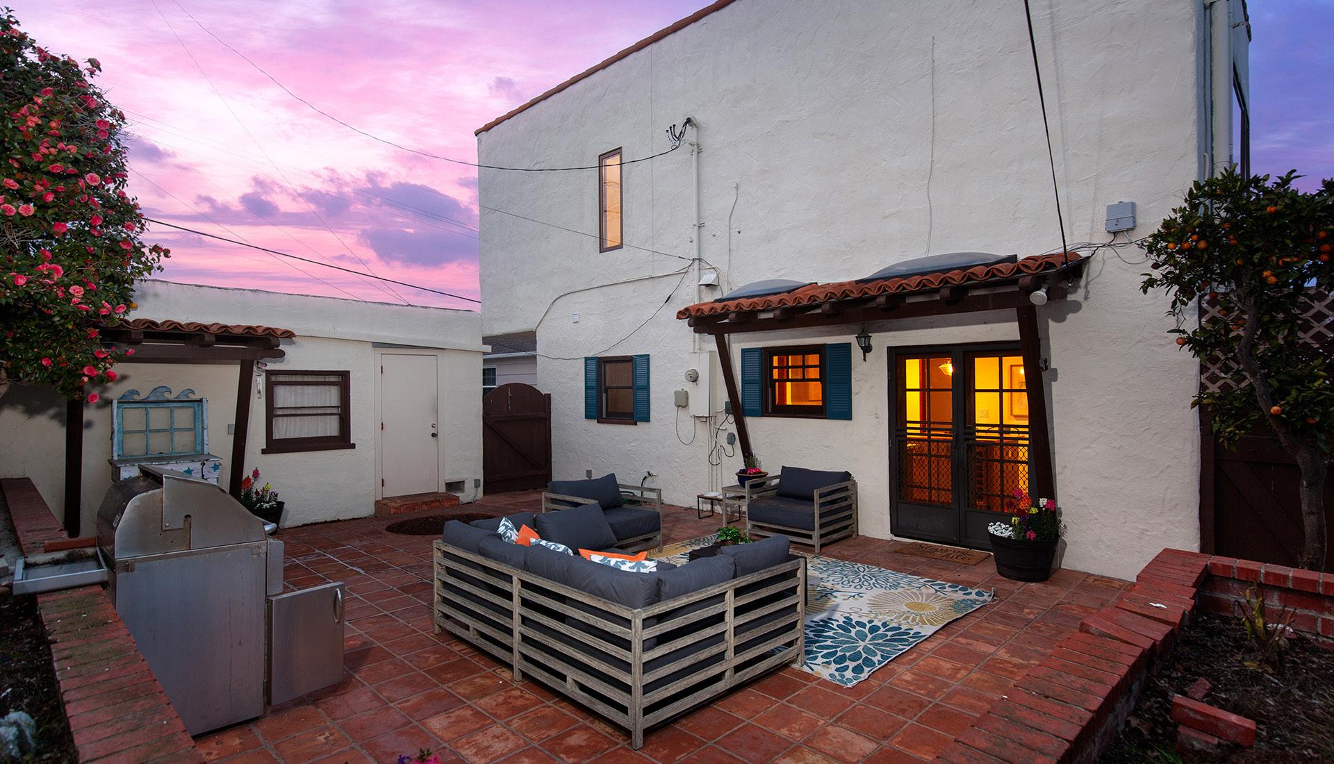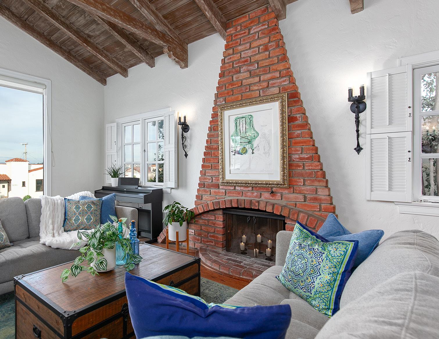 Majestic 1929 Spanish Revival home! From the minute you approach the 4 bedroom, 3 full bath home, 2620 Est. SF, she will romance you! The rustic stairs and walk way will lead you up the hill to the quaint covered porch, Mahogany 12 panel front door with a custom speakeasy window & grille. Once inside, the Turret wood beamed ceiling entry and tile floor guide you to the arched entry with wrought iron gated into step down Living area. Original Scone lighting with the most beautiful distressed Open beam, trellised Adzed wood ceilings. Romantic, floor to ceiling brick decorative fireplace, wood floors, large picture window with City and harbor views. Formal coved ceiling dining room.