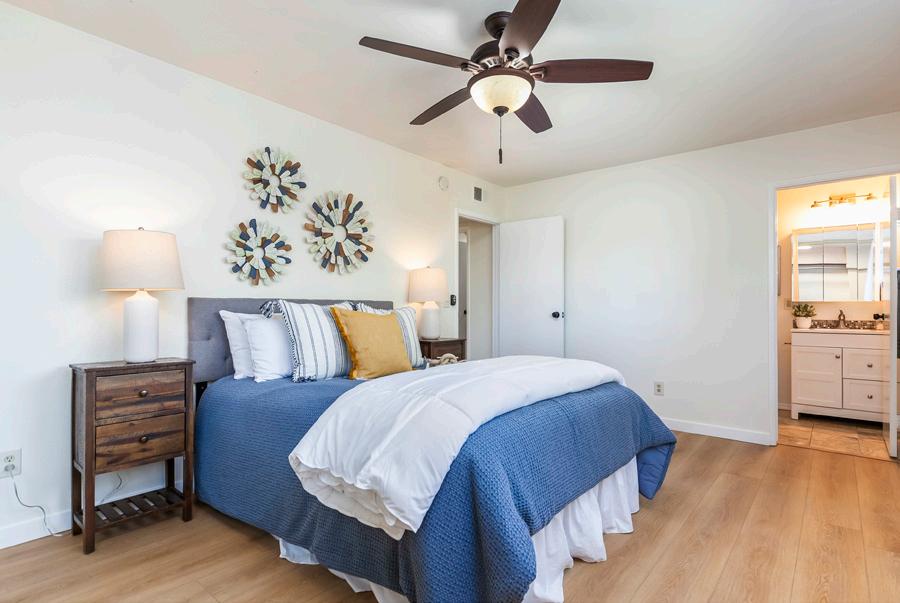 The primary suite includes a private ensuite bath and a spacious walk-in closet, and the spacious second bedroom is directly across from the hall bath, great for guests or a home office. Enjoy morning coffee or evening relaxation on your private balcony. An in-unit washer and dryer add everyday convenience. 2 parking spaces! Upgraded electrical. Community amenities include a sparkling pool, spa, clubhouse, and covered carport parking. Ideally located just steps from Barron’s Market and close to shopping and dining, this home offers the perfect blend of comfort and convenience in the heart of Point Loma.
