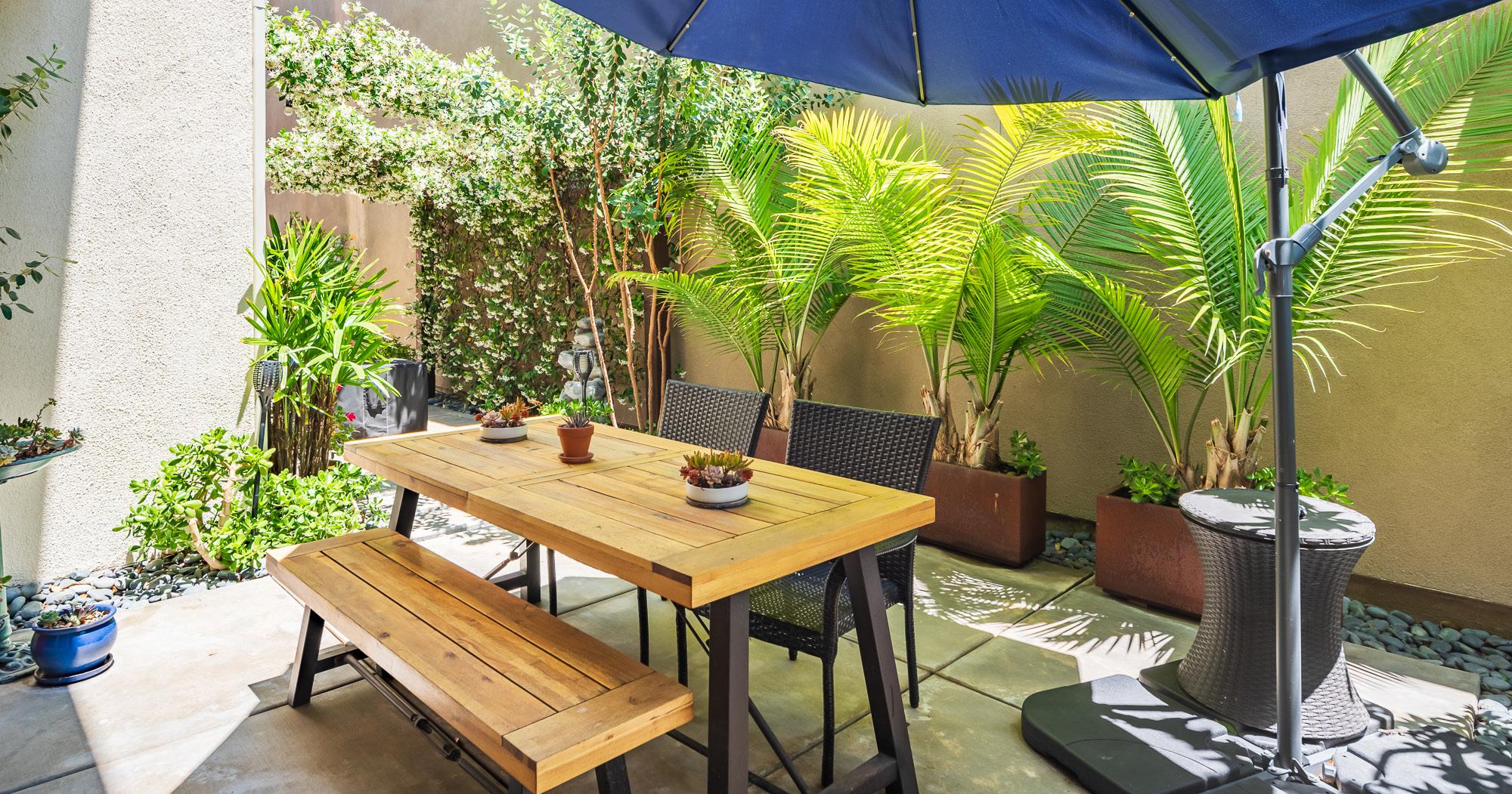 Want to live in a home that feels like a private oasis? Then, this is your perfect spot. Before you enter this home, you will find yourself on an open front garden deck area where you can relax and enjoy the neighborhood surroundings. From there you will step inside your model like luxury home with a private tropical patio semi covered by a fragrant jasmine canopy right off the living room area. Even better, this patio has a built-in BBQ where you can truly enjoy meals al fresca any time. Off the foyer you will find a bright guest room with its own bathroom on the first floor or use it as an art/office room. This home has an open concept living space; living room, dining and kitchen with a chef’s table/counter area which makes it easy to enjoy time with the family or celebrate with friends. You will also find a wine fridge, newer refrigerator and a walk-in pantry.