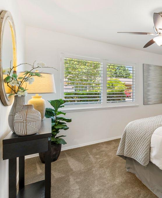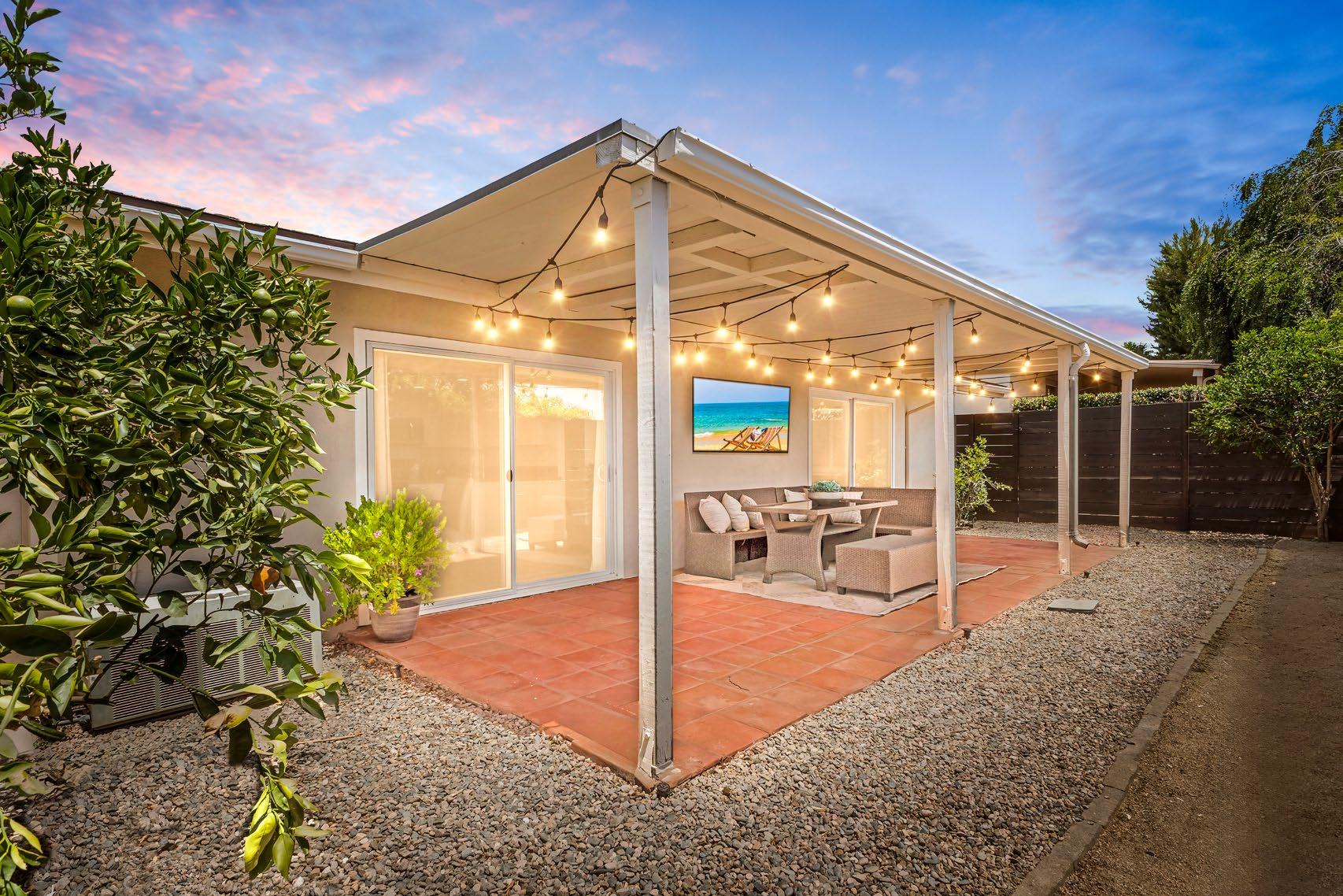 Updated throughout by the owners, not as a flip, this no-step access property lives like a detached single-family home with only one attached neighbor and its own spacious yard. The open, flowing layout welcomes you in and seamlessly invites you through two sets of large sliders into the private backyard to enjoy the extensive covered patio, entertaining space with tv, custom fence, orange trees, and easy indoor-outdoor living. Back inside, this newly painted, spacious 1,465 ESF home with upgraded tile flooring and fresh carpet lives large with a sprawling main living space, generous primary bedroom with en suite, sizable secondary bedroom, two full bathrooms, office nook, and laundry room. With refreshed kitchen cabinets in the heart of the home, custom shutters on the windows, updated guest bathroom countertop, attached carport, storage throughout, central air conditioning, electric car charging outlet, quick freeway access, and trails and parks nearby, this serene, comfortable home truly lives well and offers so much on beautiful Fairway Park.