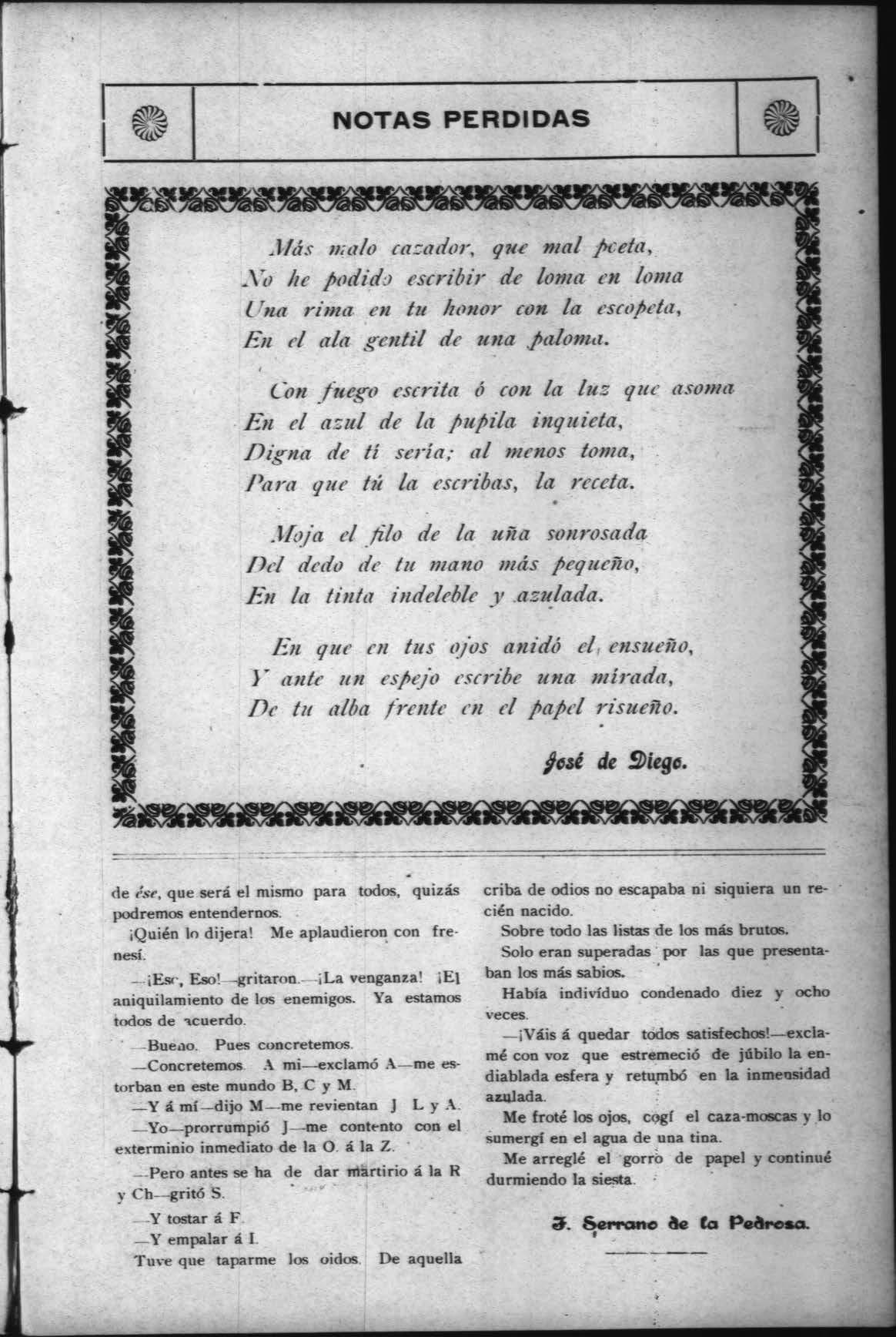 N Más malo cazador, que mal pceta, ¿Í_ = No he podido escribir de loma en loma Dj _ Una rima en tu honor con la escopeta, Cas ; En el ala gentil de una paloma. *