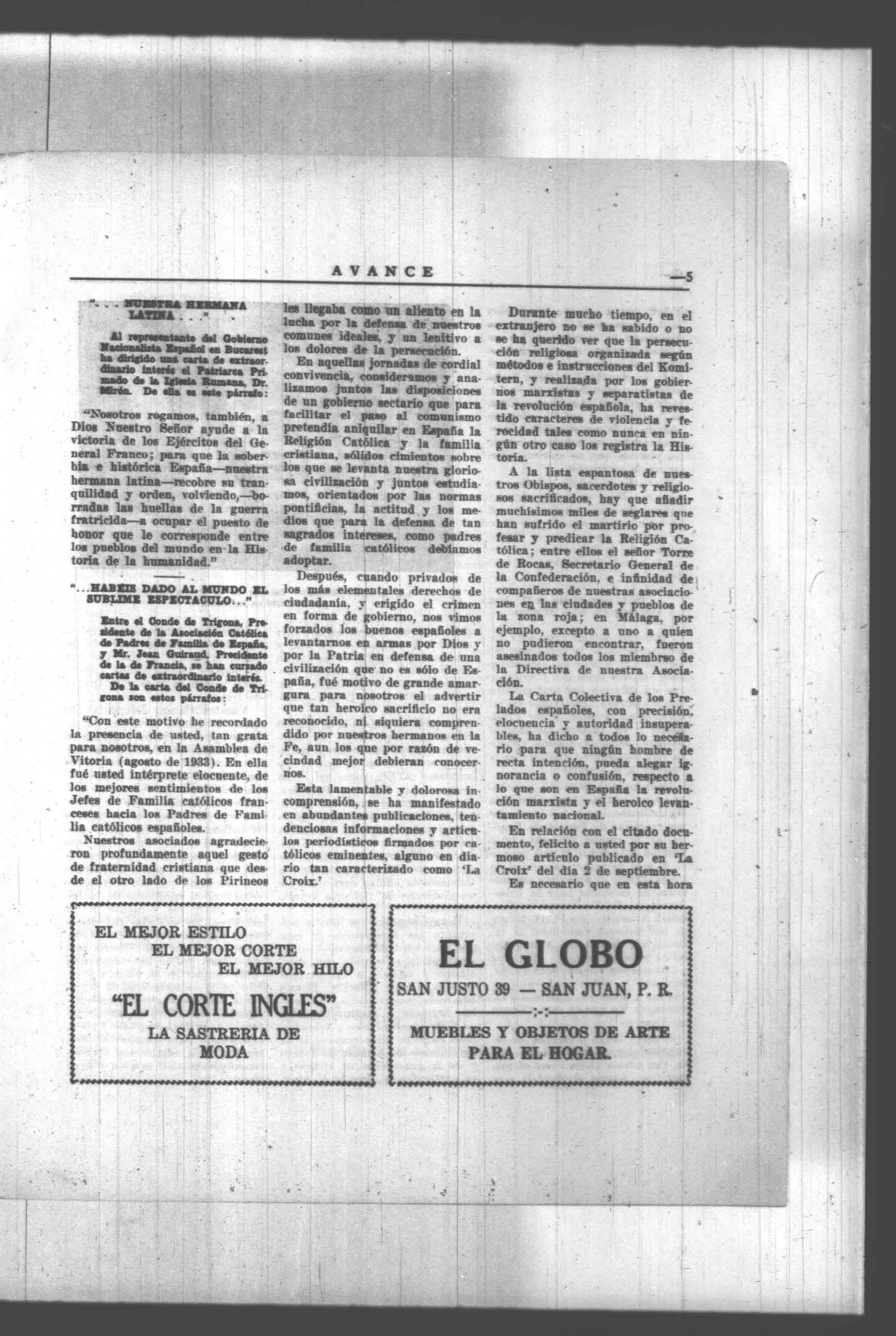 Después, cuando privados delos más elementales derechos de ciudadanía, y erigido el crimenen forma de gobierno, nos vimos forzados los os españoles alevantarnos en armas por Dios y por la Patria en defensa de una civilización que no es sólo de España, fué motivo de grande amargura para nosotros el advertirque tan heroico sacrificio no erareconocido, ni siquiera compren-dido por nuestros hermanos en laFe, aun los que por razón de vecindad mejor debieran conocer-nos.