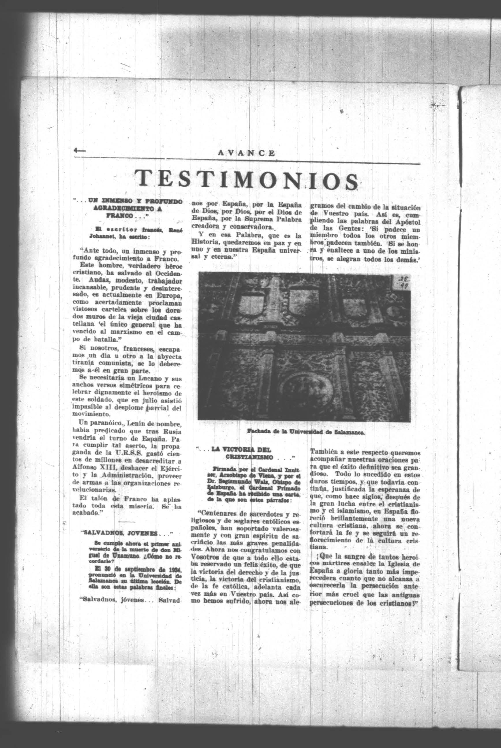 Hemos seguido con interés palpitante las incidenciás de estaguerra, verdadéramente - santa,emprendida y seguida con entu-sigsmo y método a la vez. porvuestro valiente Ejército. Hemosadmirado, emocionados, las proe-zas heroicas y magníficos actosde fe de vuestros jefes y soldados.tales como la épica resistencia delos cadetes del Aleázar de Toledoy de la guarnición de Oviedo yen particular la ofrenda al Após.