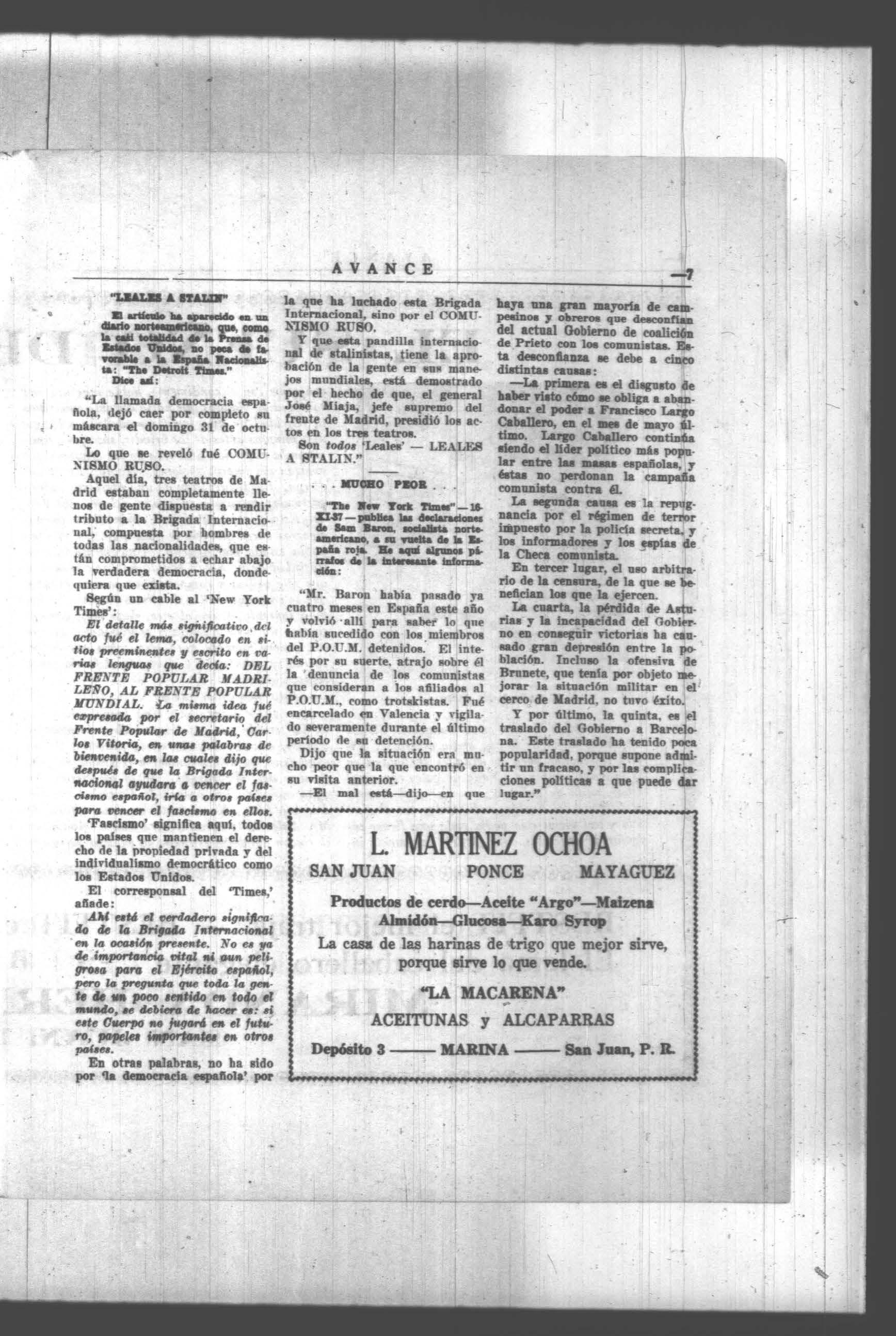 Mr. Baron había pasado ya cuatro meses en España este año y volvió -allí para saber lo quehabía sucedido con los miembros del P.O.U.M. detenidos. El interés por su suerte, atrajo sobre él la "denuncia de los comnnistas que consideran a los afiliados al P.O.U.M., como trotskistas. Fué encarcelado en Valencia y vigilado severamente durante el último período de sn detención.