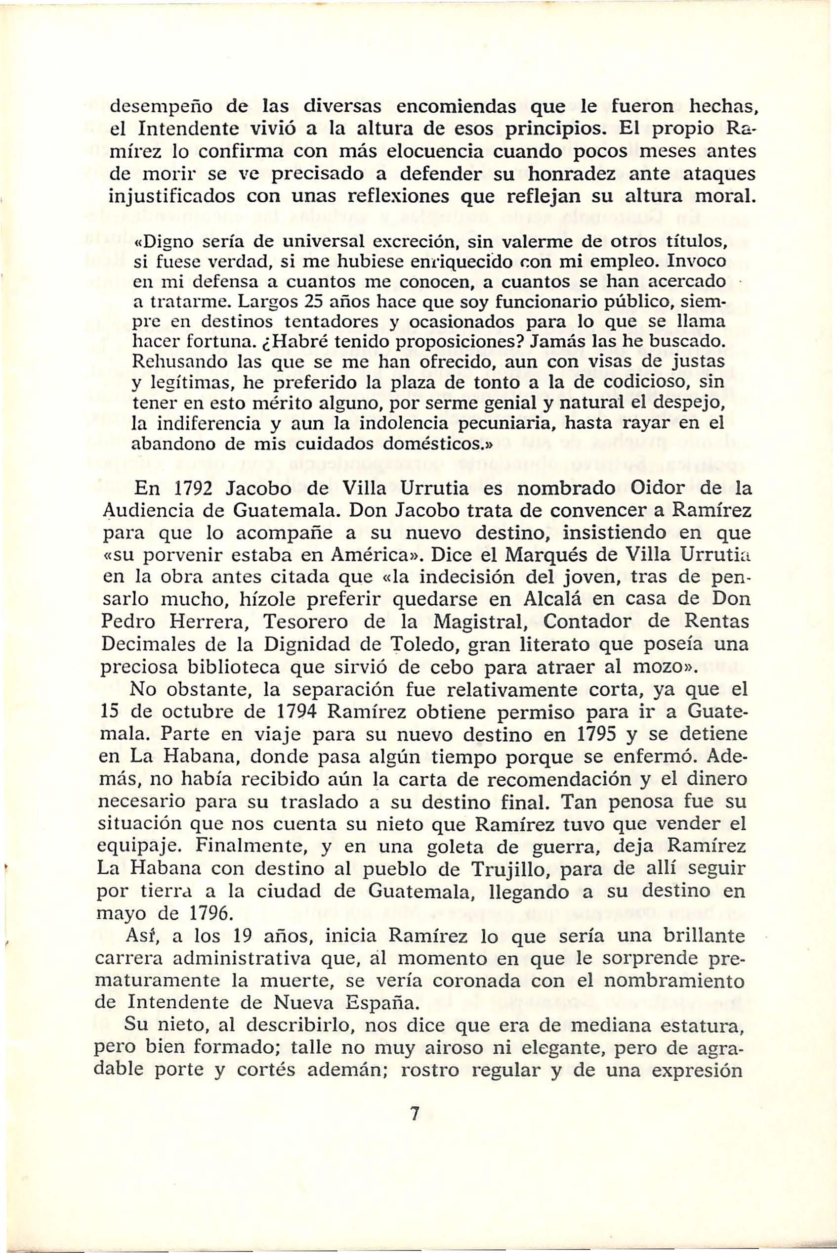 Ast, a los 19 años, inici a Ramírez lo que sería una brillante carrera adm inistr ativa que, al momento en que le sorprende prematuramente la muerte, se vería coronada con el nombramiento de Intendente ele Nueva España.