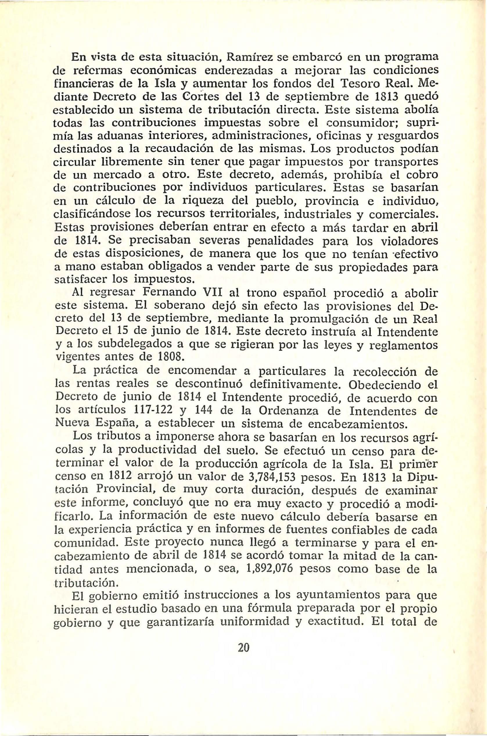 ción que encontró Ramírez al hacerse cargo de su nuevo puesto. «E l país había permanecido estacionari o, si se comparan sus progresos en población, comercio y cultura con los realizados por otros americanos en e l mismo tiempo. El nuevo Intendente tenía ante sí una tarea semejante a la que se confrontó en Puerto Rico, pero dentro de un campo de acción más vasto y con circunstancias más complejas.»