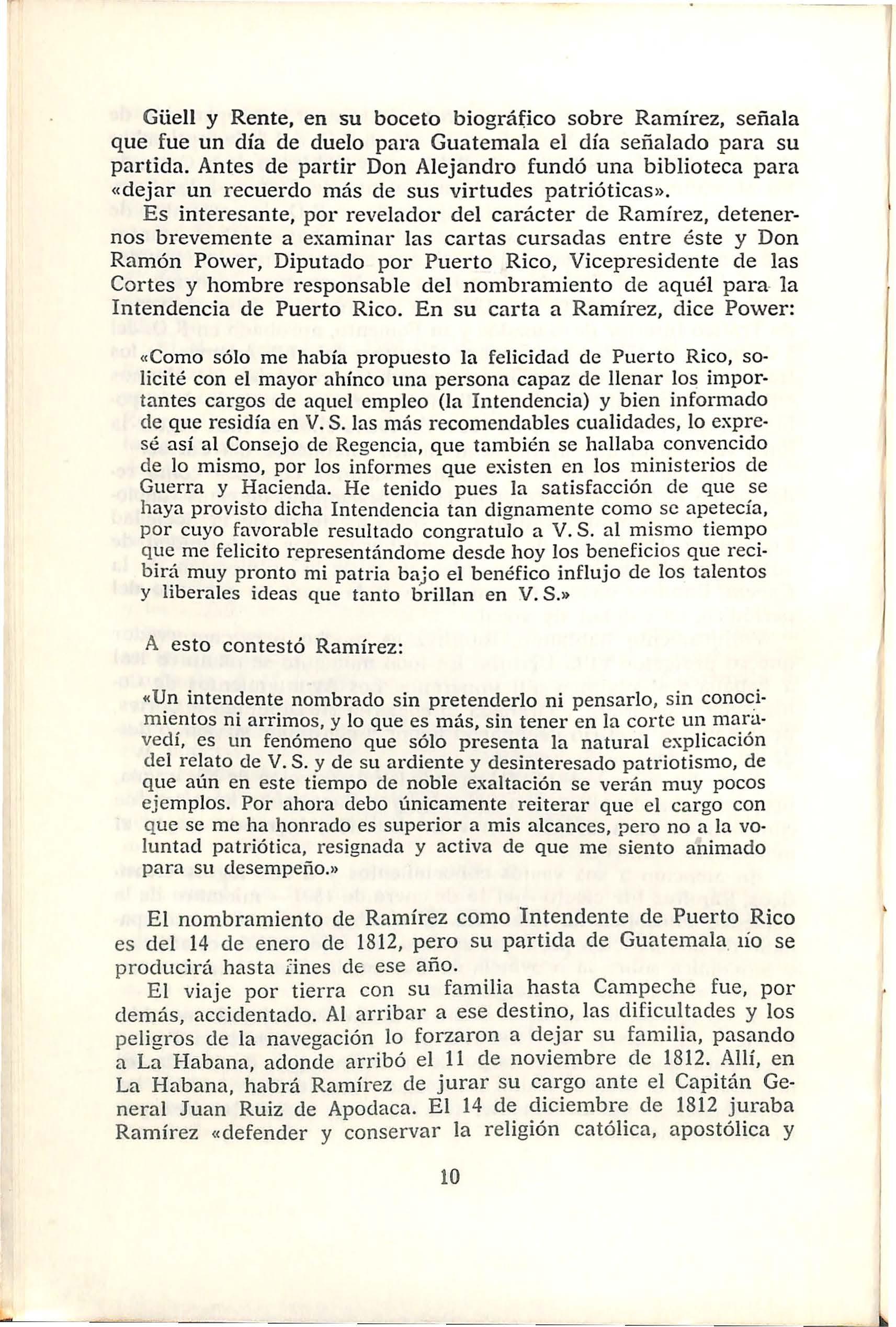 El nomb ra m ien t o de Ramírez com o Inten d en t e de Puer t o Ri co es del 14 de e n ero de 1812, pero su p a rtida de Guatemala _ ií o se producirá hasta fi n es de ese año.