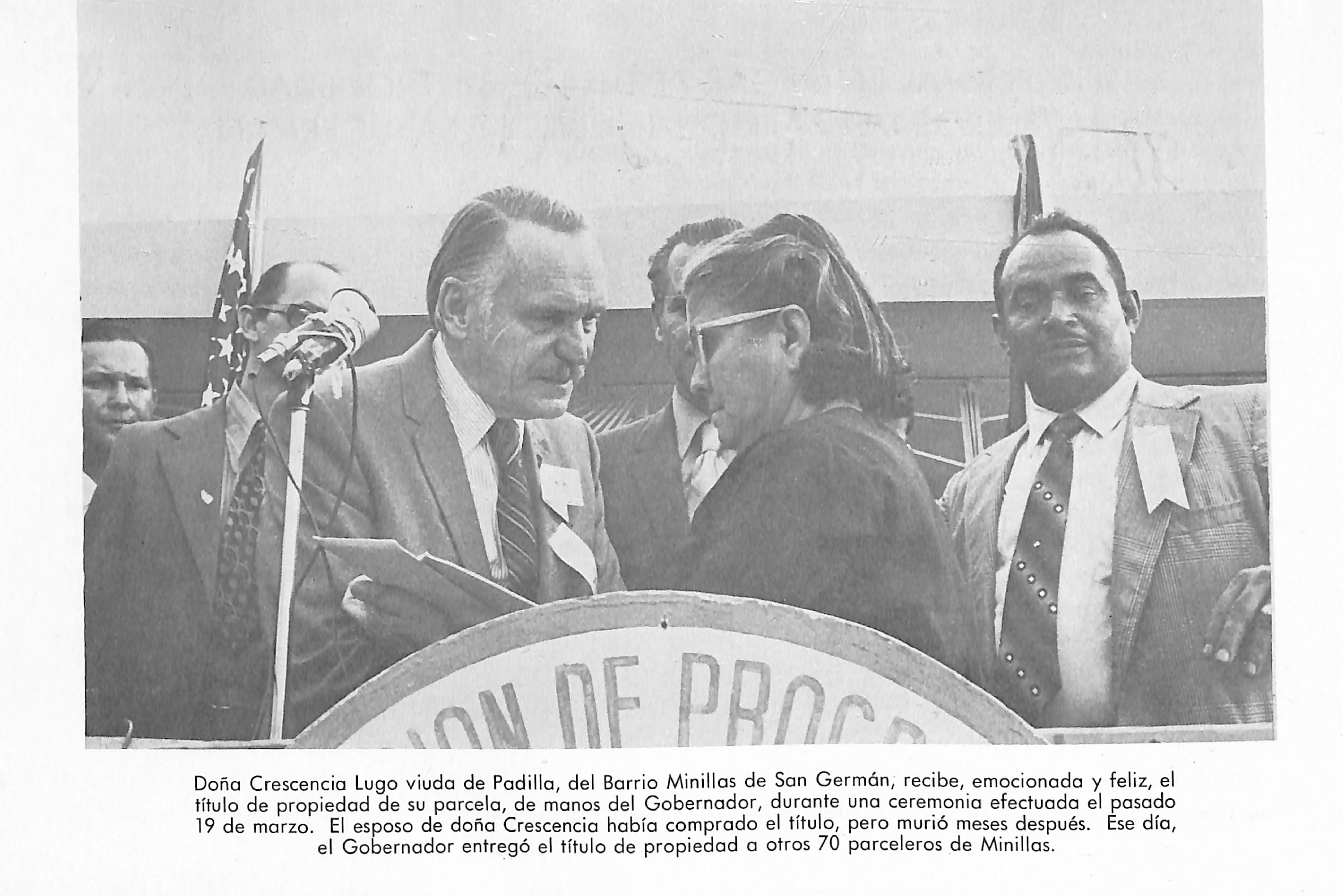 Discurso al entregar 71 títulos de propiedad a un número igual de parceleros en el barrio Minillas de San Germán, el viernes 19 de marzo de 1971 9 Fotografía 14