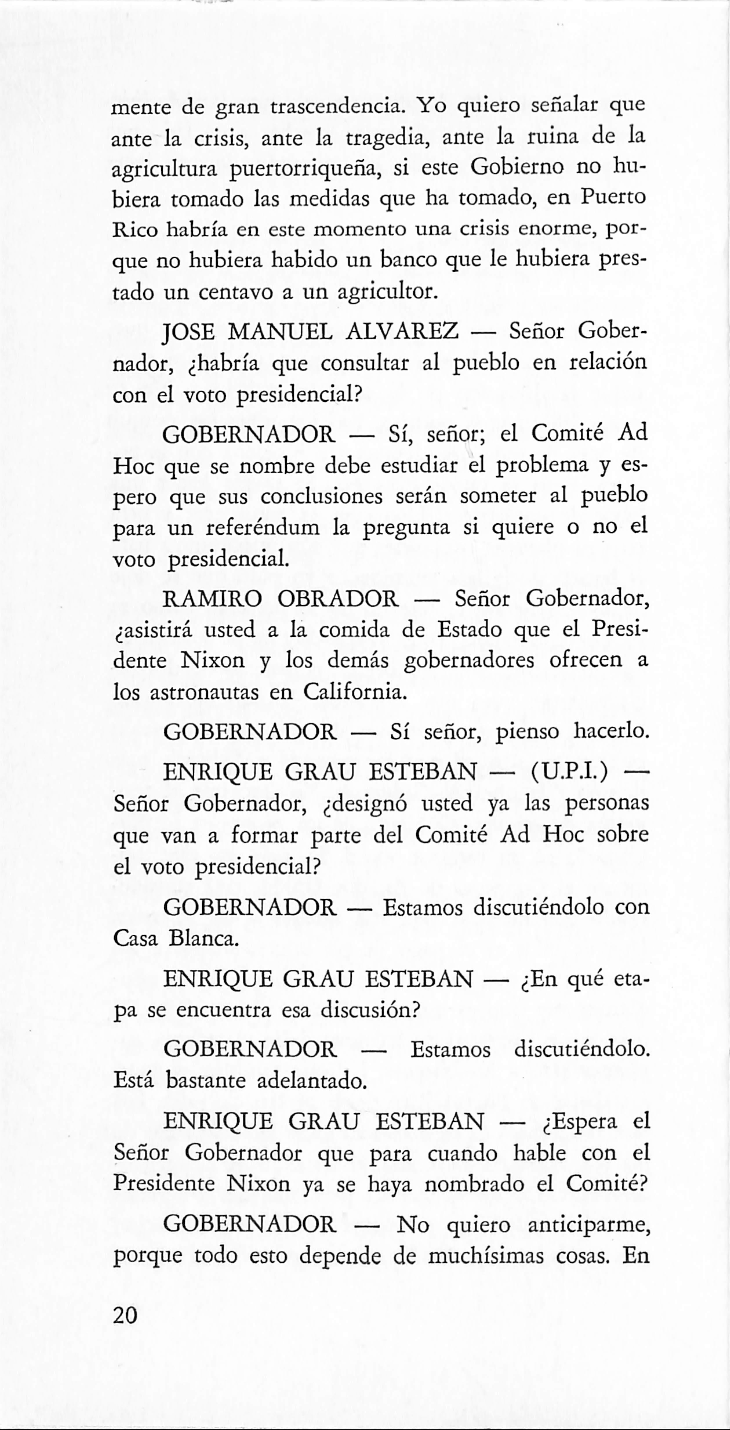 ENRIQUE GRAU ESTEBAN — ¿Espera el Señor Gobernador que para cuando hable con el Presidente Nixon ya se haya nombrado el Comité?