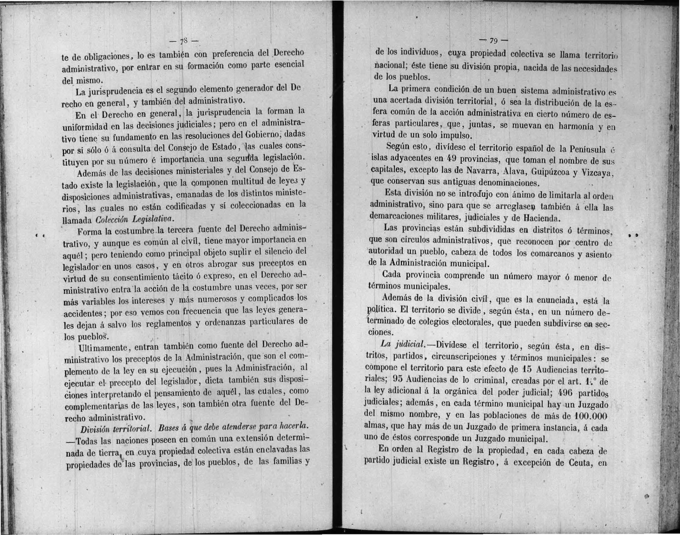 A pesar de la importancia general del Derecho administrativo, solo existe una obra doctrfoal completa del mismo, á la .que hay que acudir forzosamente para las cuestiones de la vida so¿ial; esta obra es la del reputado jurisconsulto Sr. Colmeiro, en la que apremy.mos los principios fundame ntales del Derecho administrativo y los habrán aprendido también, sin duda alguna, todos ó casi todos nuestros compañeros de profesión. Pero esta .obra, de indisputable ·mérito, y las varias que se han escrito sobre determinadas cuestiones administrativas, se dirigen á un fin distinto del nuestro; esto es, á echar los cimientos de la ciencia en los que han de practicarlas algún dia como abogados ó como empleados de la Administración, pero en grai:io superior, y no descienden á ese terreno ·que, aunque y práctico ºá la vez, en él desempeñan sus funciones ó vi yen otras clases más modeslas de la socie- . dad, y que necesitan, no obstante, de co 0 nocimientos administrativos.