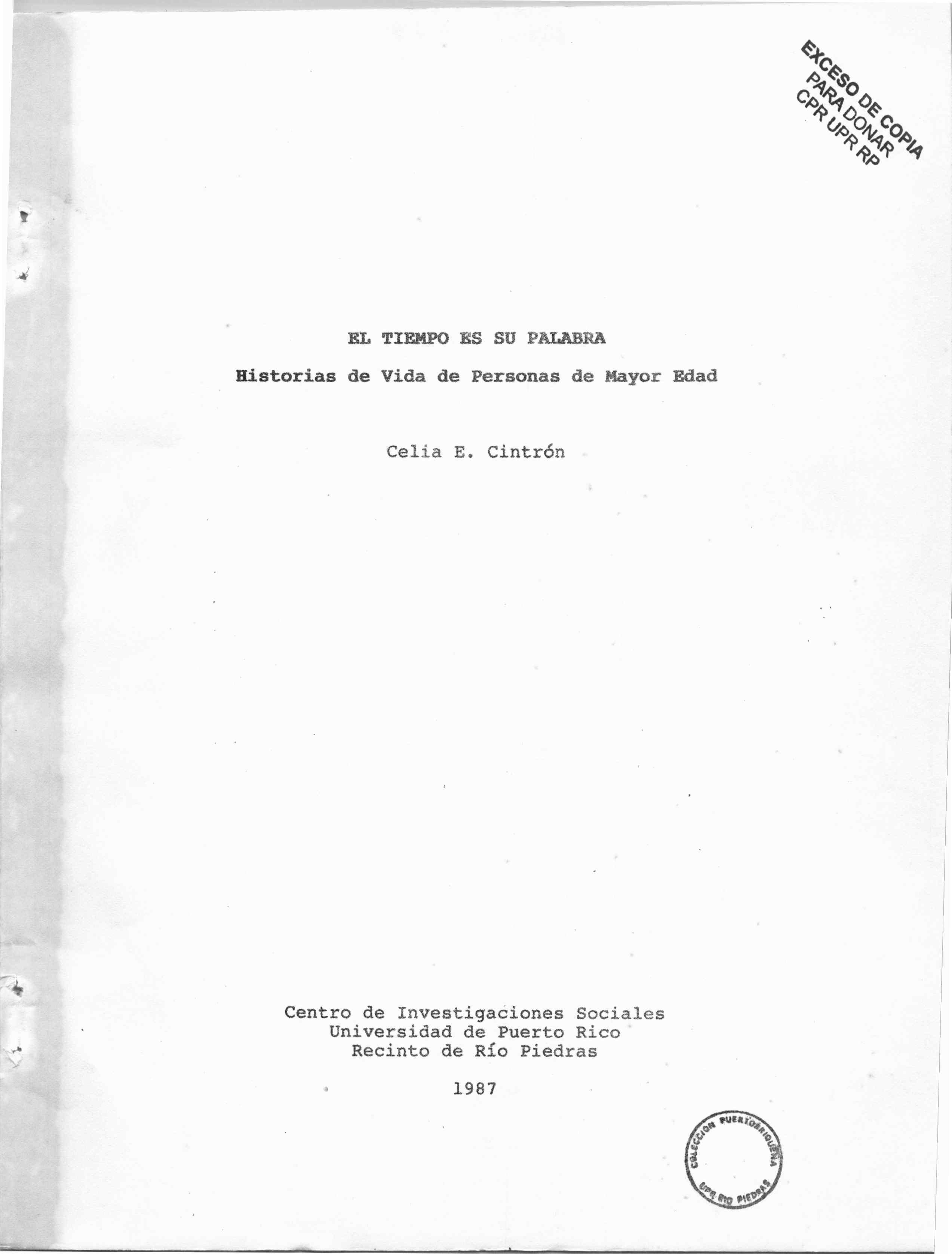 El tiempo es su palabra: historias de vida de personas de mayor edad (1987) by La Colección Puertorriqueña - Issuu