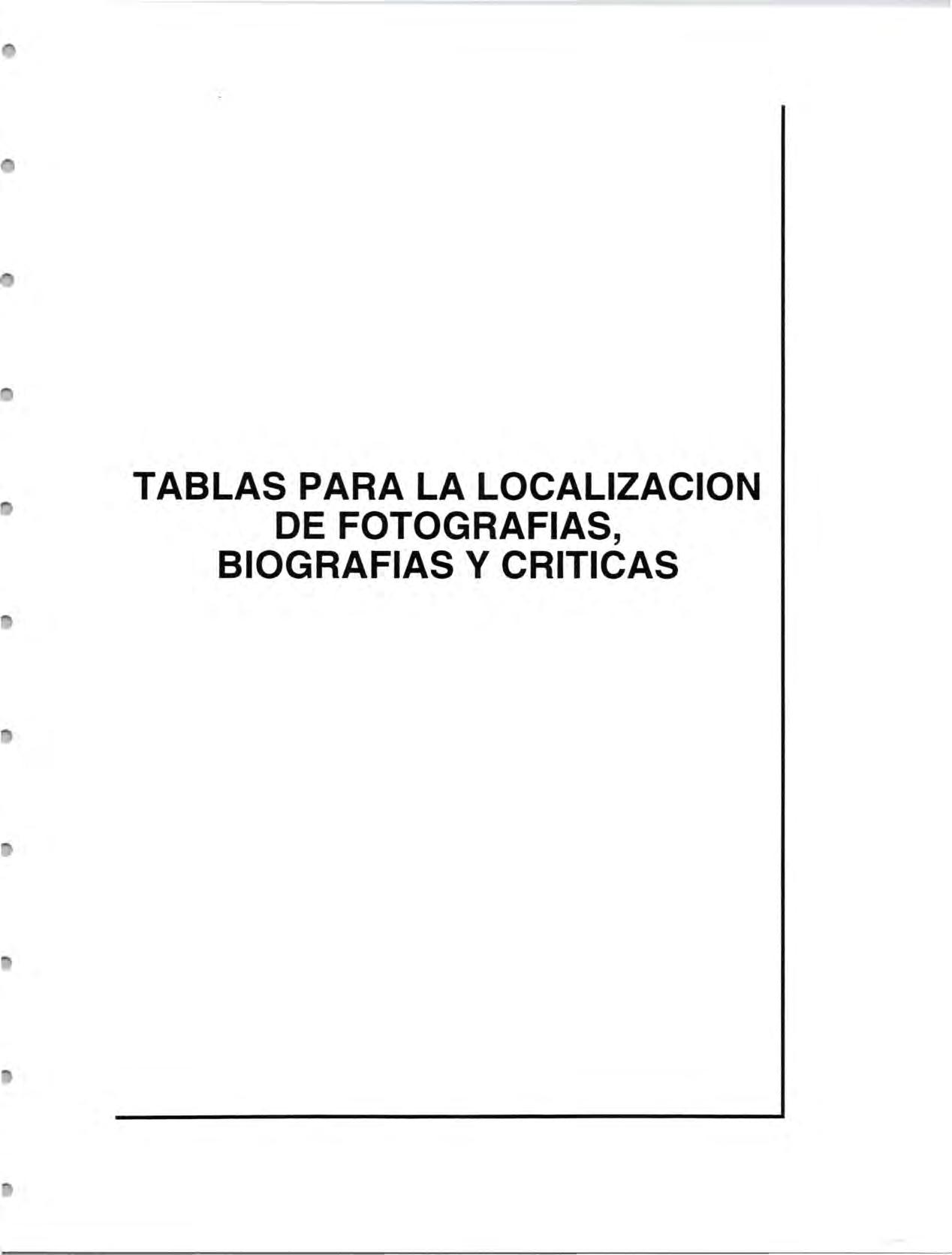 La segunda parte consta de las entradas principales. Cada entrada incluye: el nombre del biografiado; fecha de nacimiento y muerte; lugar de nacimiento; siglas de la fuente bibliografica donde se ha identificado la informaci6n, y bajo los diferentes renglones descriptivos, la pagina o paginas exactas donde se encuentra la fotograffa, biograffa o crftica del mismo, segun sea el caso.