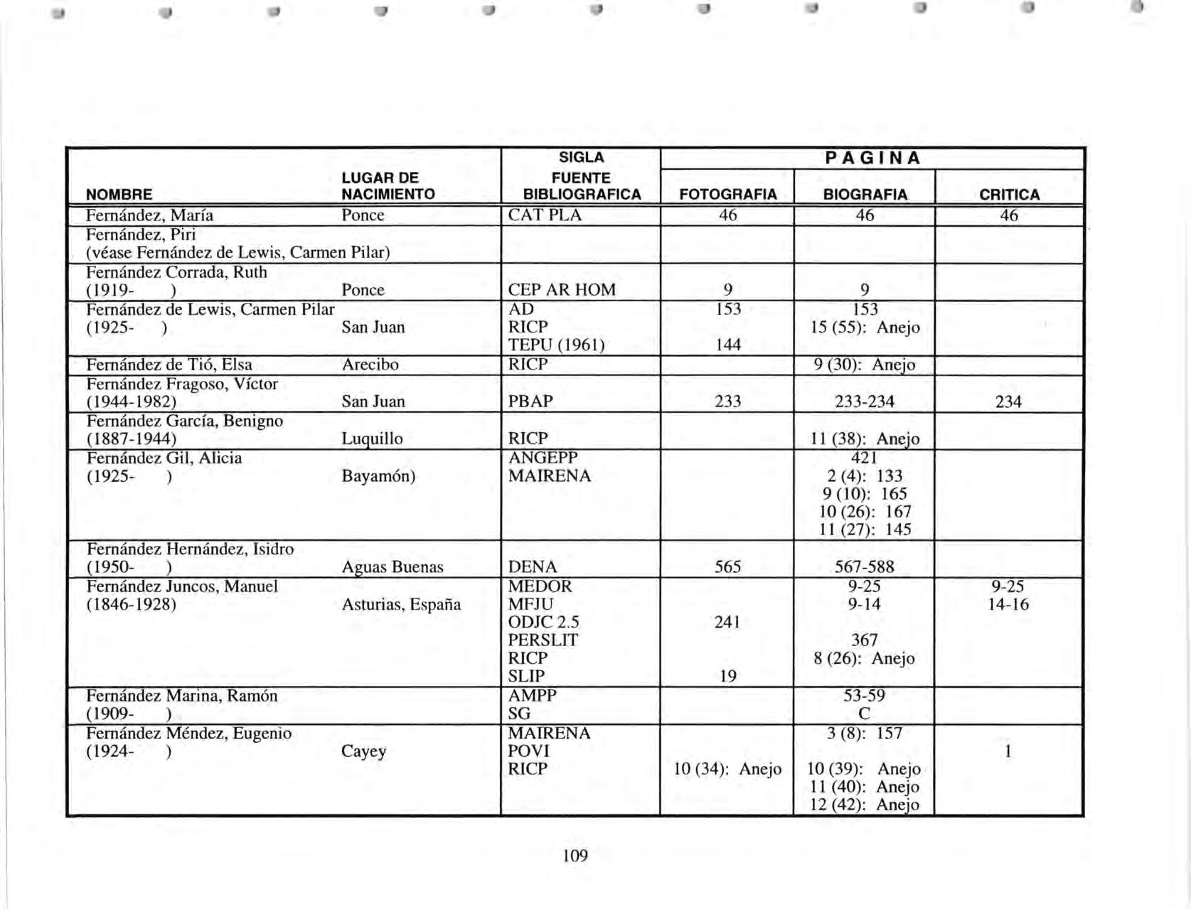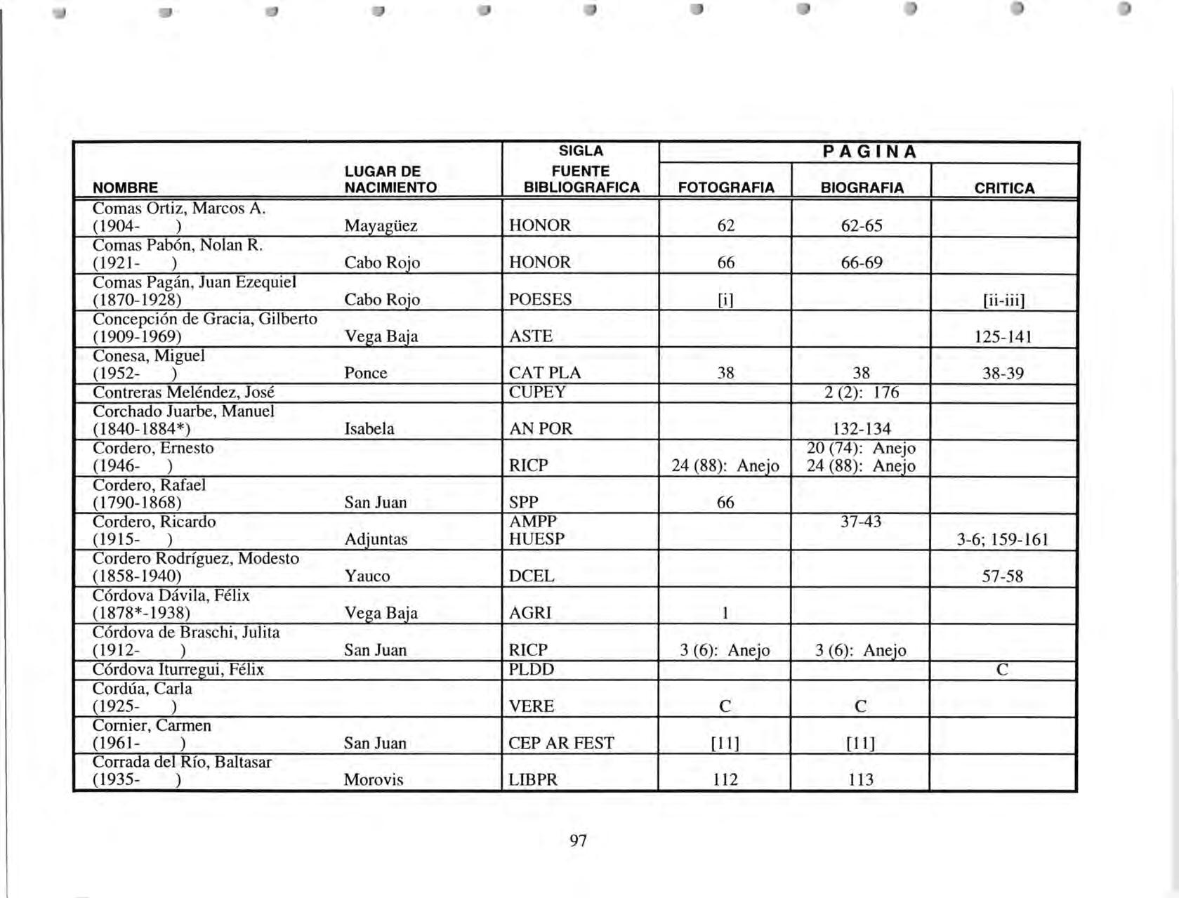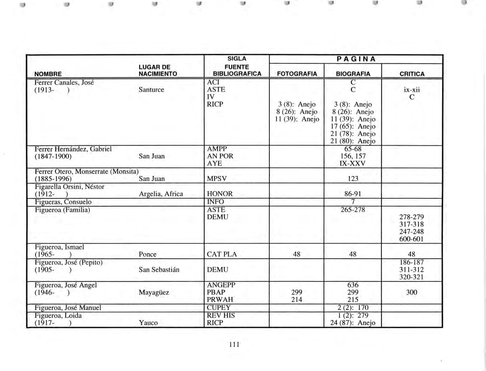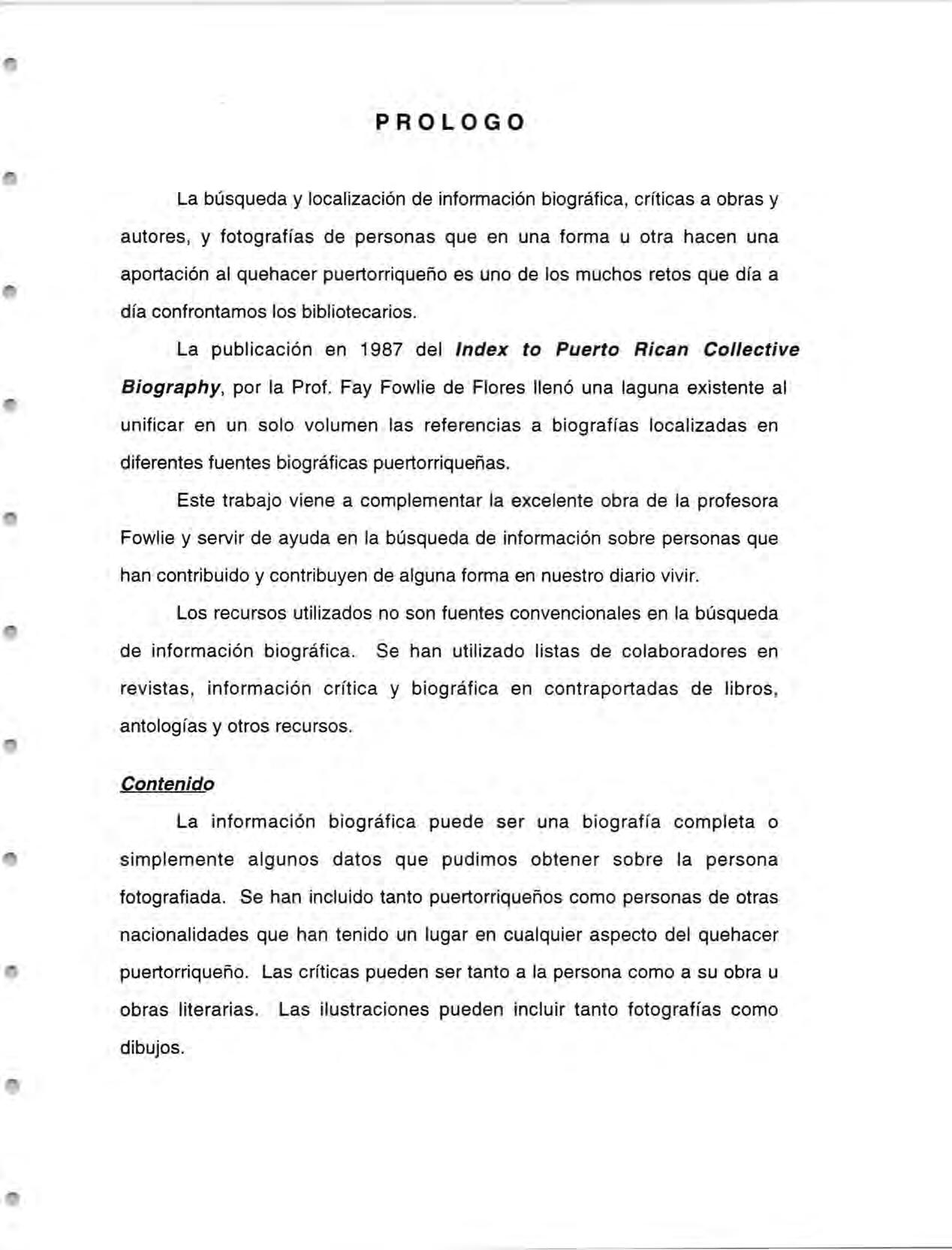 La publicaci6n en 1987 del Index to Puerto Rican Collective Biography, por la Prof. Fay Fowlie de Flores llen6 una laguna existente al unificar en un solo volumen las referencias a biograffas localizadas en diferentes fuentes biograficas puertorriqueiias.