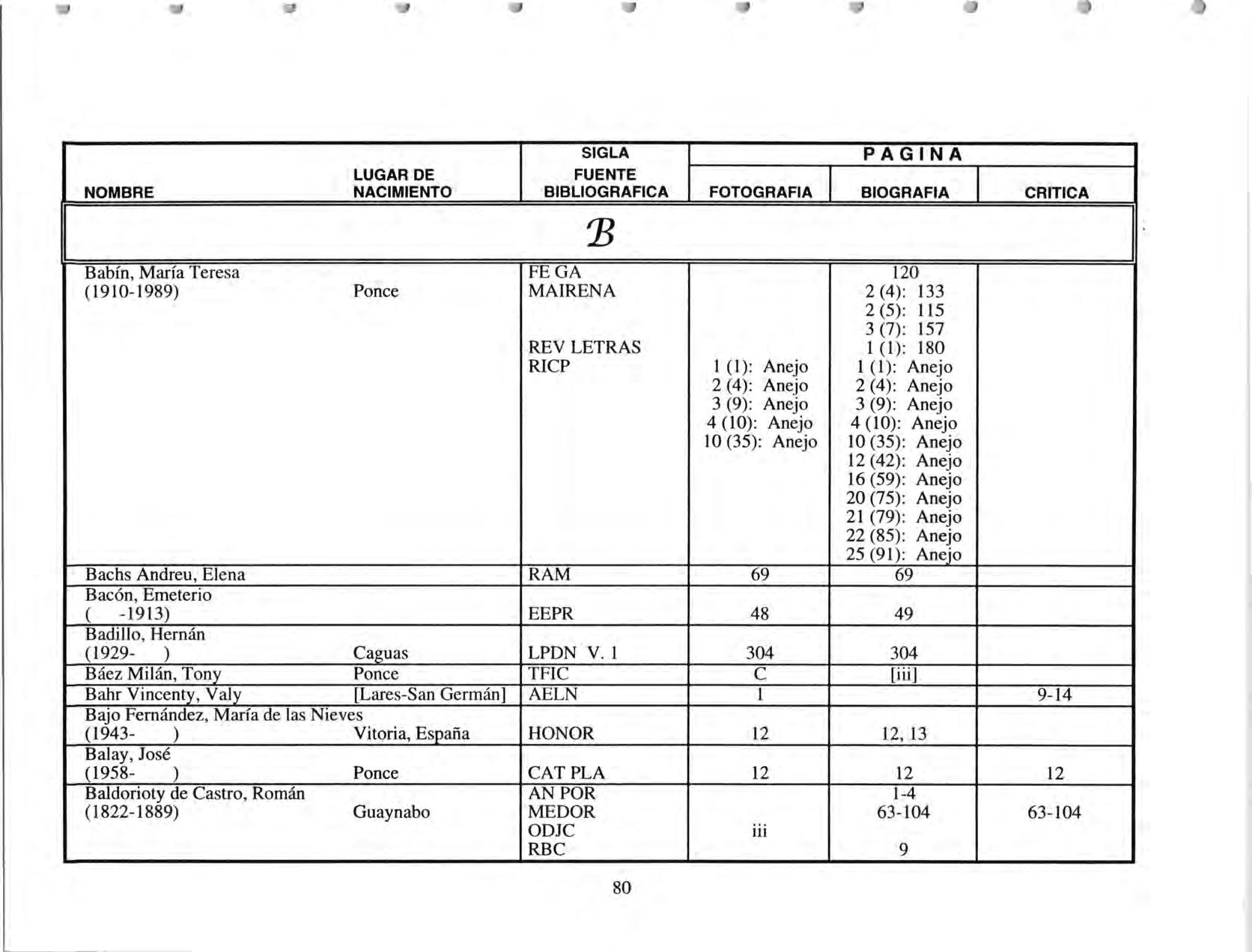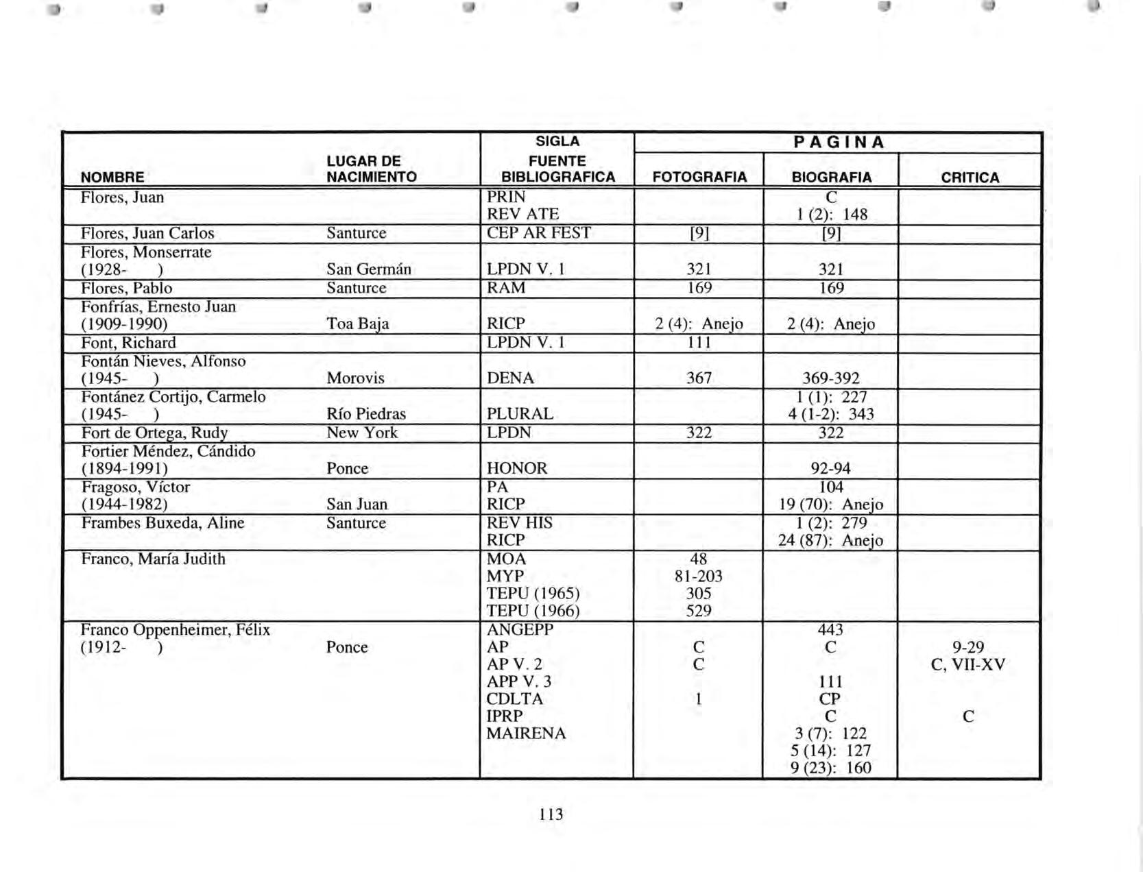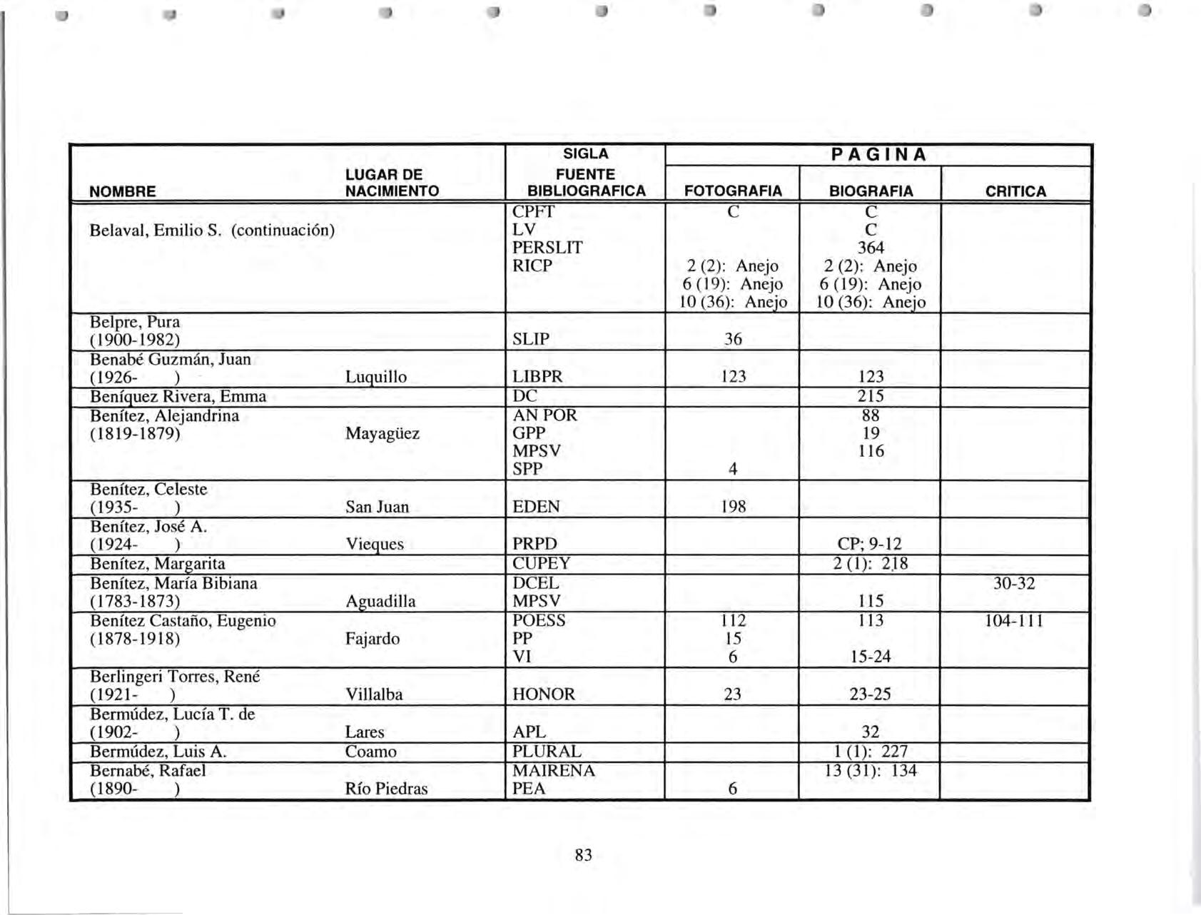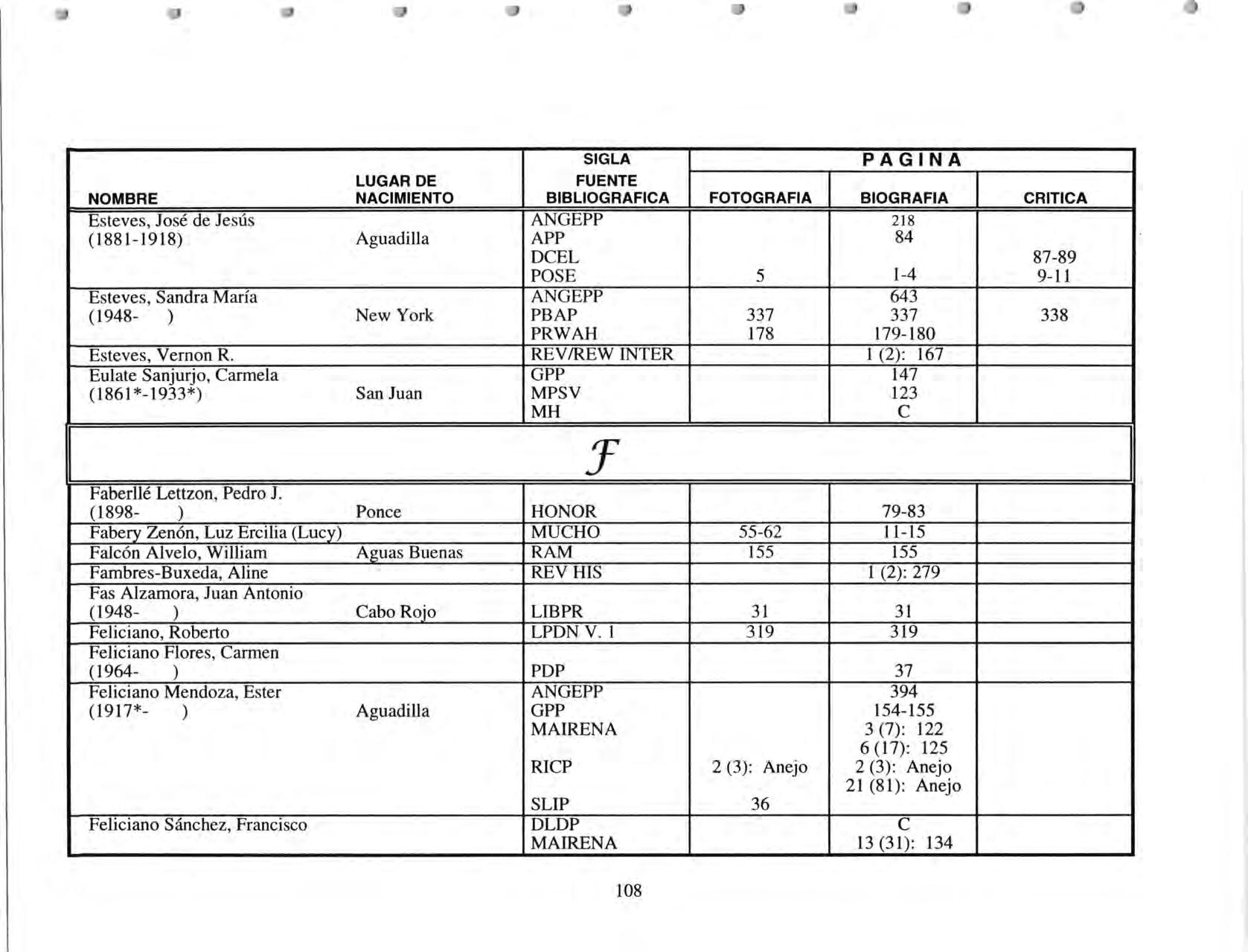 La publicaci6n en 1987 del Index to Puerto Rican Collective Biography, por la Prof. Fay Fowlie de Flores llen6 una laguna existente al unificar en un solo volumen las referencias a biograffas localizadas en diferentes fuentes biograficas puertorriqueiias.