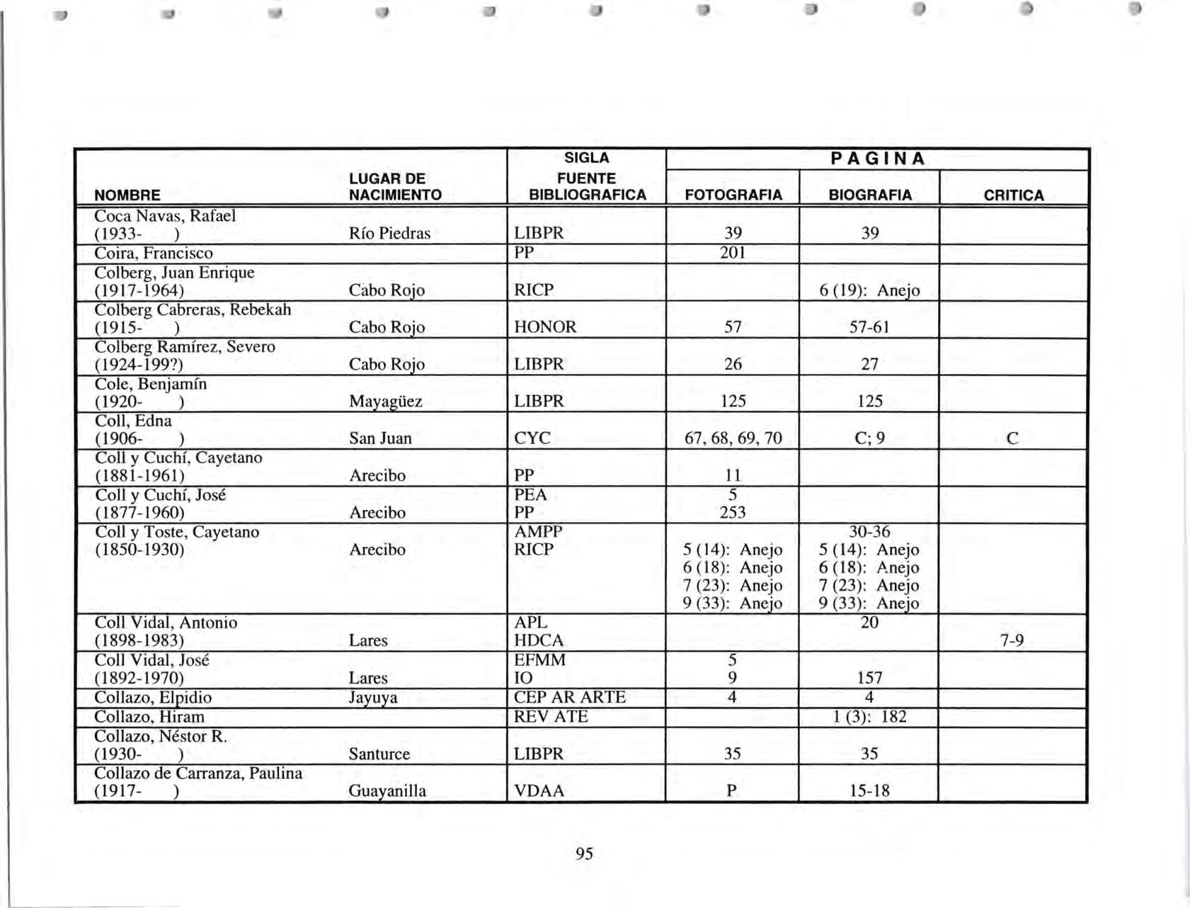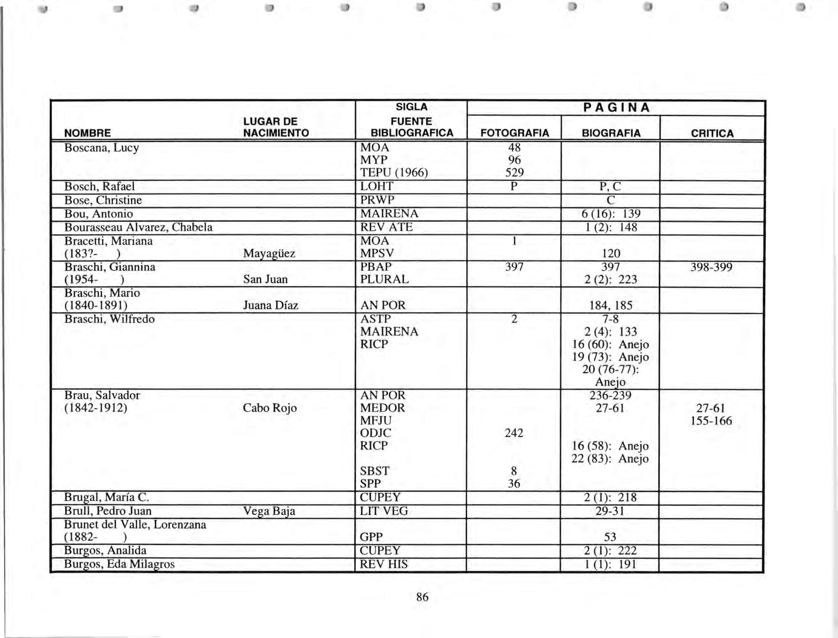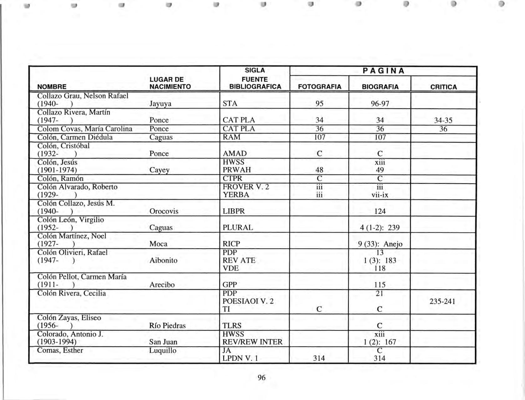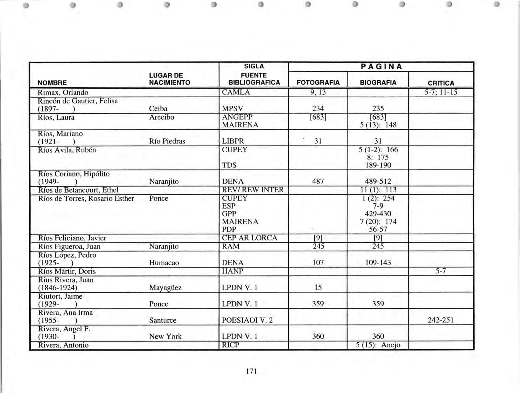 La publicaci6n en 1987 del Index to Puerto Rican Collective Biography, por la Prof. Fay Fowlie de Flores llen6 una laguna existente al unificar en un solo volumen las referencias a biograffas localizadas en diferentes fuentes biograficas puertorriqueiias.