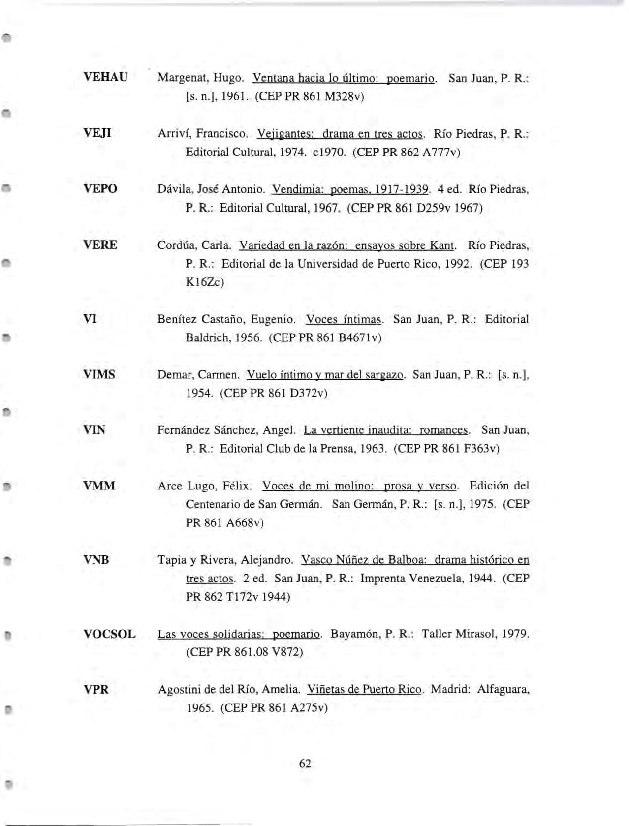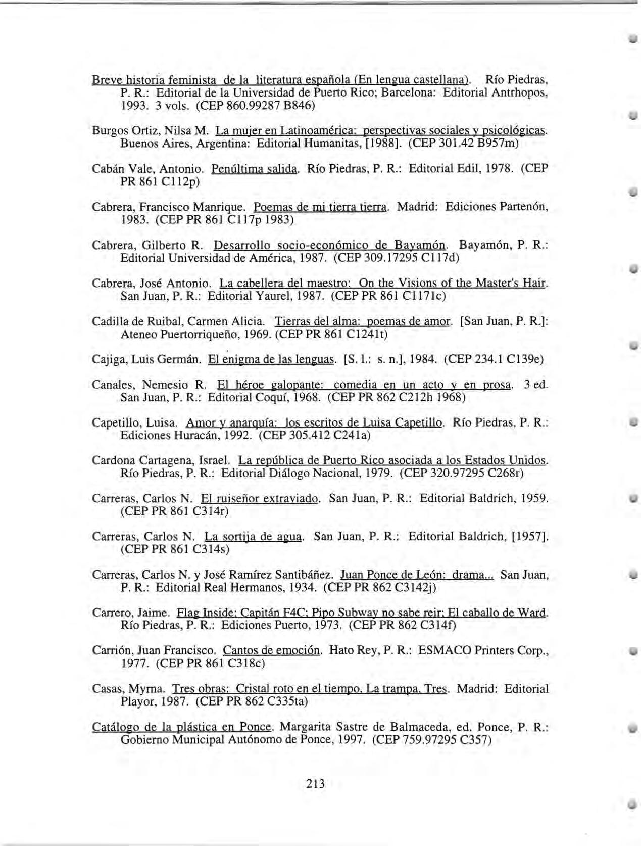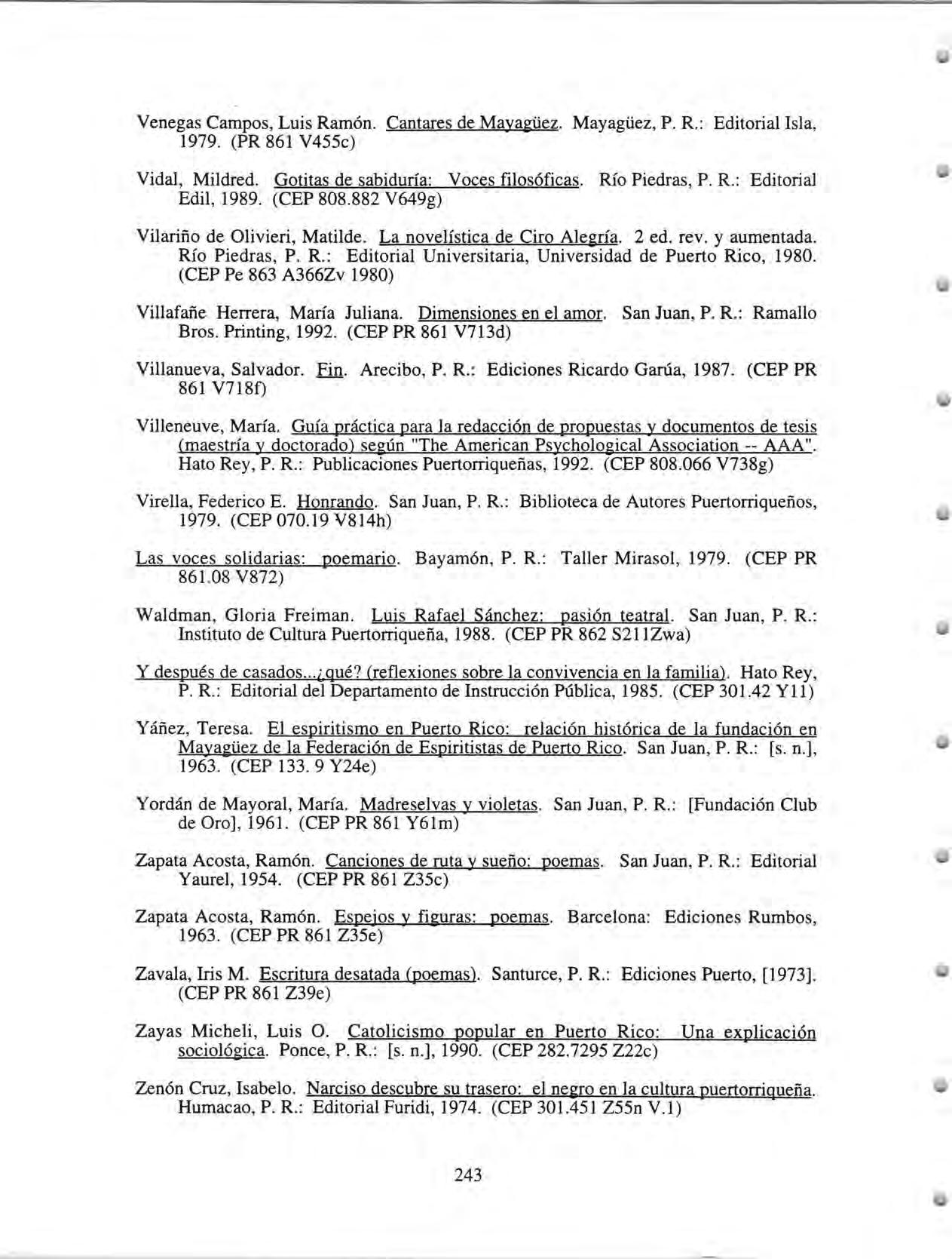 Alvarez Valle , Ernesto . Abacoa. San Juan , P. R.: Instituto de Cultura Puertorriquefia, 1979. (CEP PR 861 A473a)