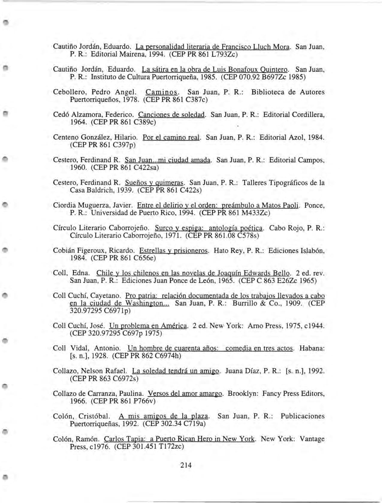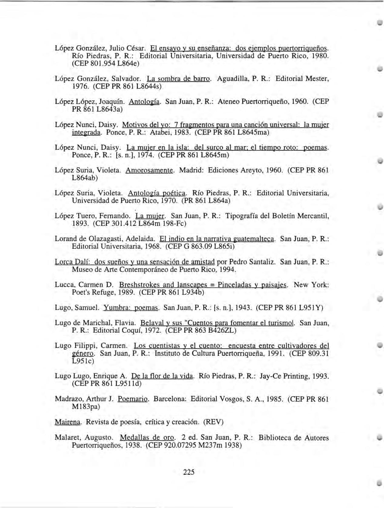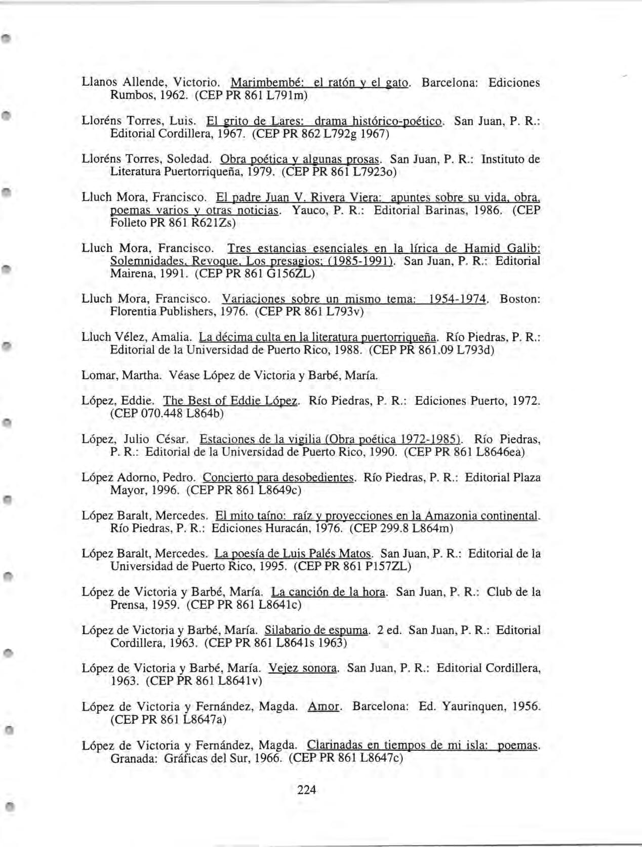 L6pez L6pez, Joaquin. Antologfa. San Juan , P. R.: Ateneo Puertorriquefio , 1960 (CEP PR 861 L8643a)