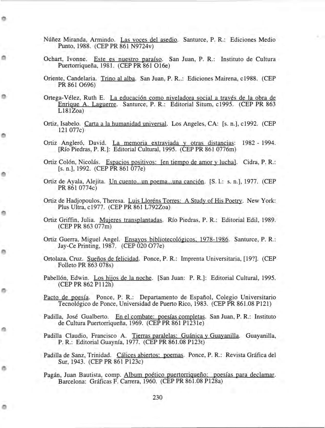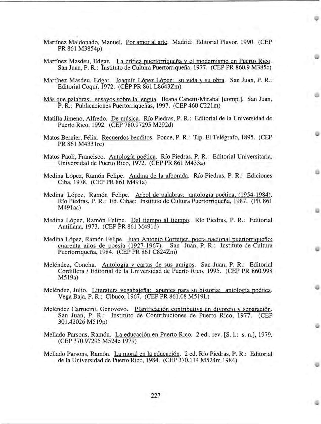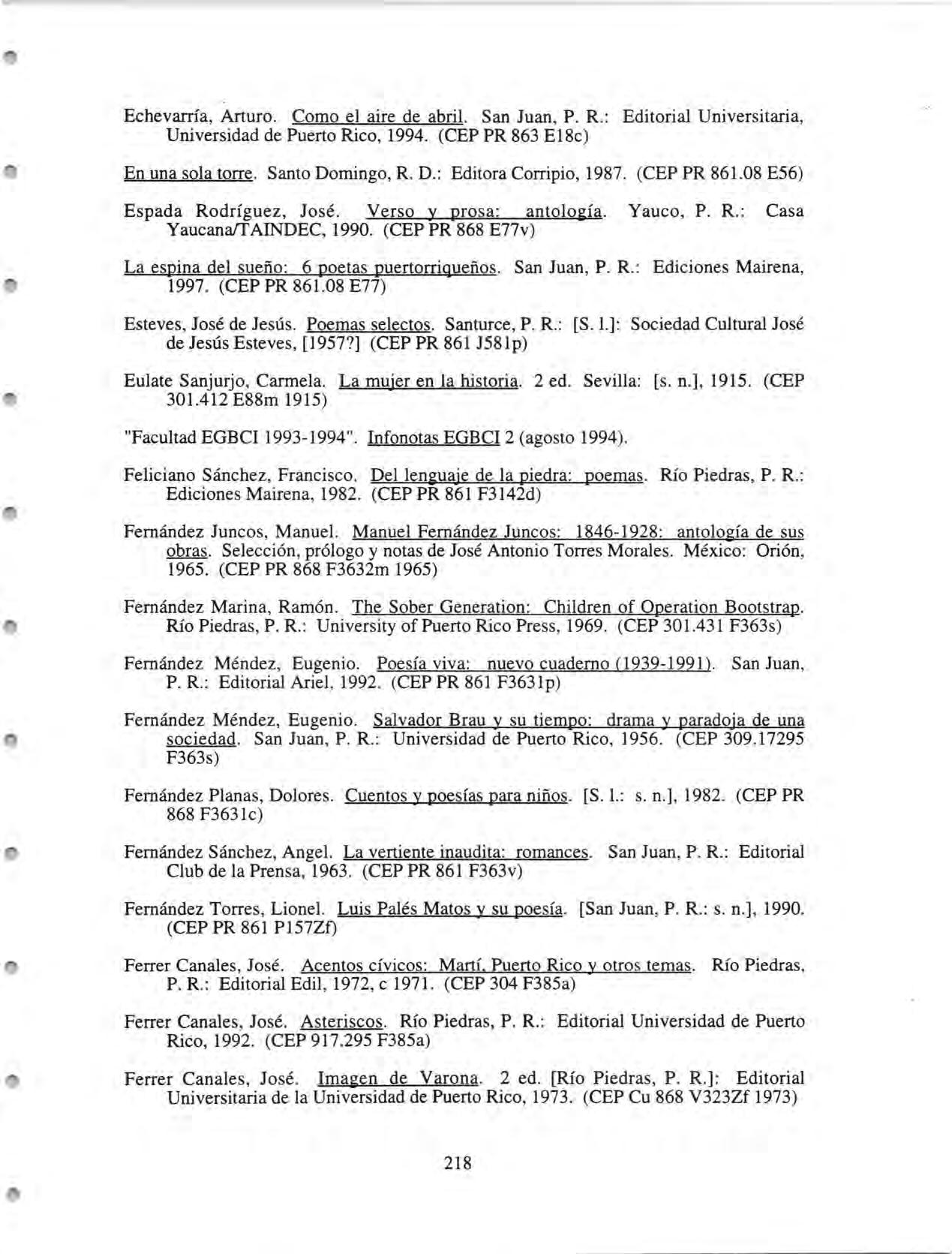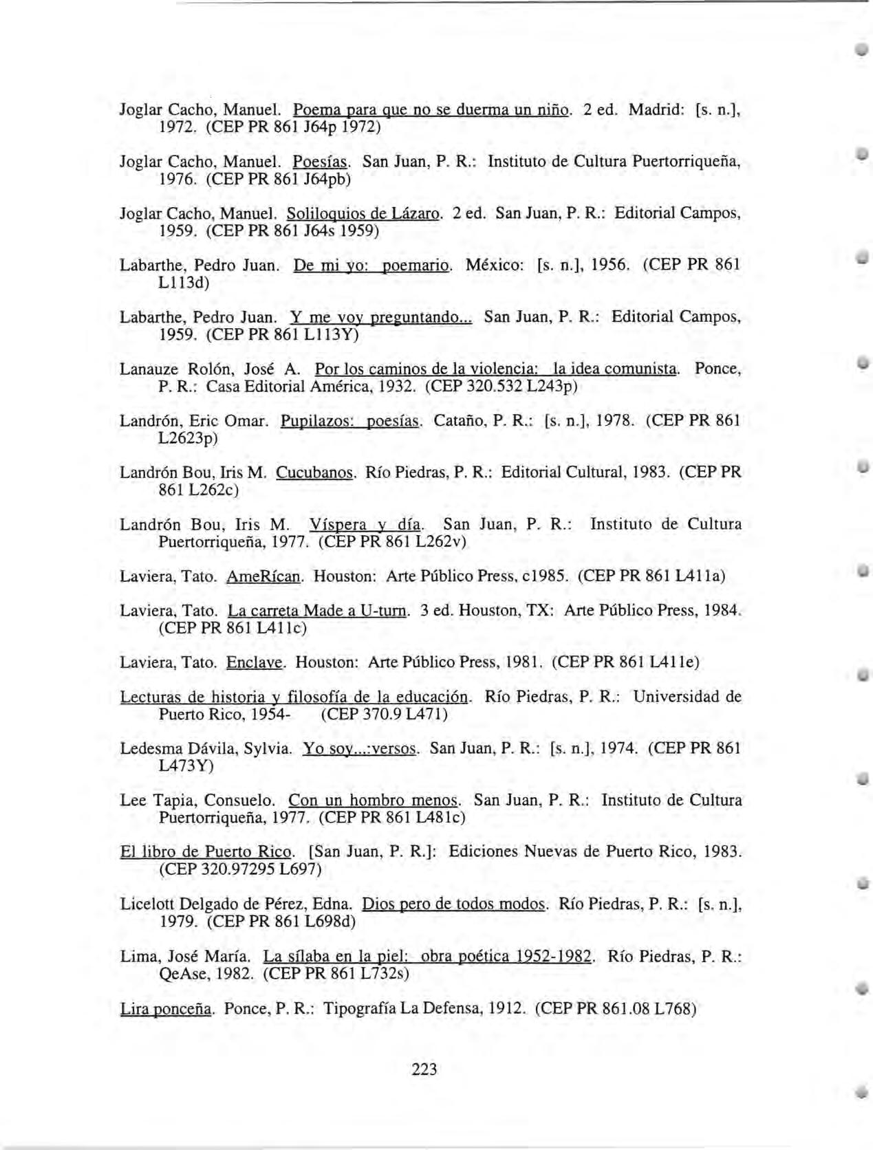 L6pez L6pez, Joaquin. Antologfa. San Juan , P. R.: Ateneo Puertorriquefio , 1960 (CEP PR 861 L8643a)