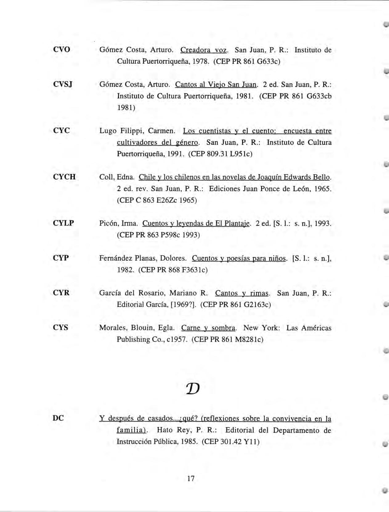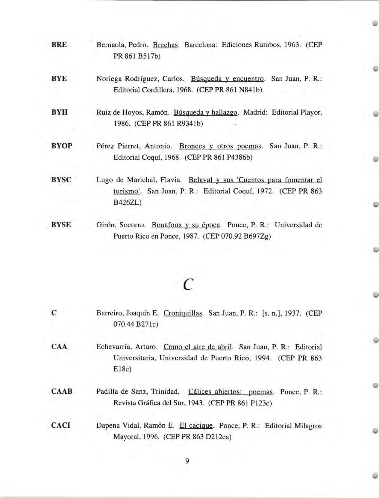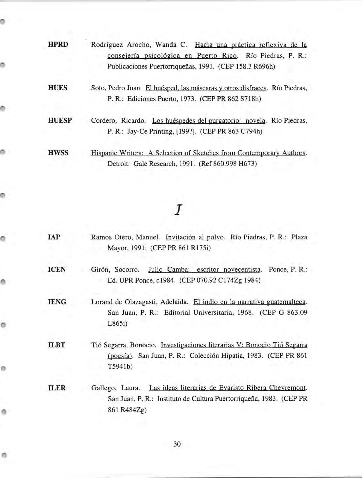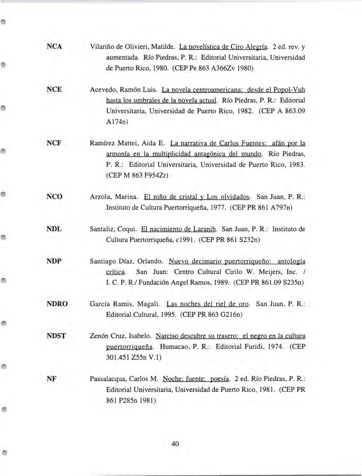 Para localizar el tftulo completo de la fuente se referira a la primera secci6n "Siglas", donde a continuaci6n de las abreviaturas de las fuentes utilizadas se encuentra la referencia completa del recurso. Hemos inclufdo la signatura librfstica del recurso en la colecci6n de la Biblioteca de la Universidad de Puerto Rico en Ponce para agilizar la busqueda a nuestros usuarios. Ejemplo: