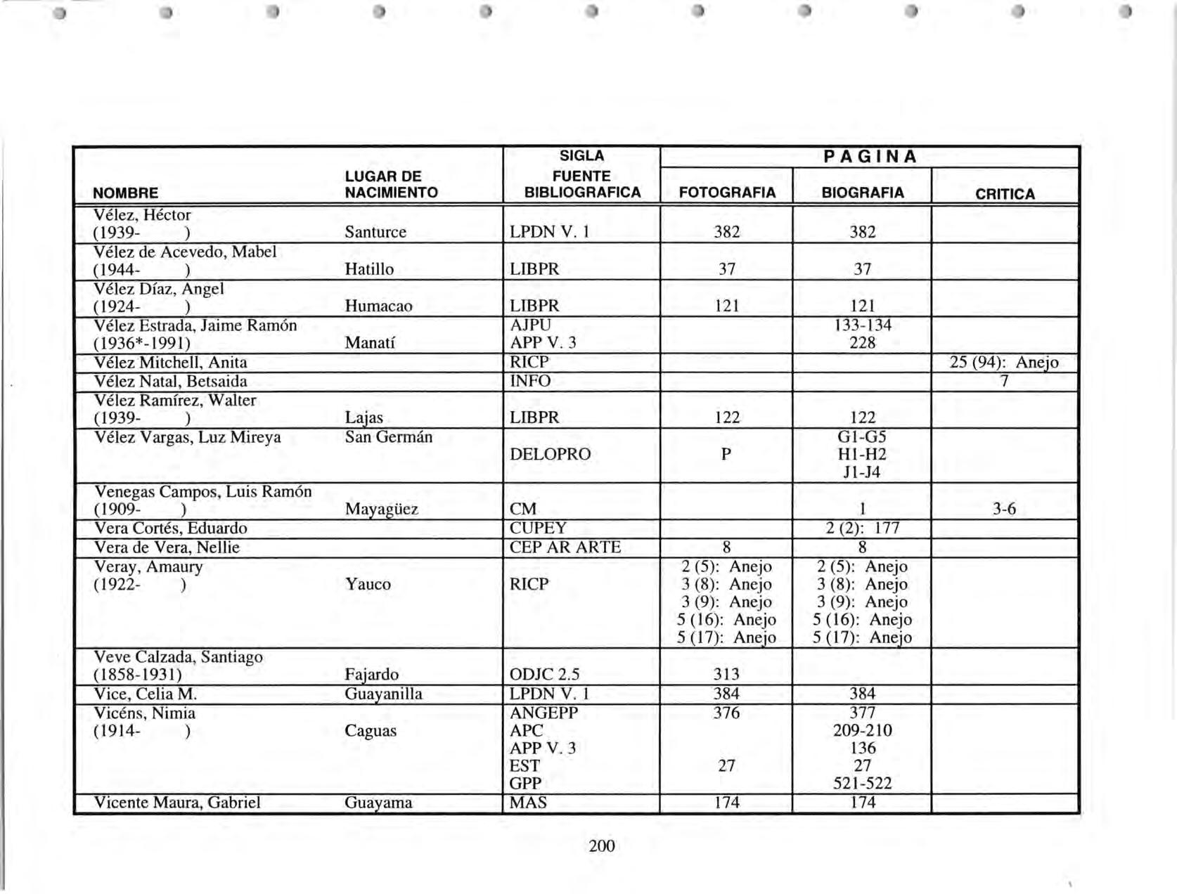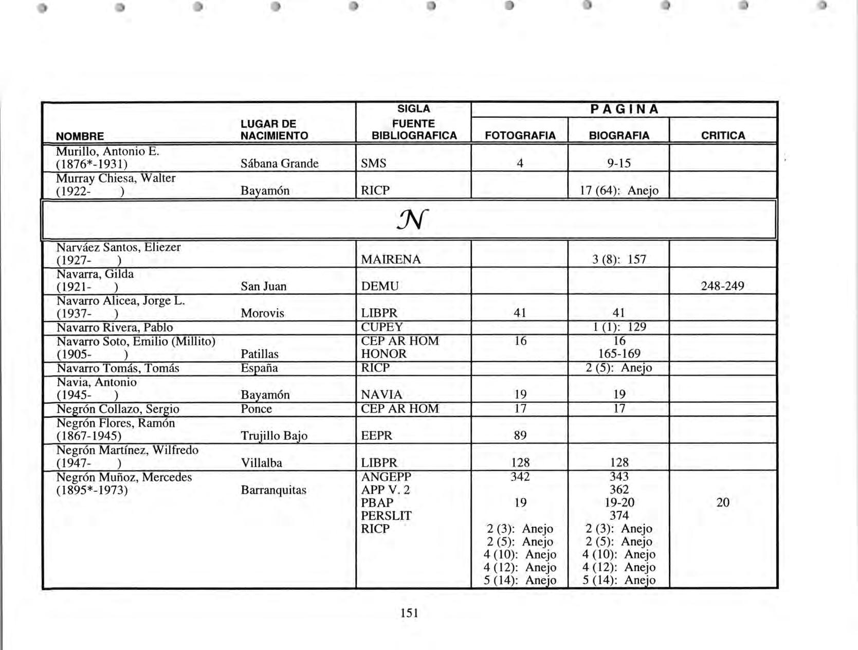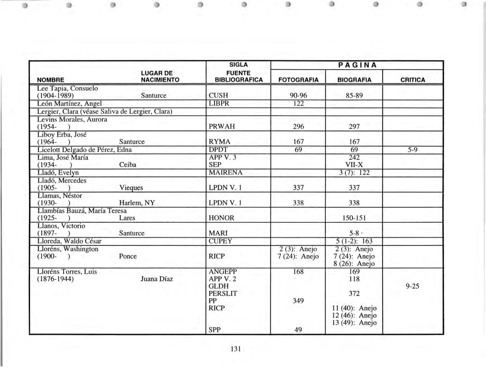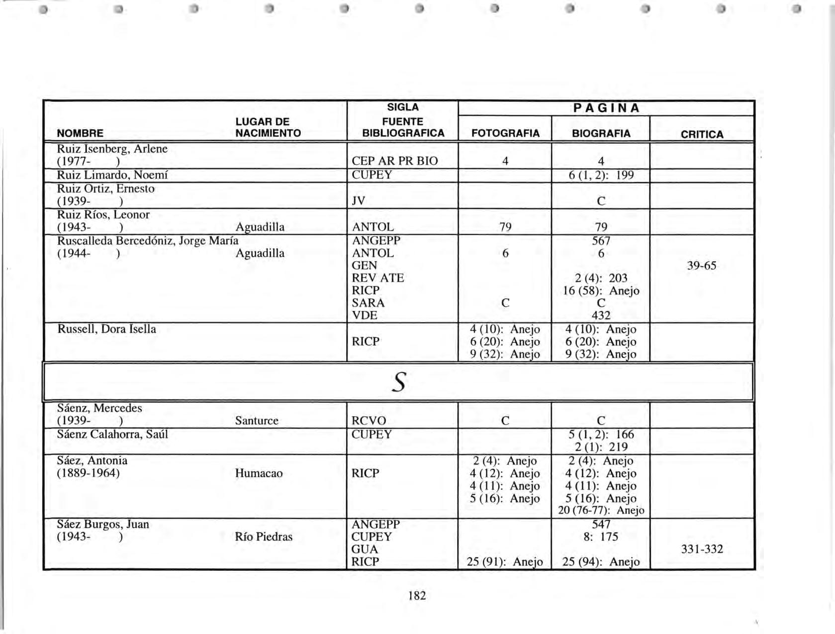 La busqueda y localizaci6n de informaci6n biografica, crfticas a obras y autores, y fotograffas de personas que en una forma u otra hacen una aportaci6n al quehacer puertorriqueiio es uno de los muchos retos que df a a dfa confrontamos los bibliotecarios.