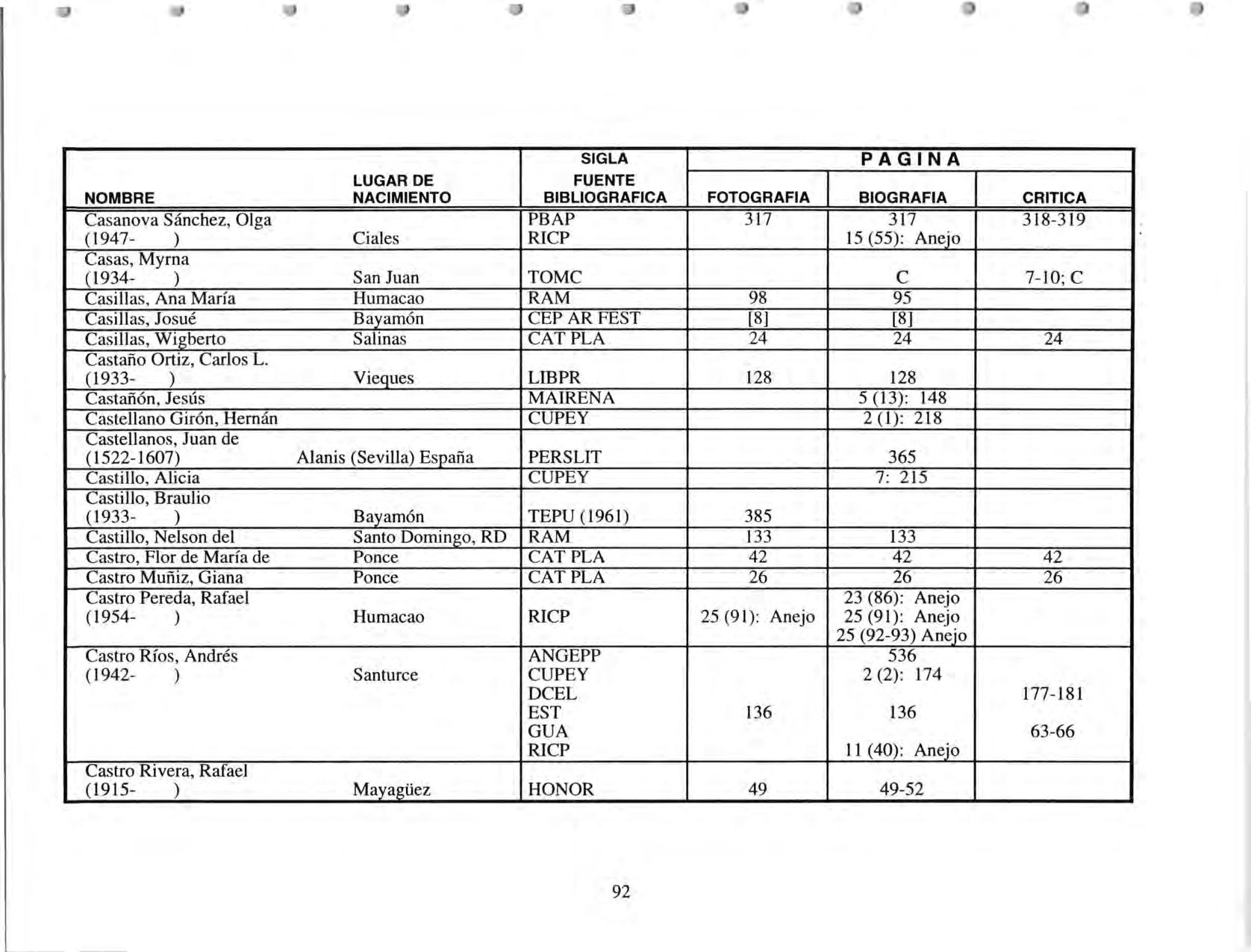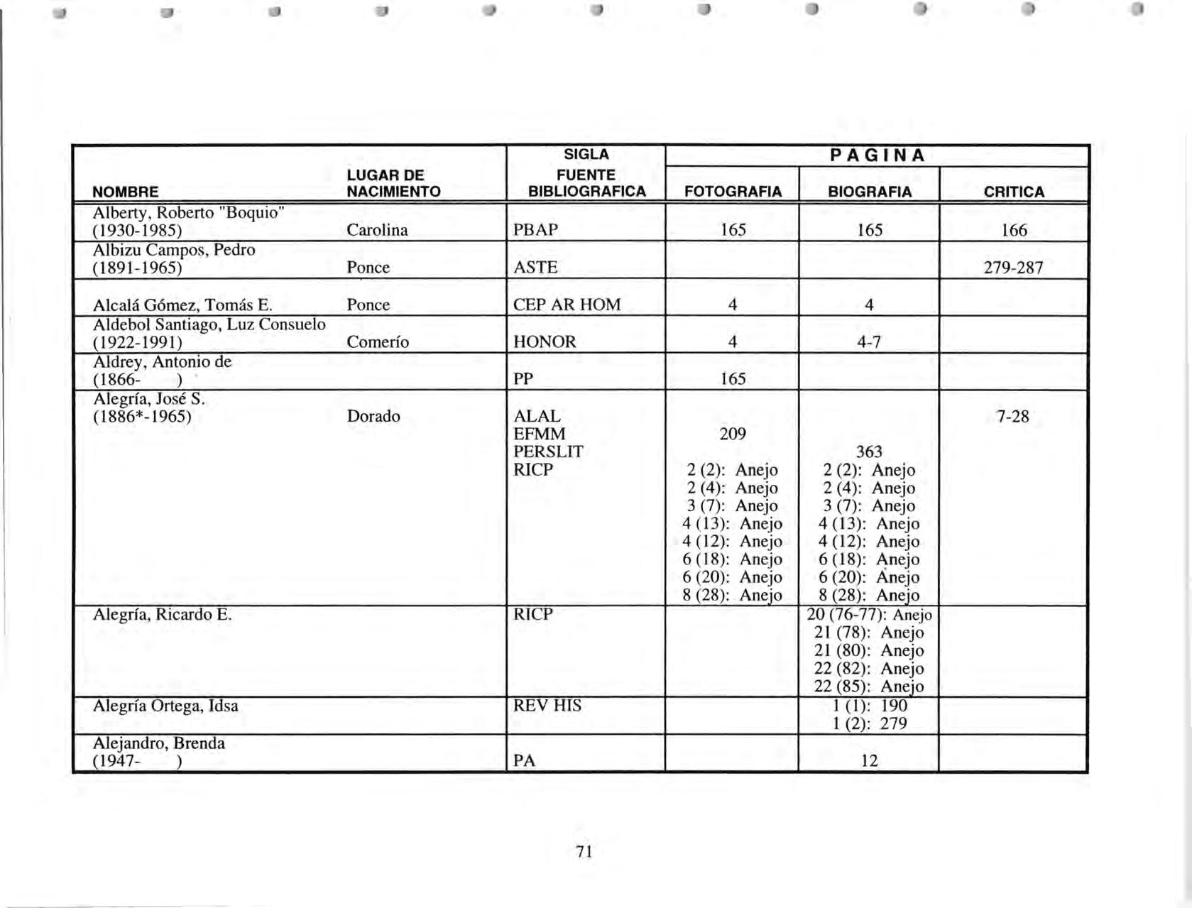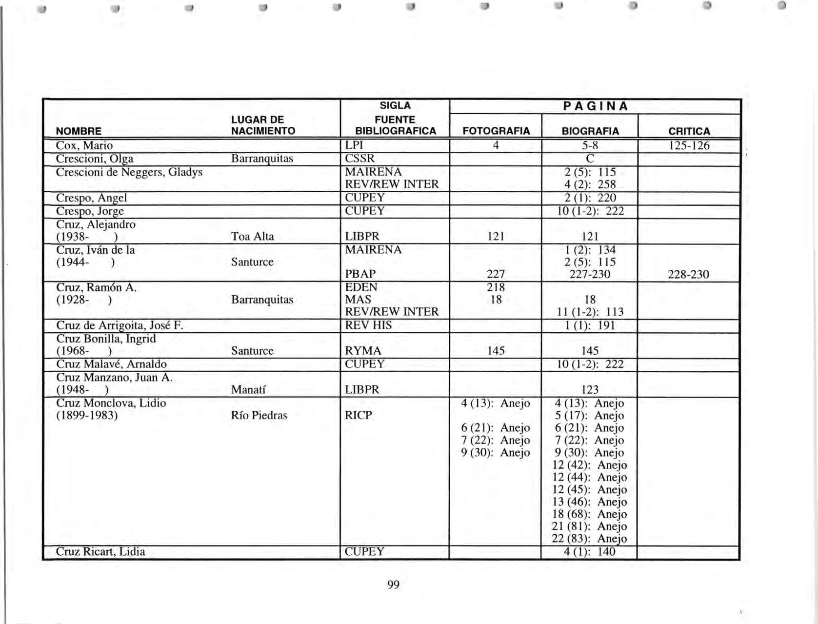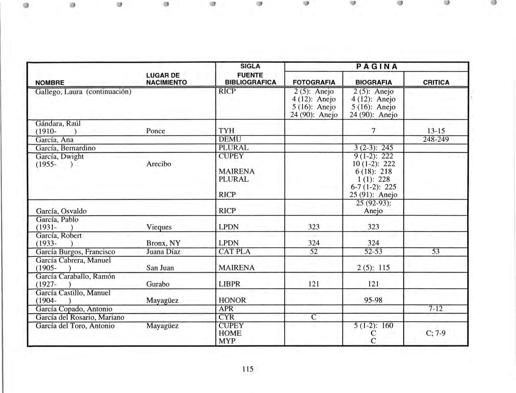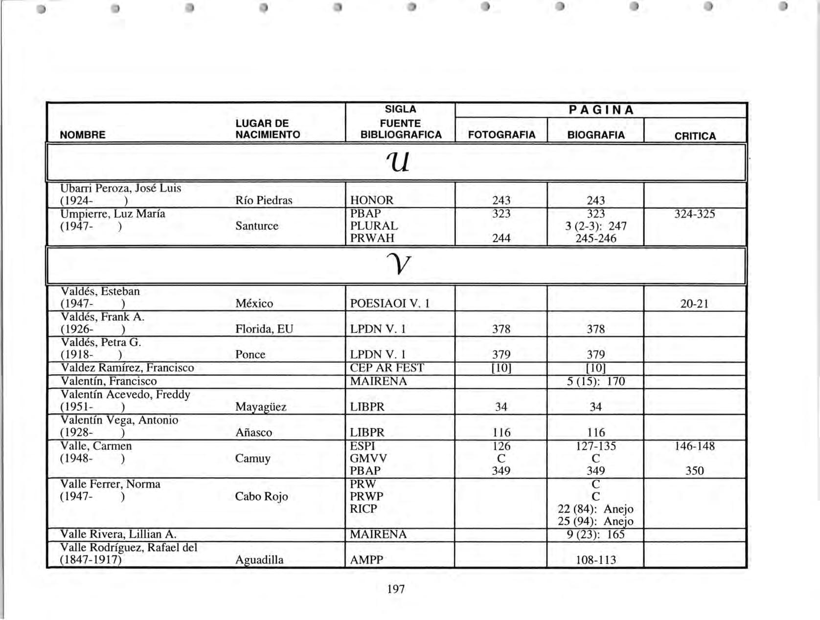 La busqueda y localizaci6n de informaci6n biografica, crfticas a obras y autores, y fotograffas de personas que en una forma u otra hacen una aportaci6n al quehacer puertorriqueiio es uno de los muchos retos que df a a dfa confrontamos los bibliotecarios.
