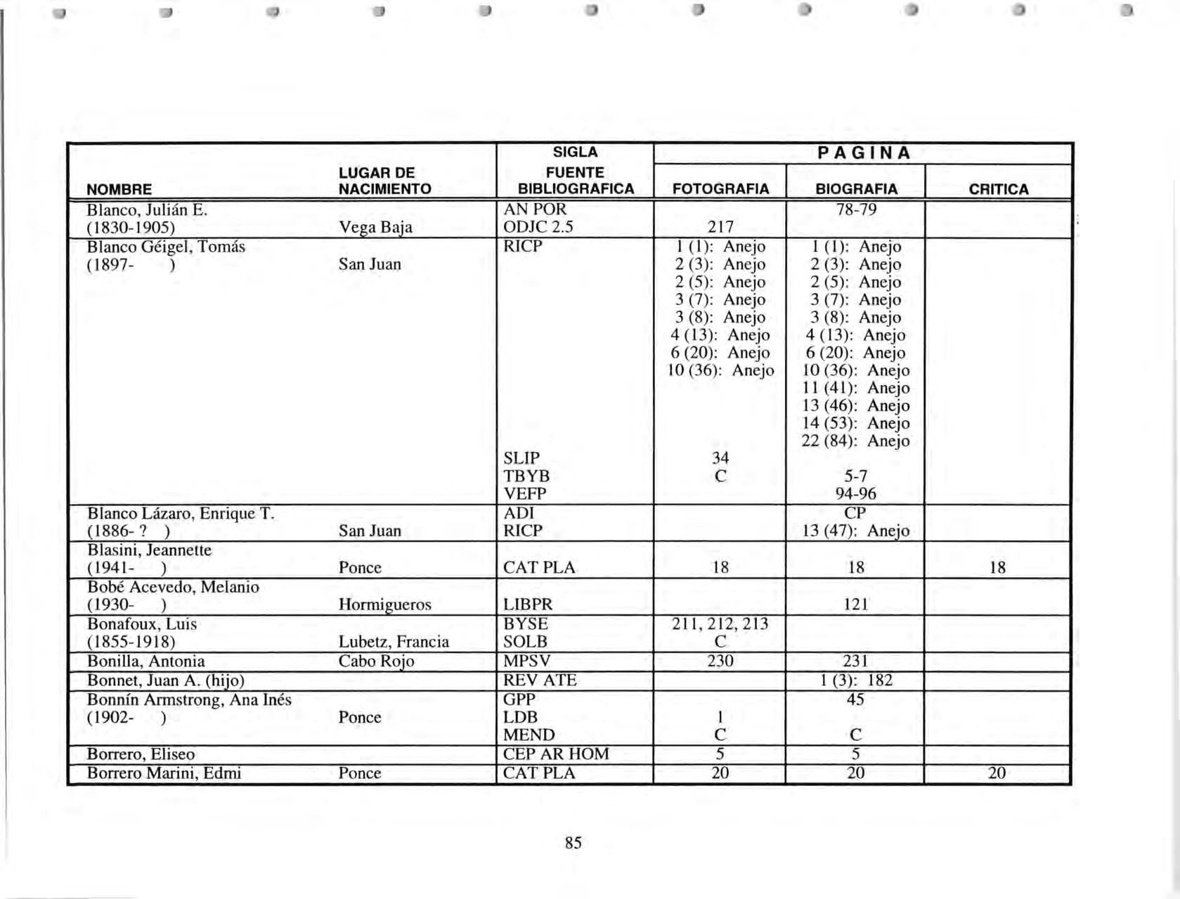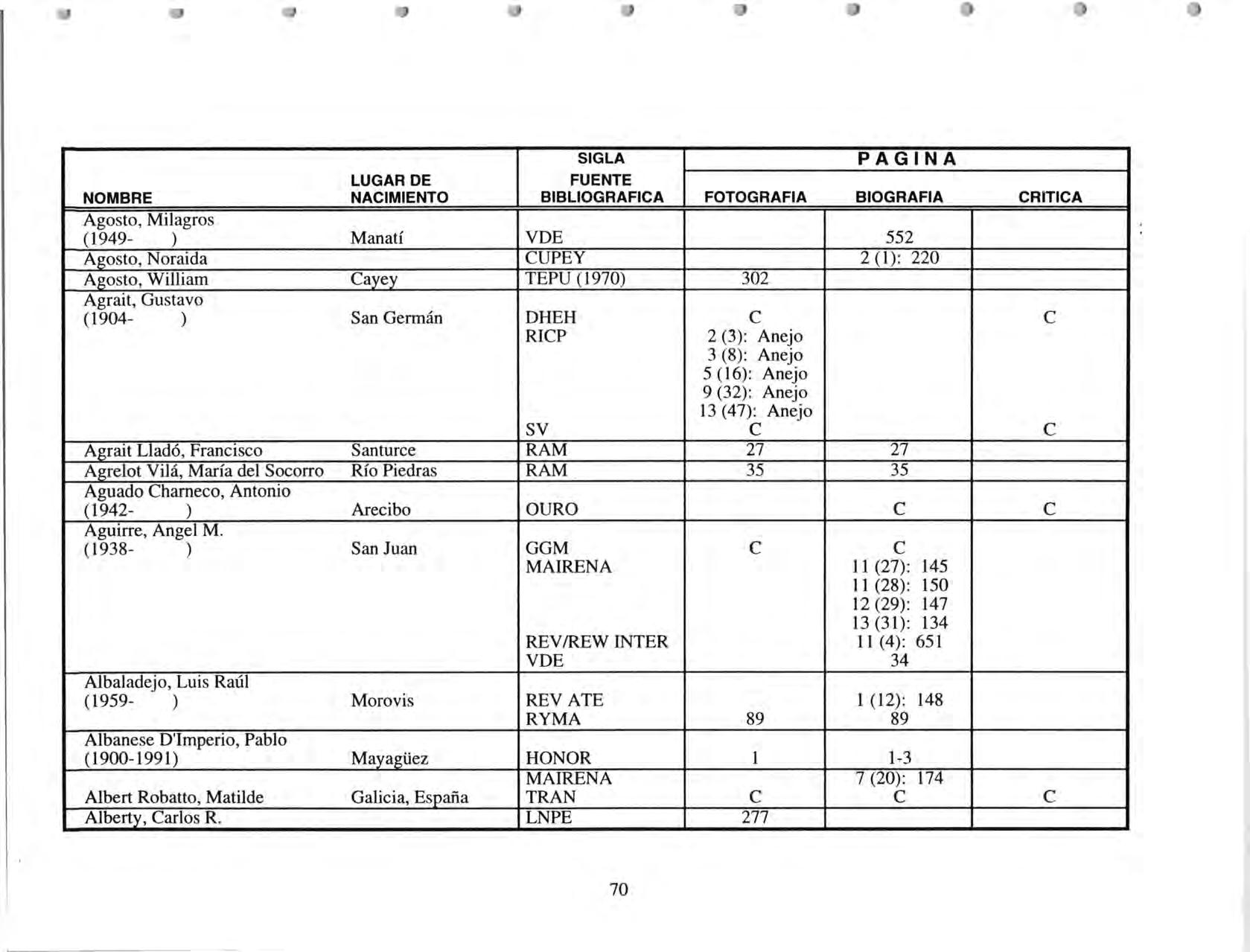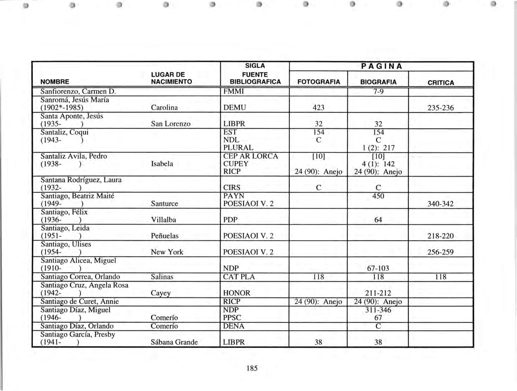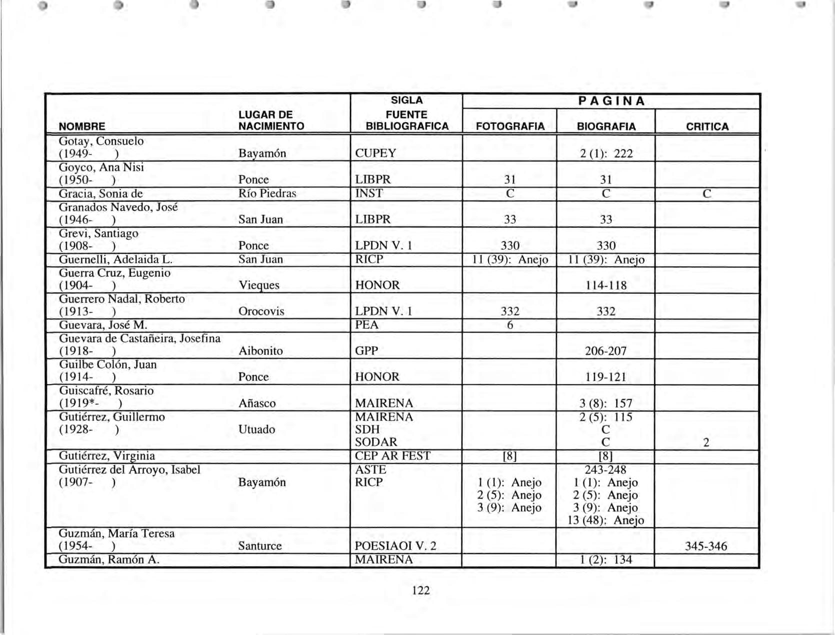 La busqueda y localizaci6n de informaci6n biografica, crfticas a obras y autores, y fotograffas de personas que en una forma u otra hacen una aportaci6n al quehacer puertorriqueiio es uno de los muchos retos que df a a dfa confrontamos los bibliotecarios.