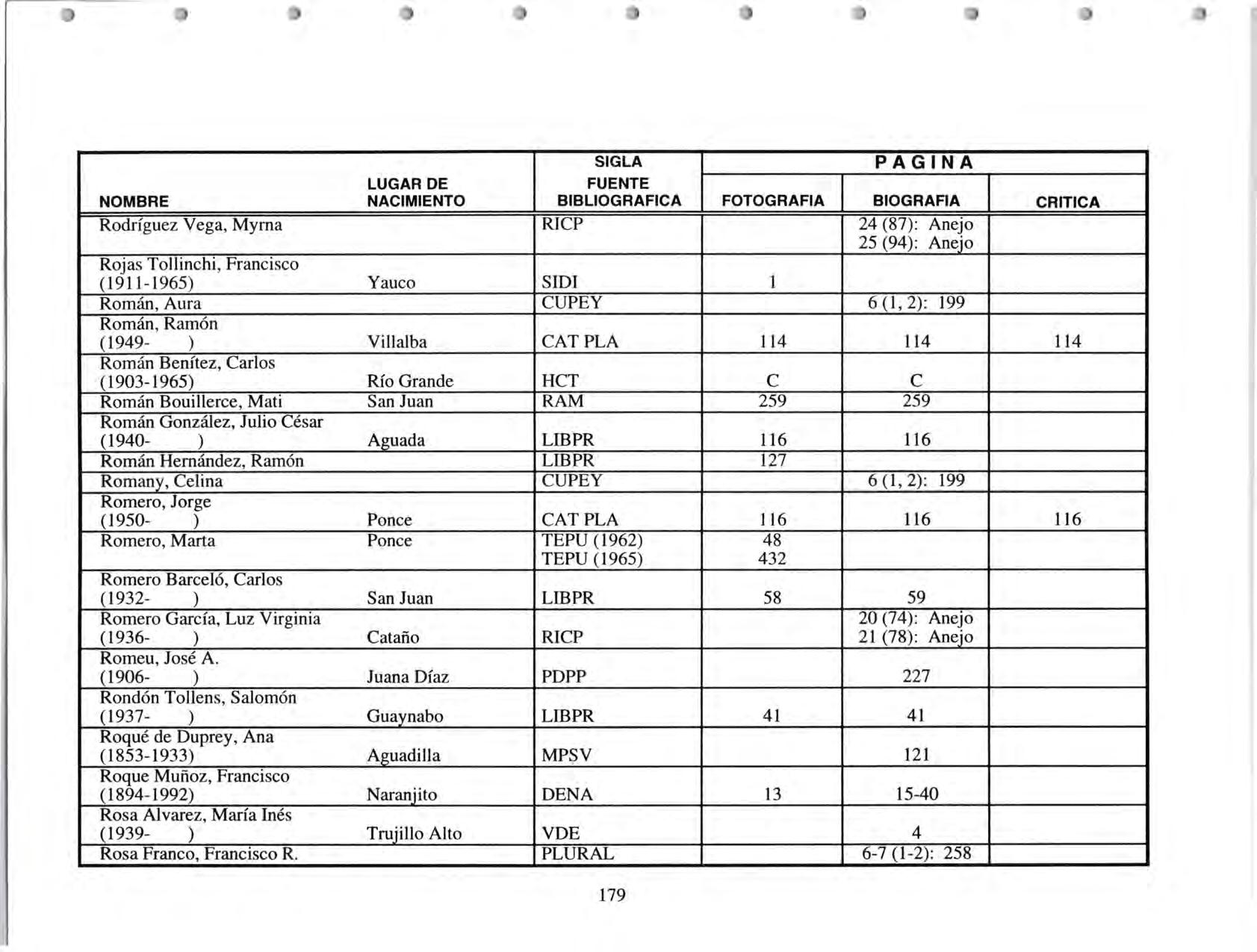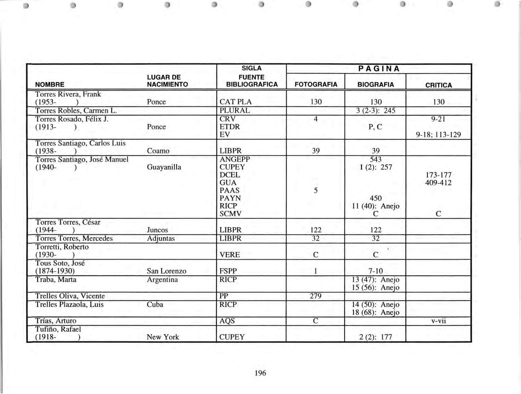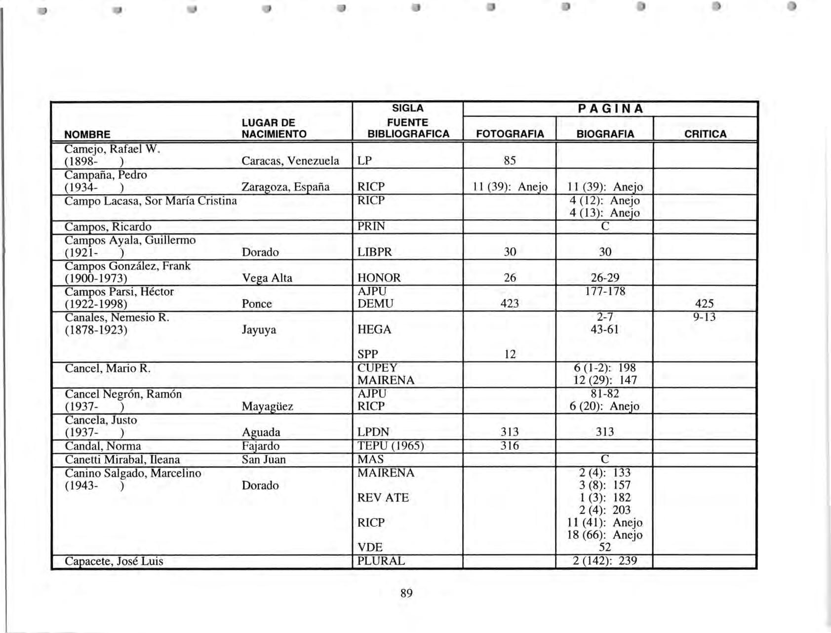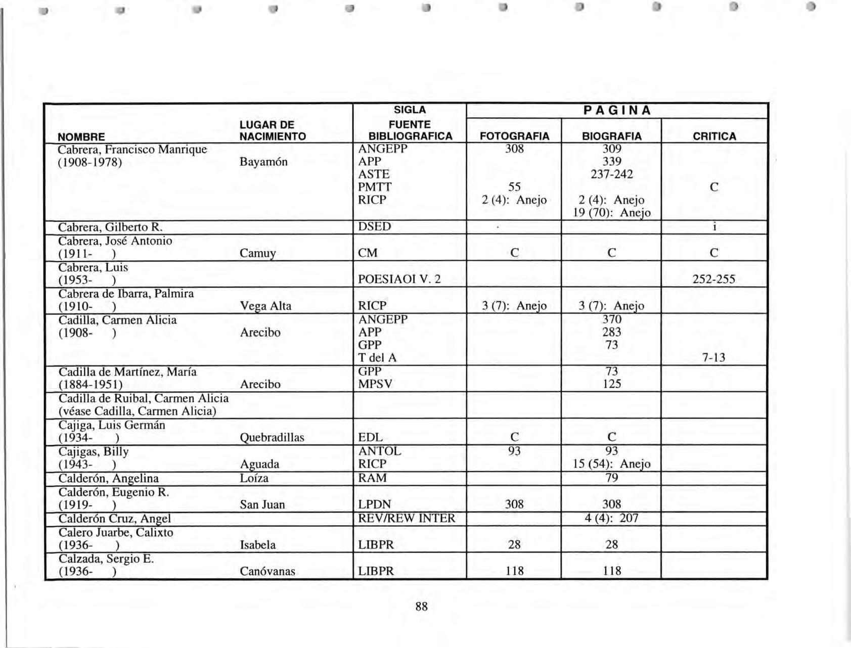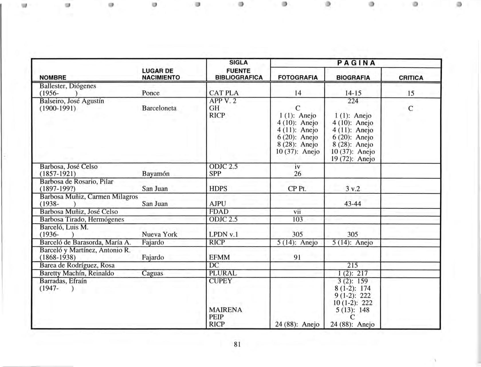 La busqueda y localizaci6n de informaci6n biografica, crfticas a obras y autores, y fotograffas de personas que en una forma u otra hacen una aportaci6n al quehacer puertorriqueiio es uno de los muchos retos que df a a dfa confrontamos los bibliotecarios.