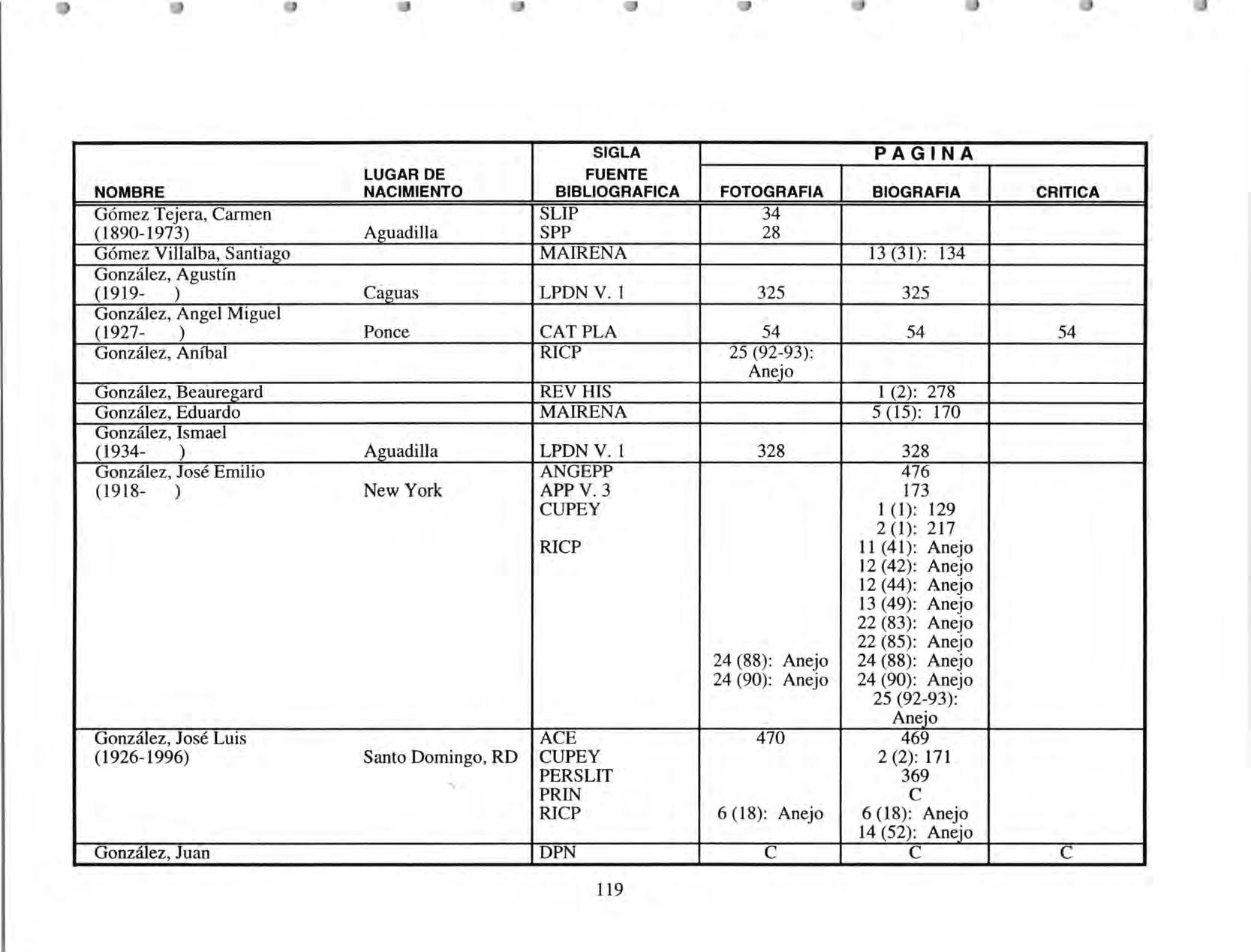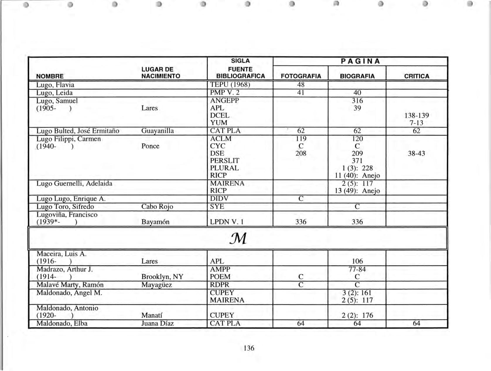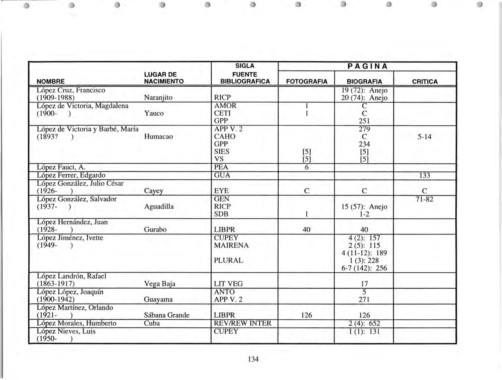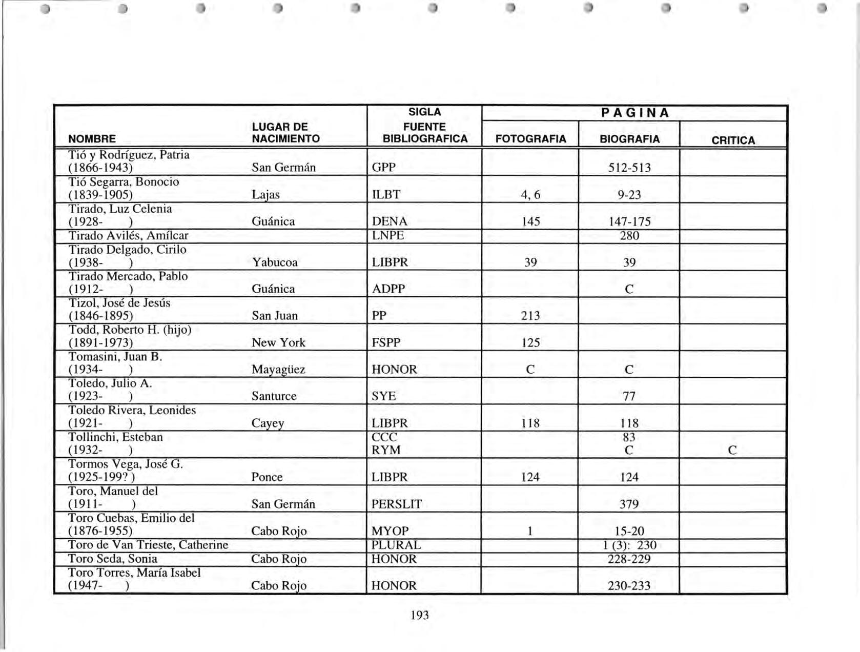 La busqueda y localizaci6n de informaci6n biografica, crfticas a obras y autores, y fotograffas de personas que en una forma u otra hacen una aportaci6n al quehacer puertorriqueiio es uno de los muchos retos que df a a dfa confrontamos los bibliotecarios.