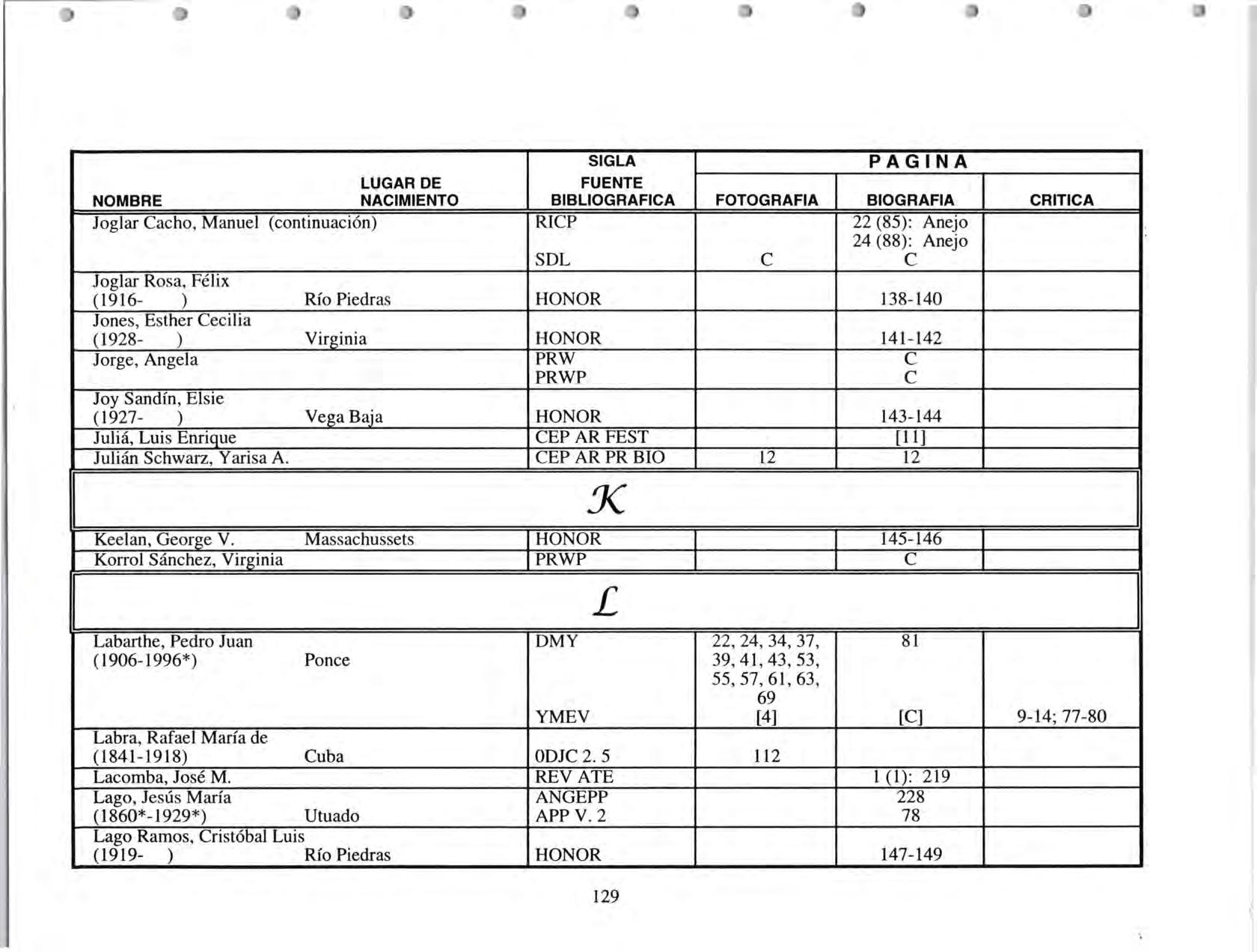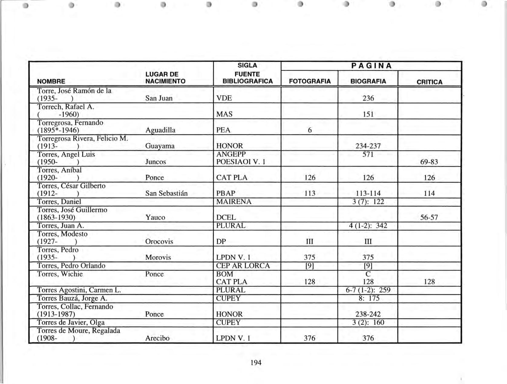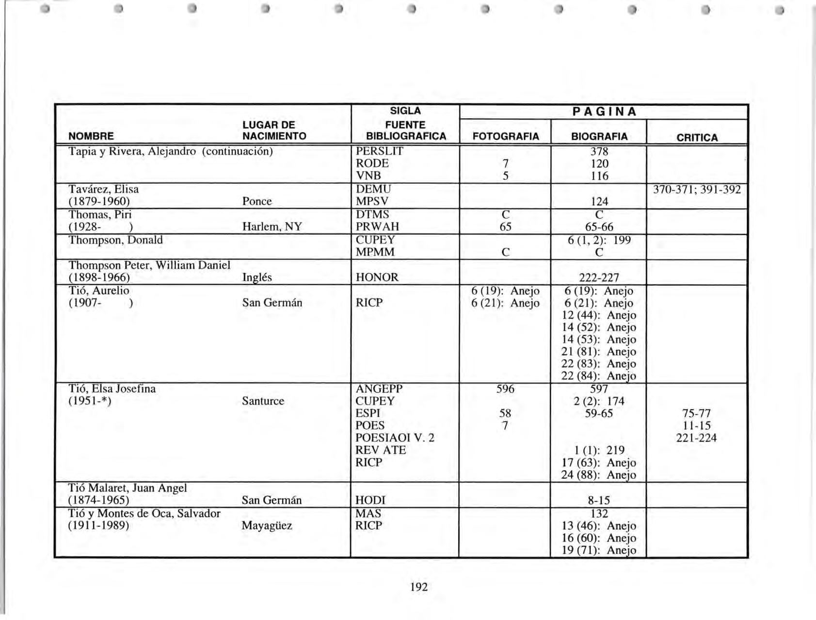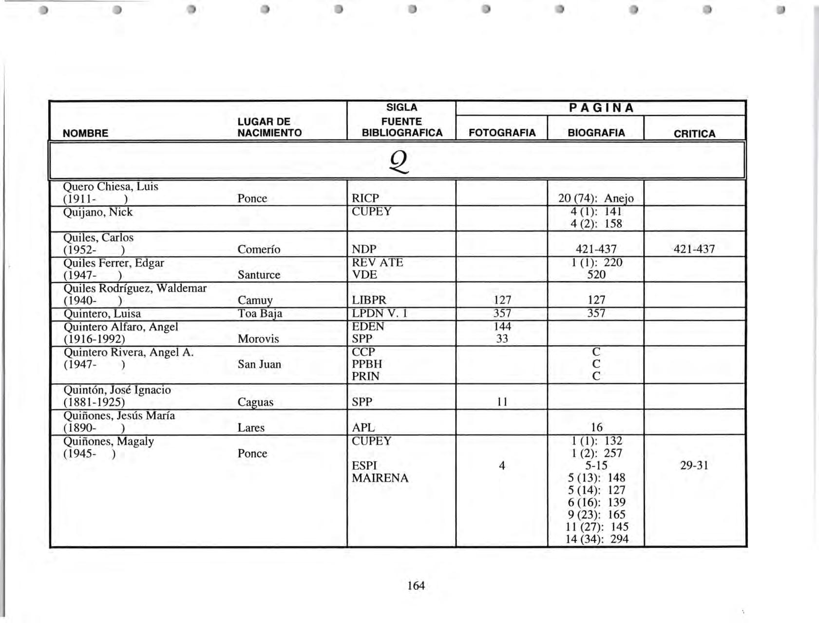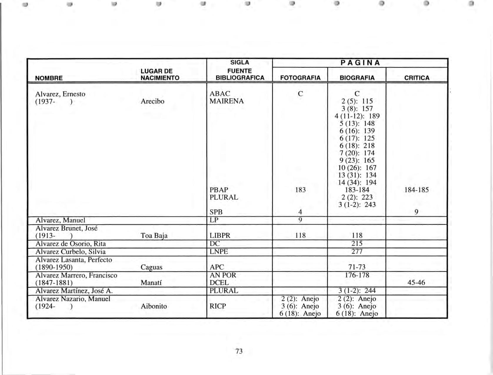 La busqueda y localizaci6n de informaci6n biografica, crfticas a obras y autores, y fotograffas de personas que en una forma u otra hacen una aportaci6n al quehacer puertorriqueiio es uno de los muchos retos que df a a dfa confrontamos los bibliotecarios.