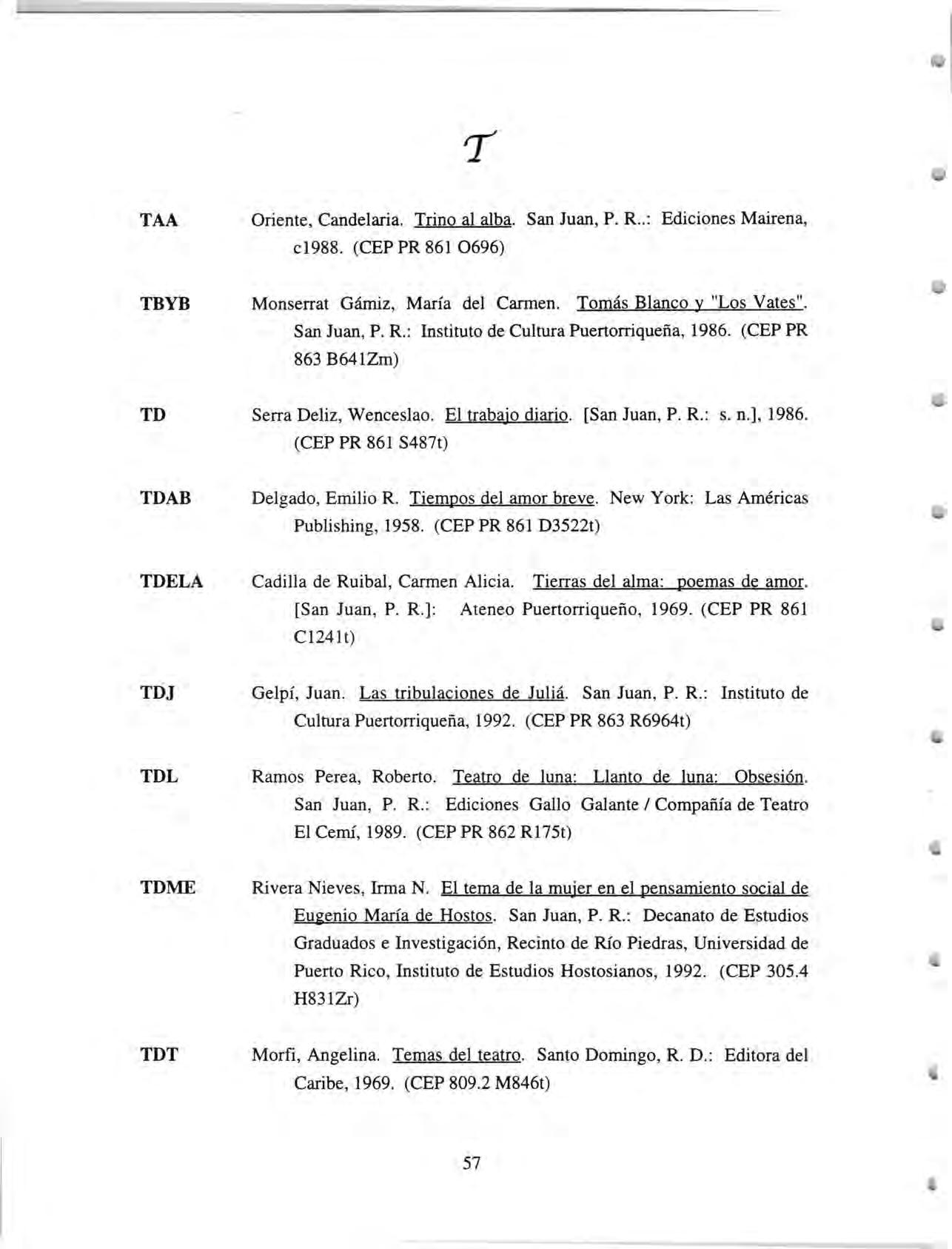 Salgado Rodriguez, Teresina. Por los caminos blancos: versos . San Juan, P. R.: [M. Pareja], 1969 . (CEP PR 861 S164p)