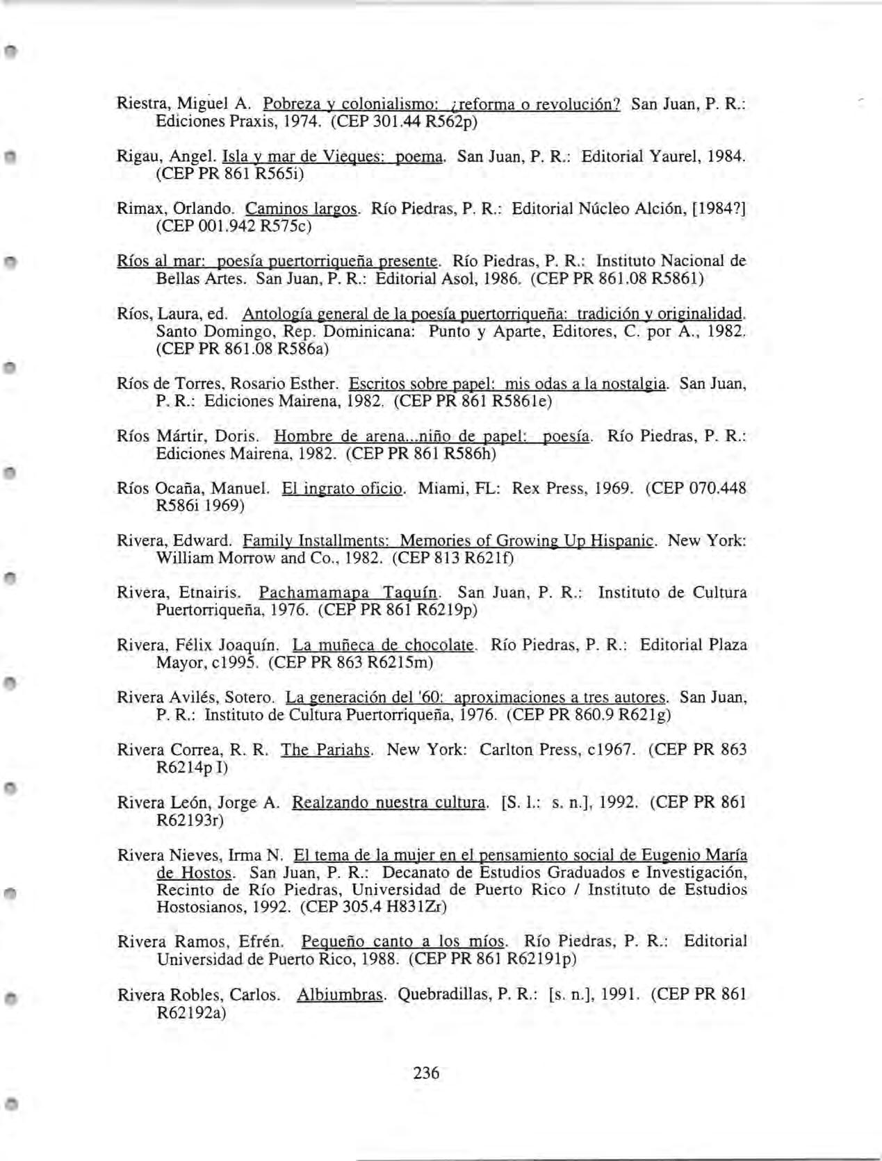 Santos Silva, Loreina. Rikelme. Rfo Piedras, P R. : Editorial Edil, 1974. (CEP PR 861 S237r)