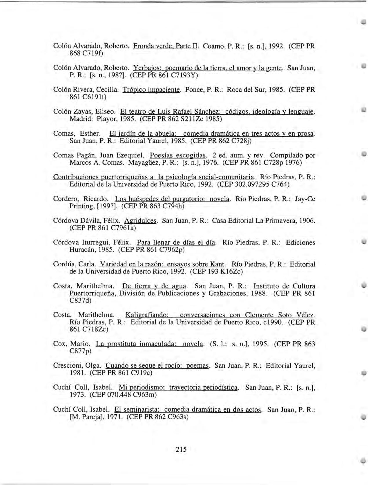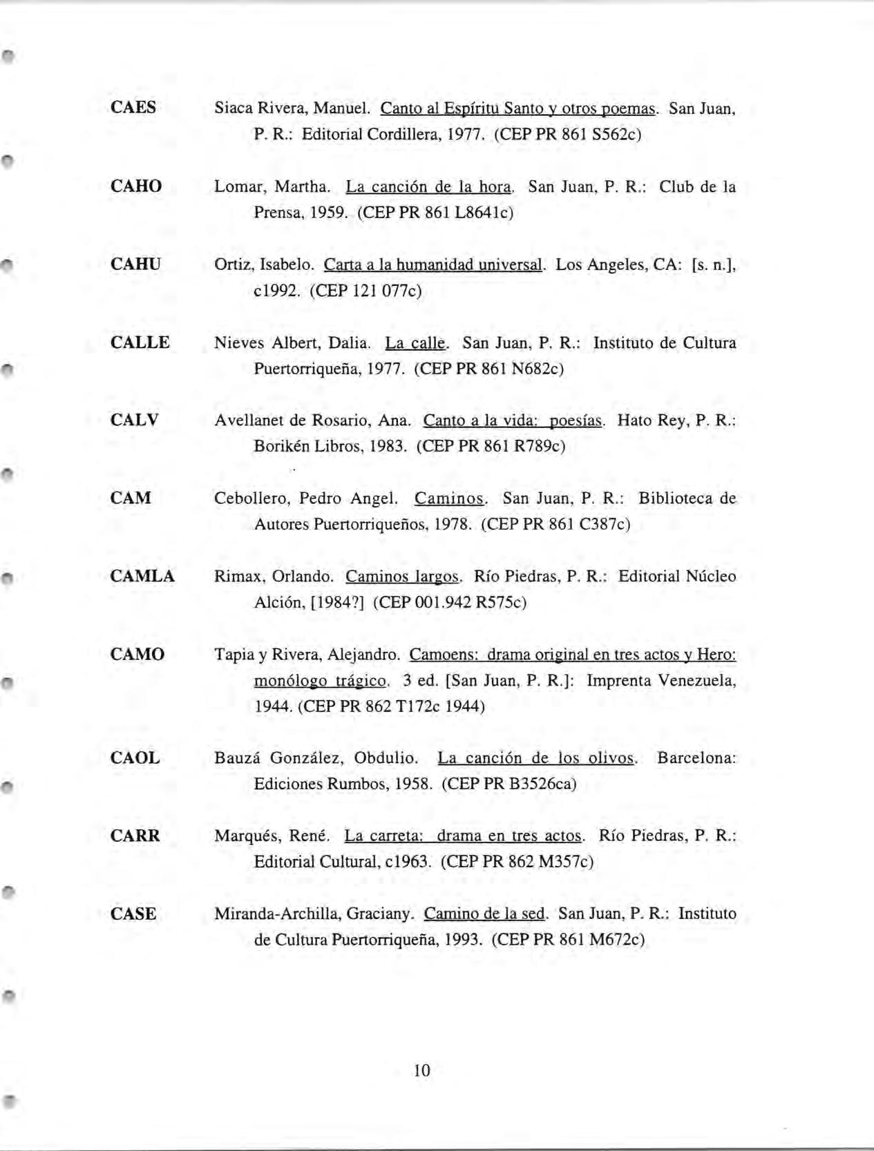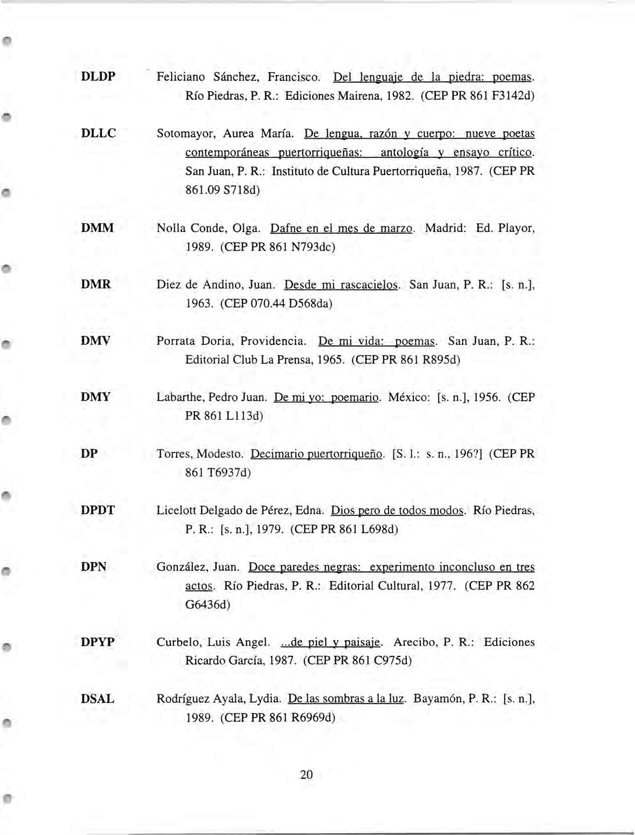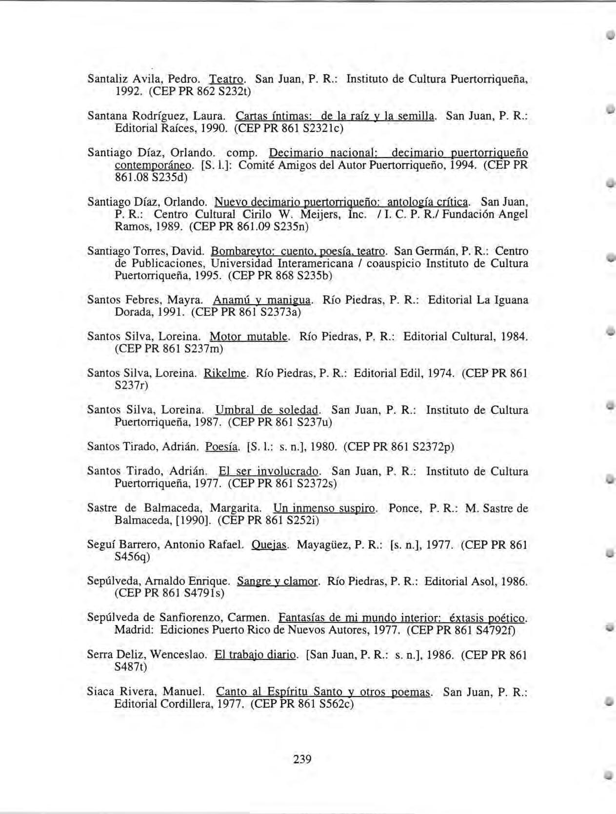 Santiago Dfaz, Orlando. comp. Decimario nacional: decimario puertorriguefio contemporaneo . [S. I.]: Cornite Amigos del Autor Puertorriquefio, 1994. (CEP PR 861.08 S235d)