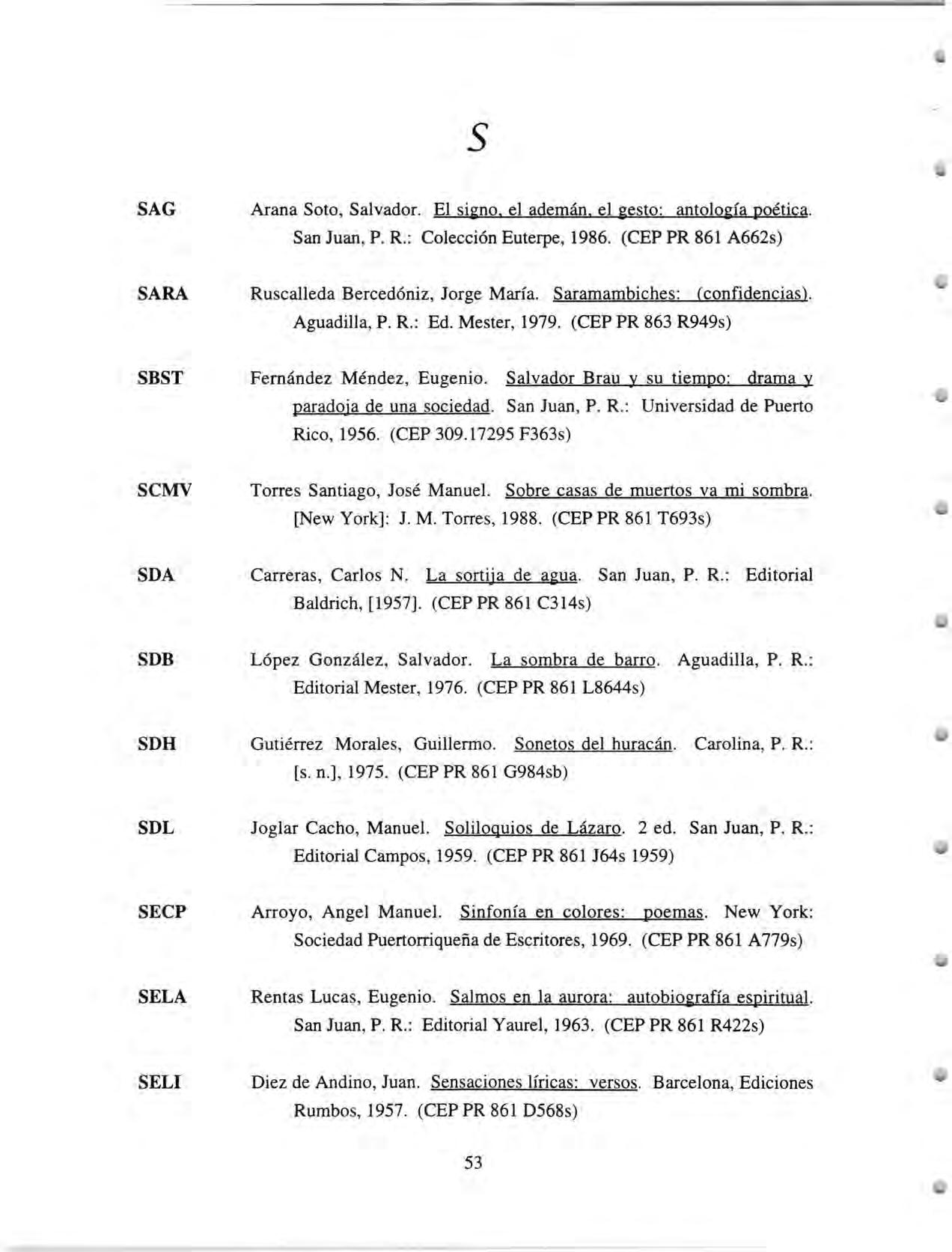 Siaca Rivera , Manuel. Canto al Espiritu Santo y otros poemas. San Juan, P . R.: Editorial Cordillera, 1977. (CEP PR 861 S562c)